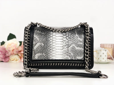 Geantă neagră piele eco cu print snake silver Kora Ly