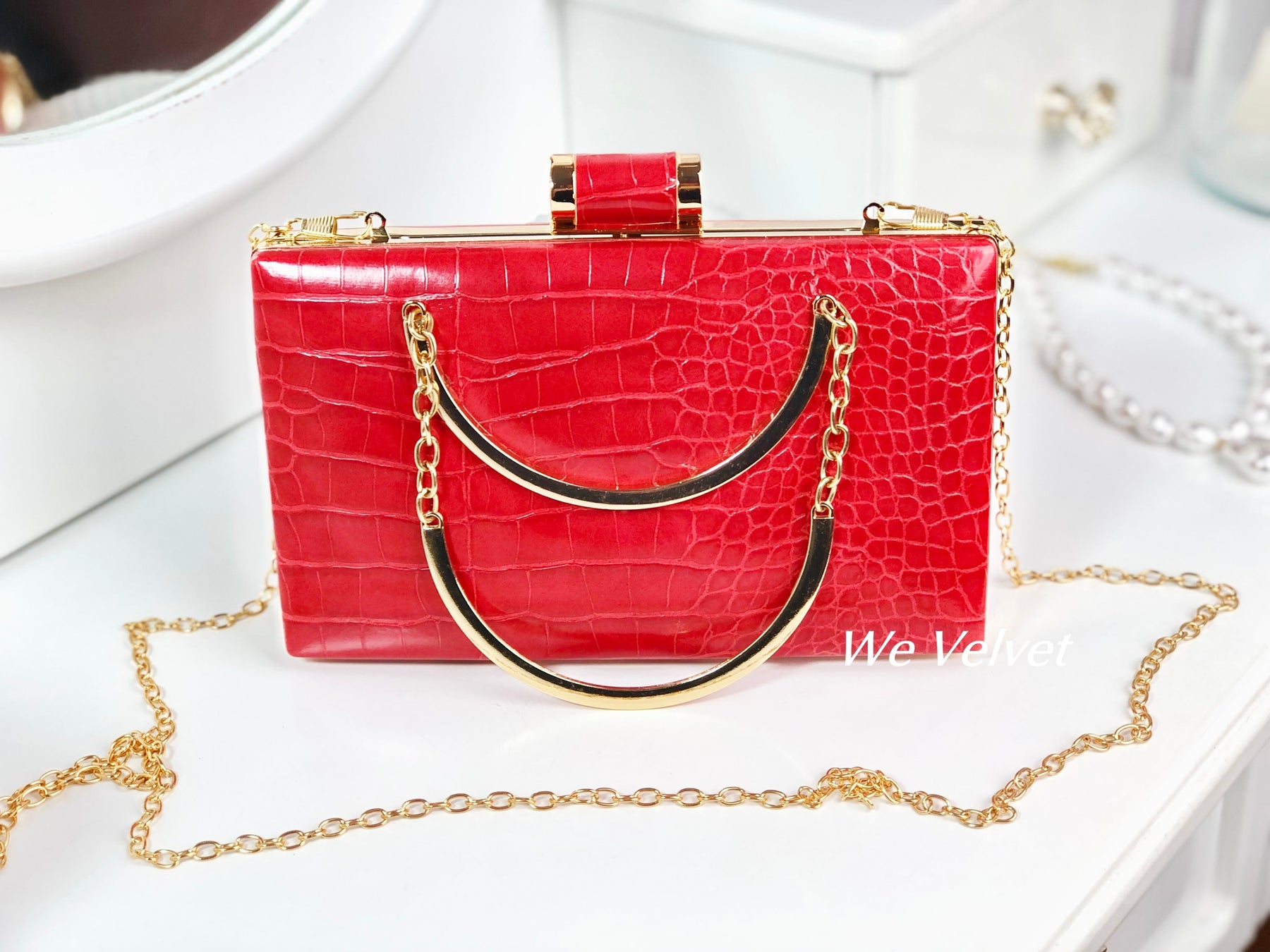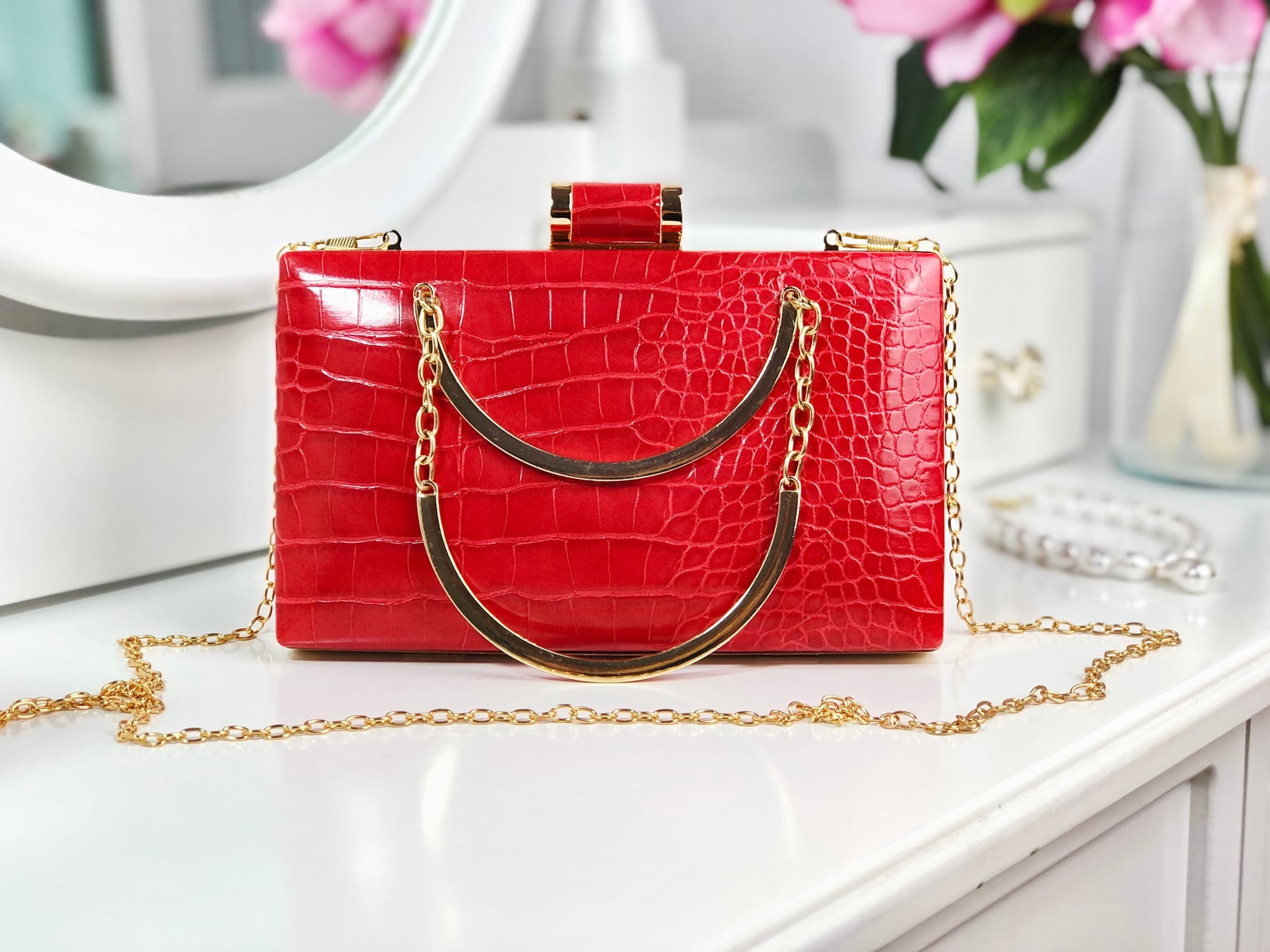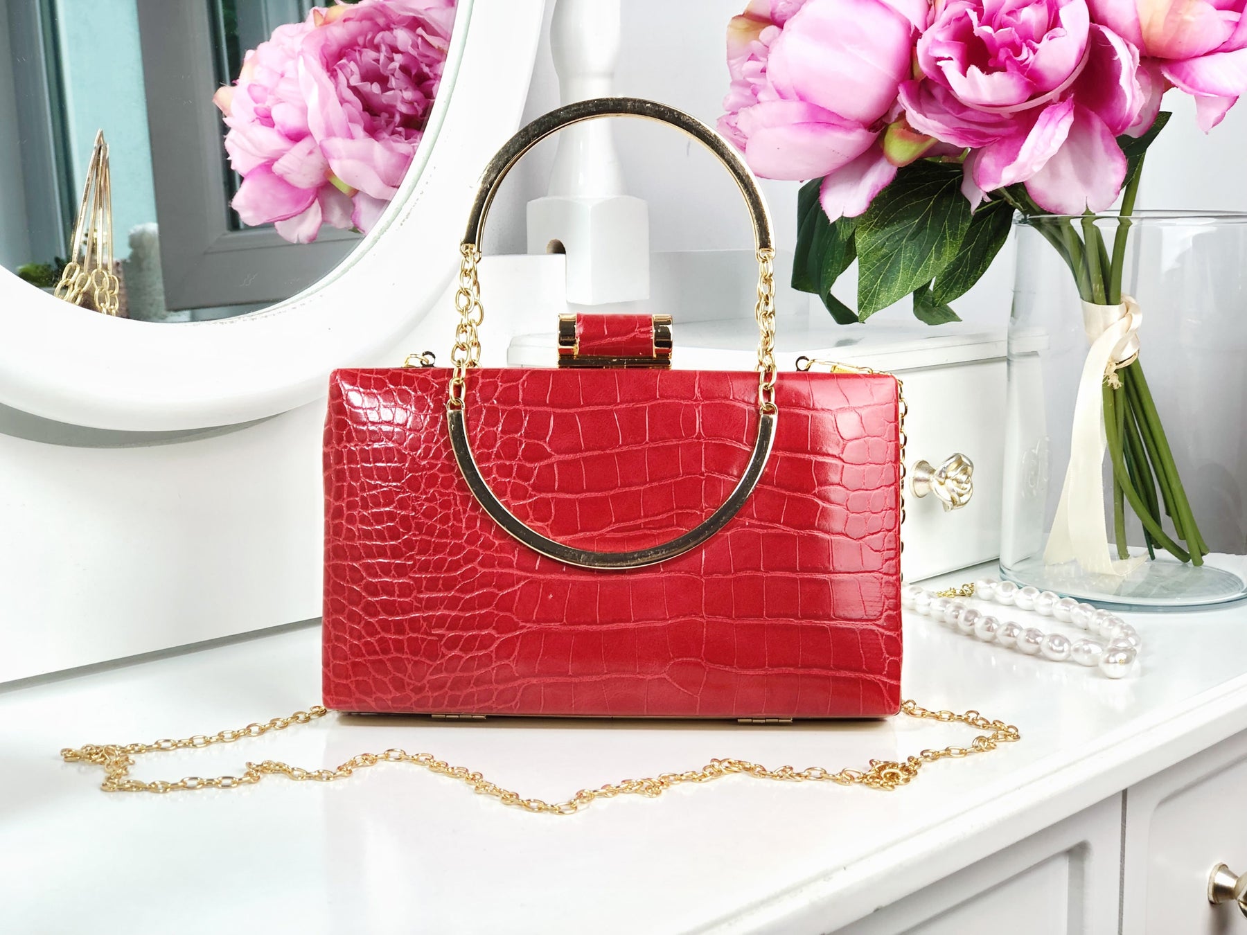 Poșetă clutch roșie piele eco cu imprimeu croco Alexis