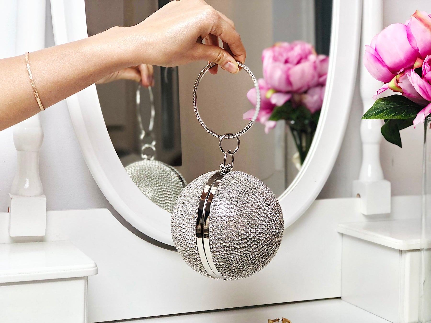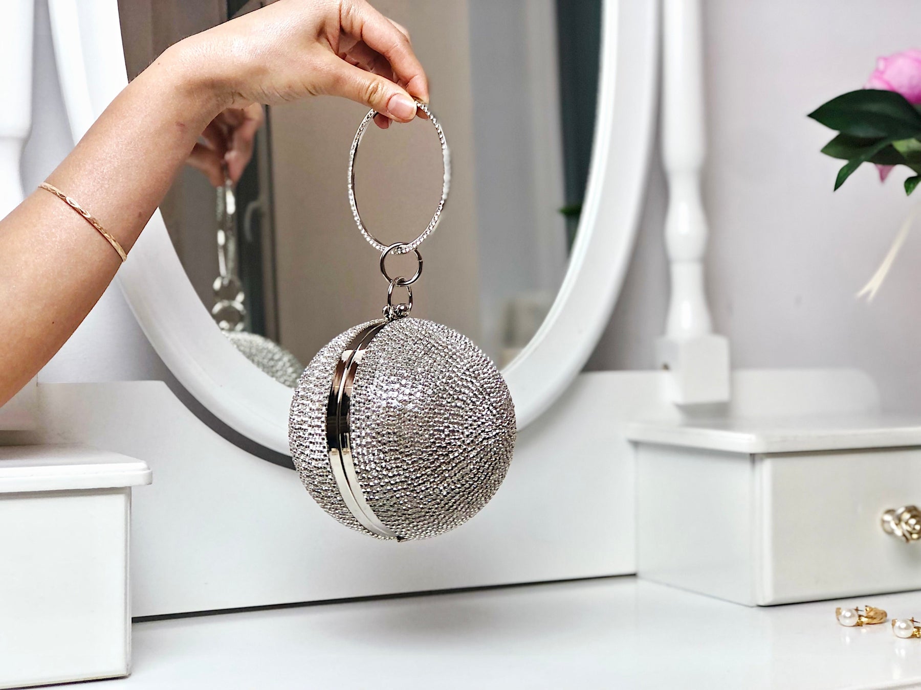 Poșetă clutch rotundă argintie cu pietricele strălucitoare Shiny Star