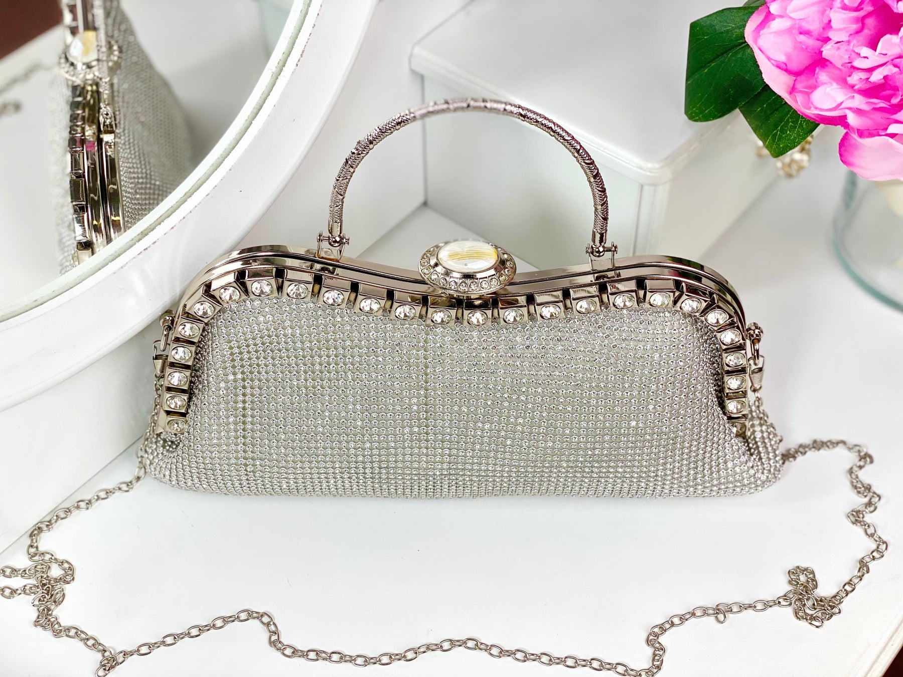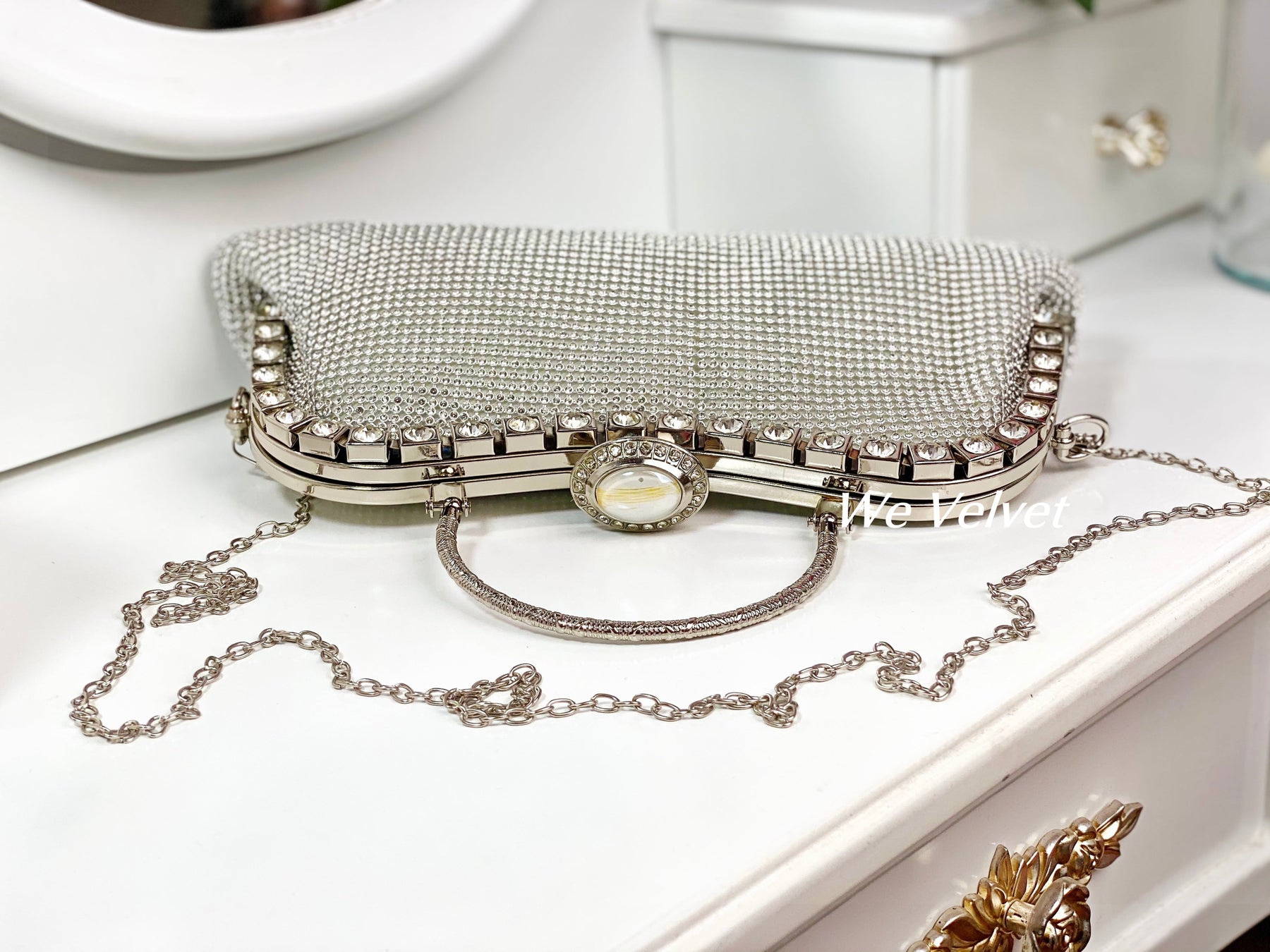 Am adăugat încă un clutch în colecția We Velvet! Gladys este cu totul special, cu mii de cristale mici care oferă o strălucire aparte ținutei tale! Închizătoarea tip bijuterie și marginea din cristale de dimensiuni îndrăznețe completează imaginea unui clutch exclusivist, cu personalitate!