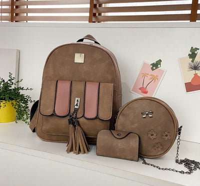 Set rucsac nude piele eco cu poșetuță și portcard Vintage Glam