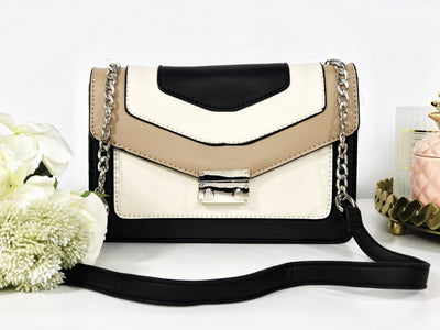Geantă neagră cu accente bej și maro deschis piele eco Emerald