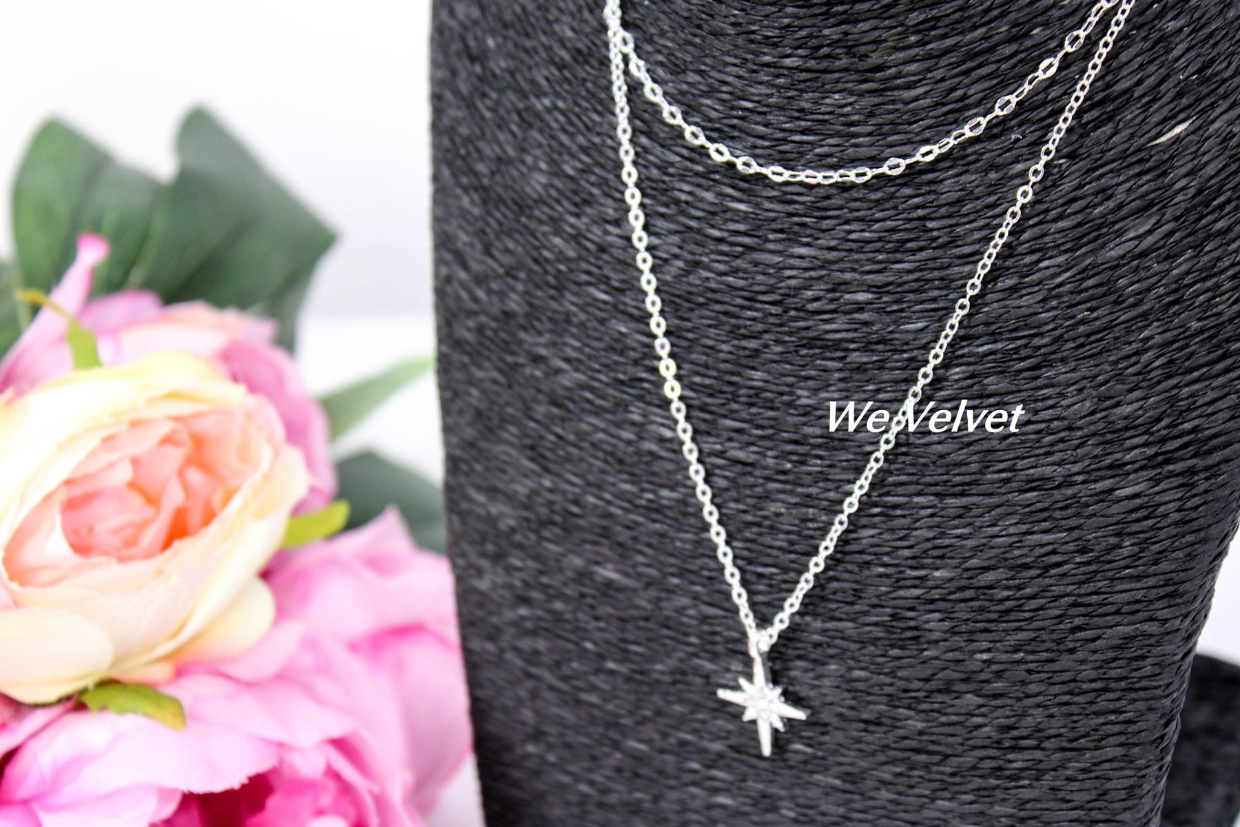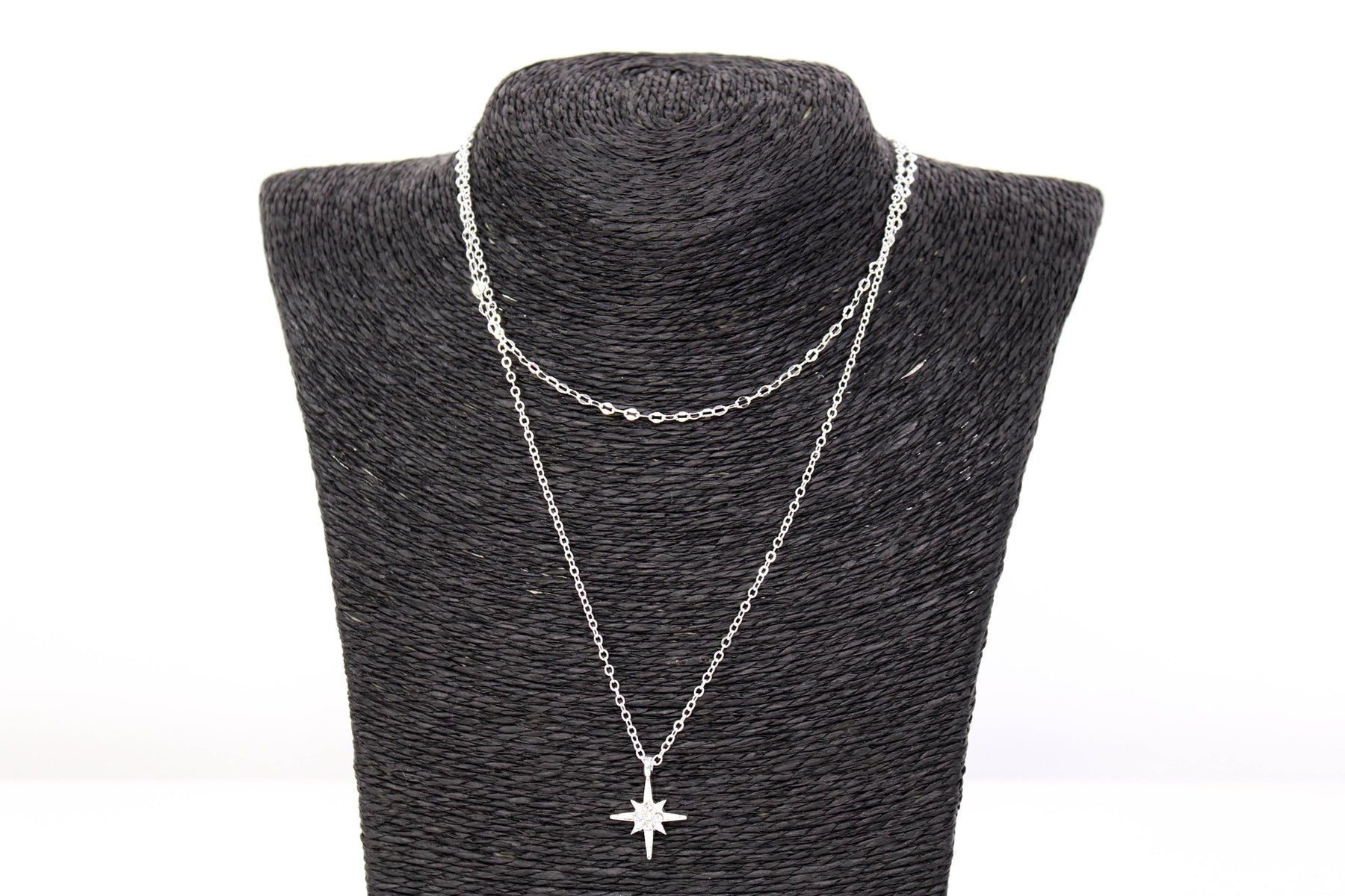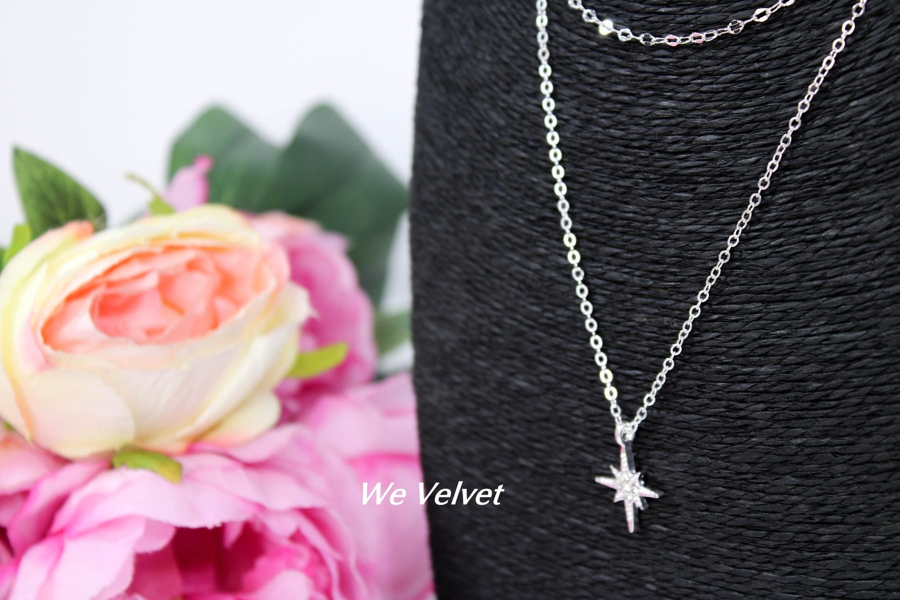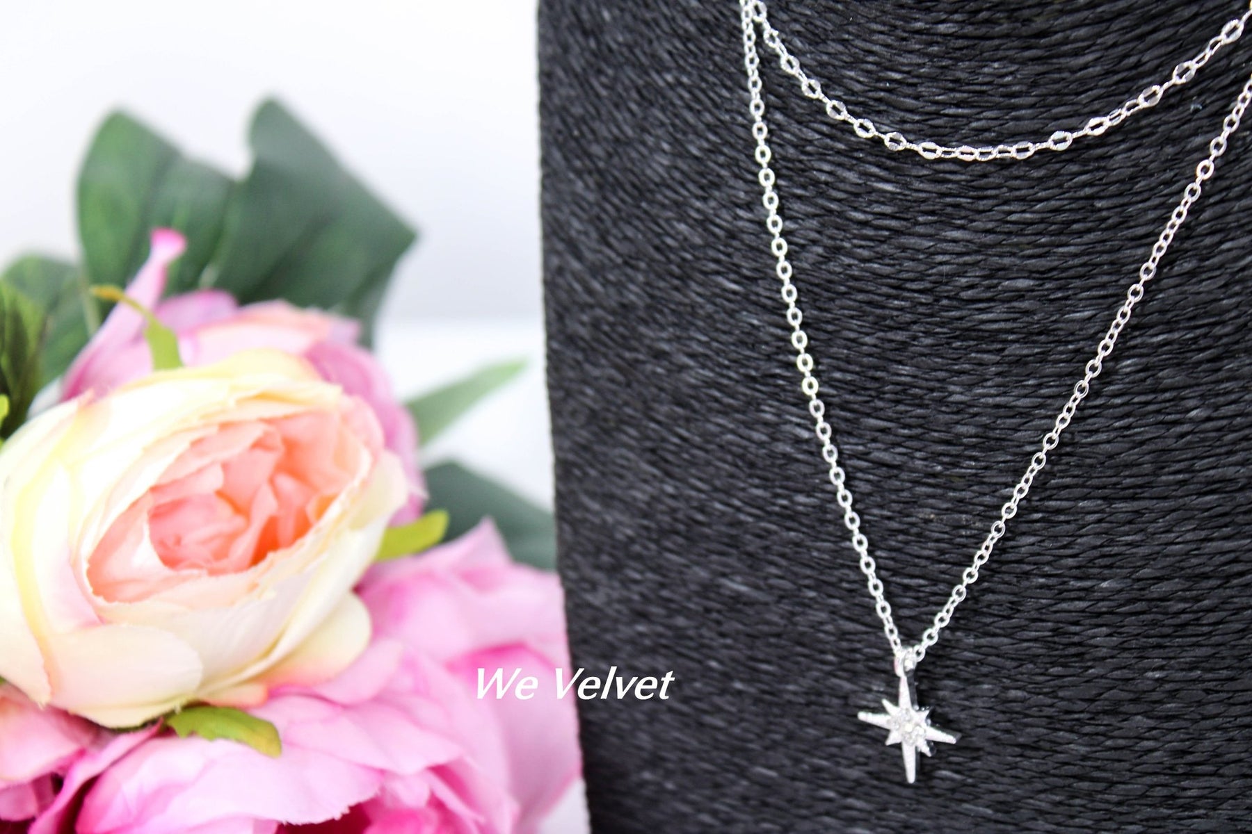 Colier argintiu Steaua Nordului cu cristale strălucitoare CL11
