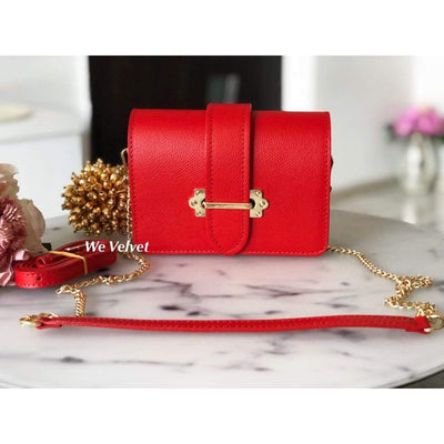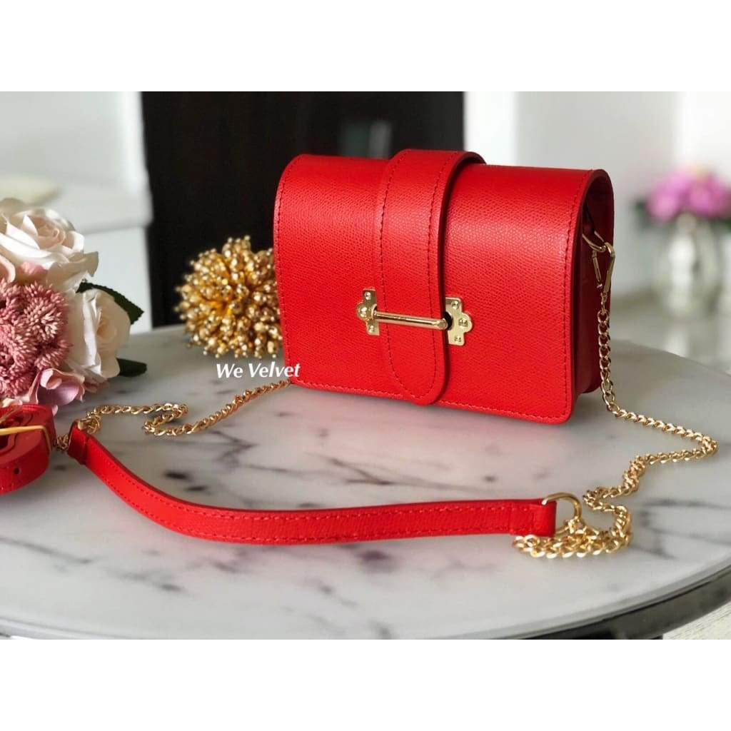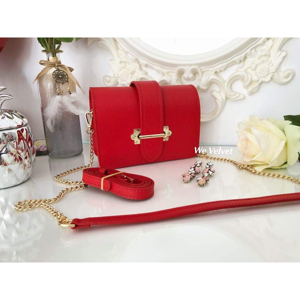 Geantă şi borsetă roşie piele naturală Vanessa
