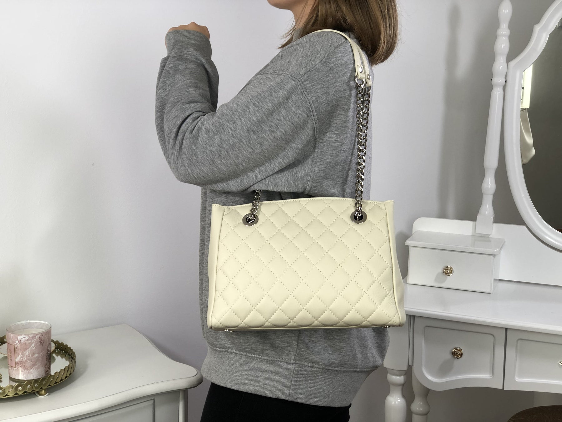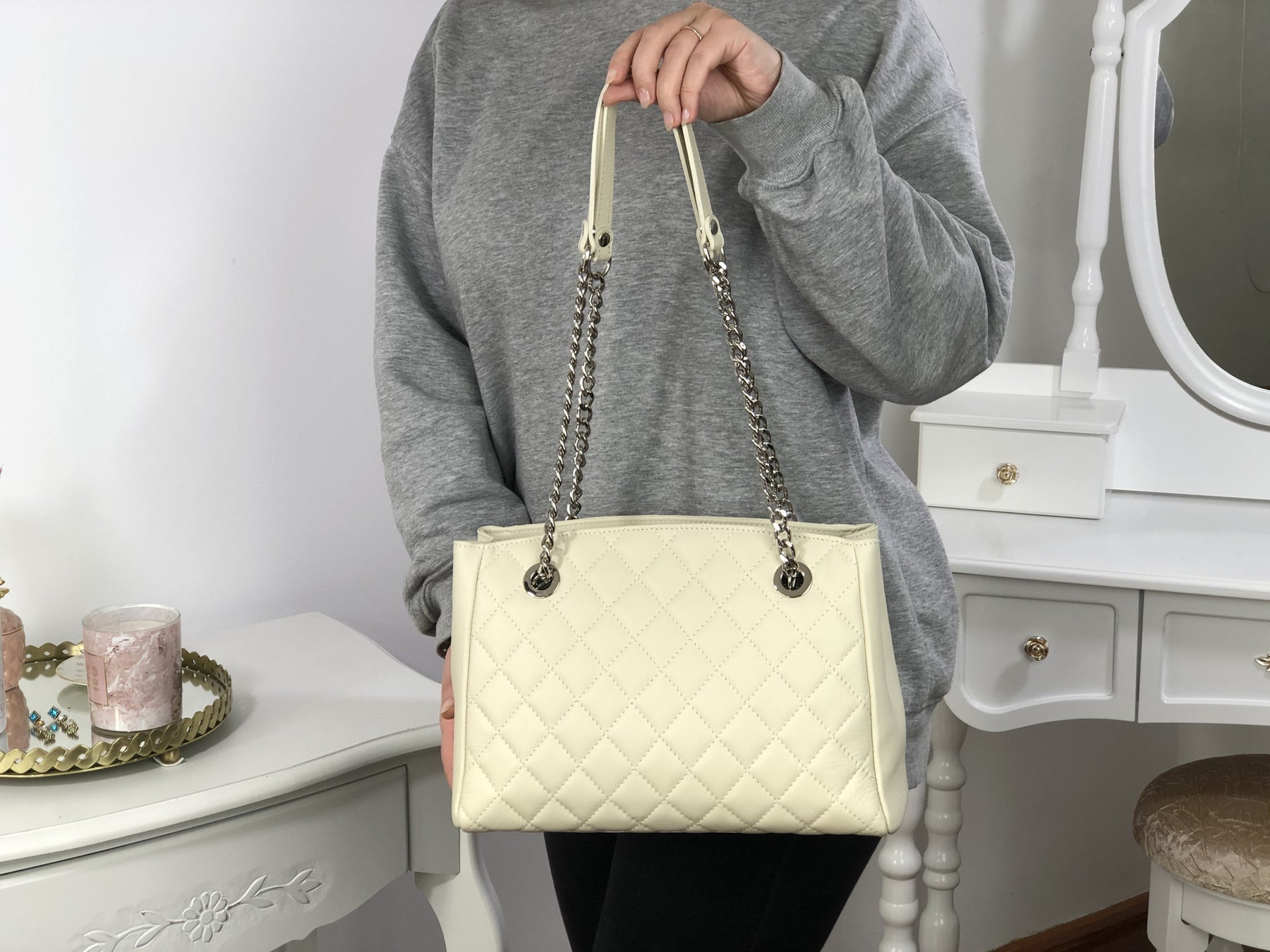 O super-femeie are neapărat nevoie de o super-geantă din piele naturală! Modelul Andora se potrivește perfect criteriilor! Pielea naturală fină, de calitate superioară conferă gentuței și celei ce o poartă o ținută elegantă și rafinată, iar modelul clasic, cu romburi formate din cusături delicate o face să se potrivească oricărui stil!