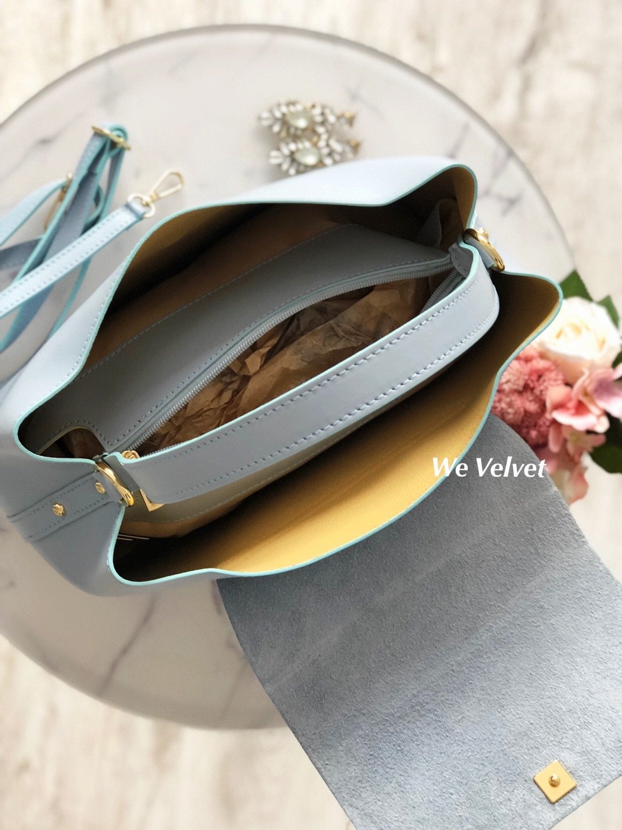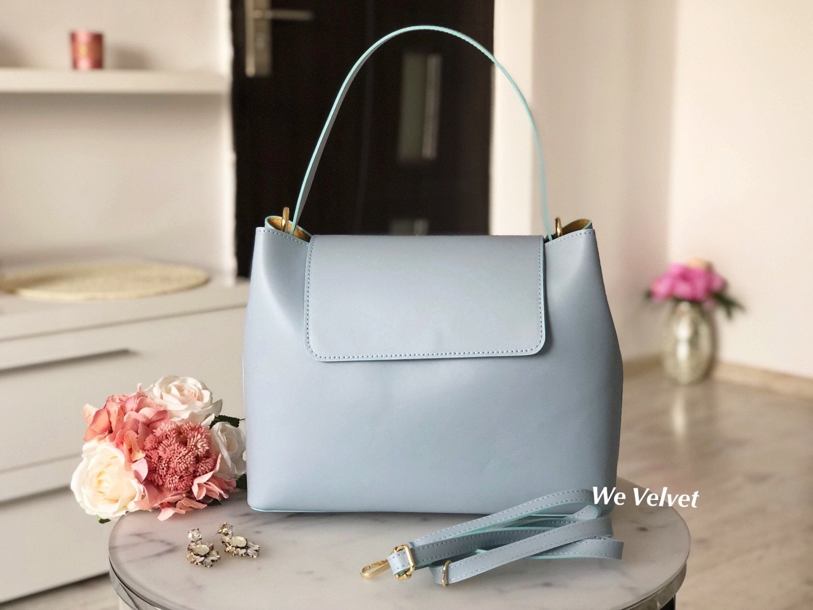 - Geanta se închide cu ajutorul capsei de pe clapetă.