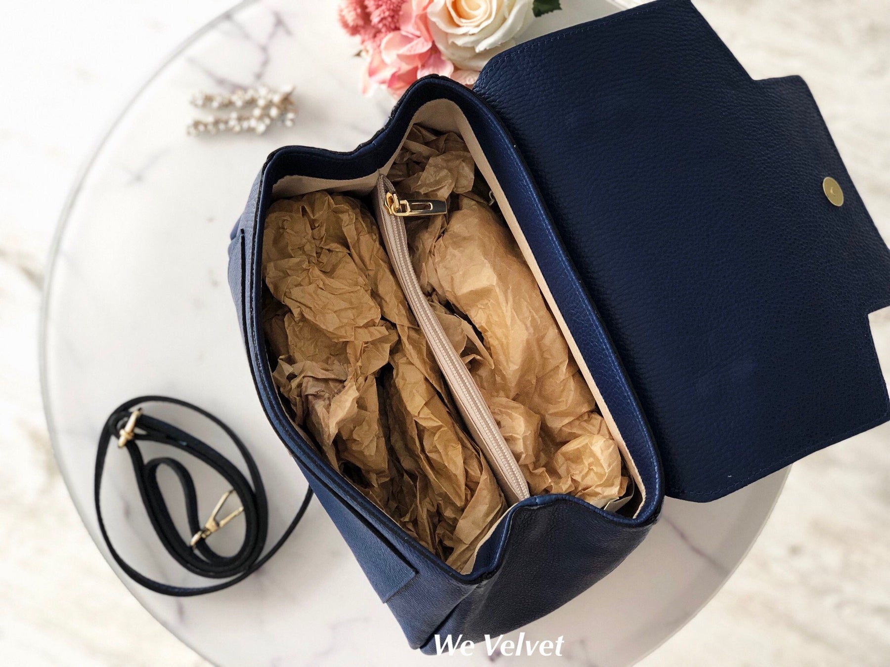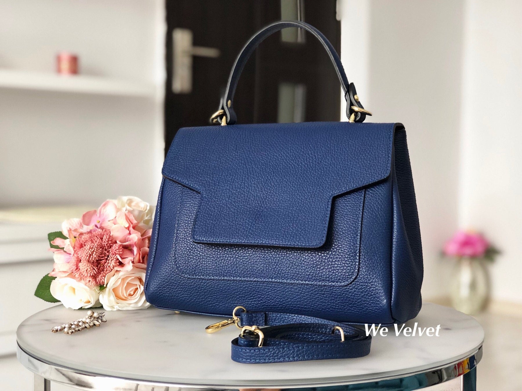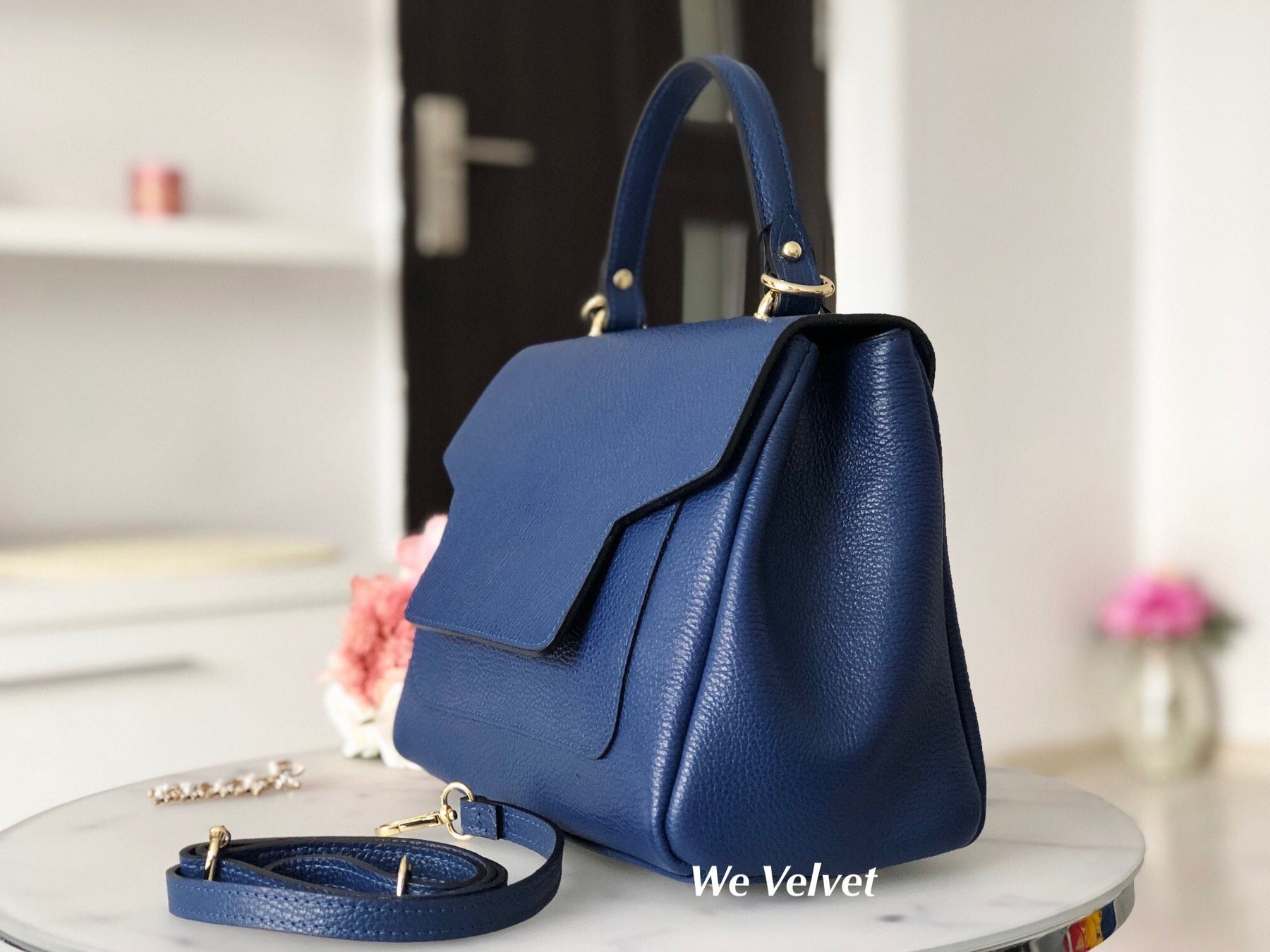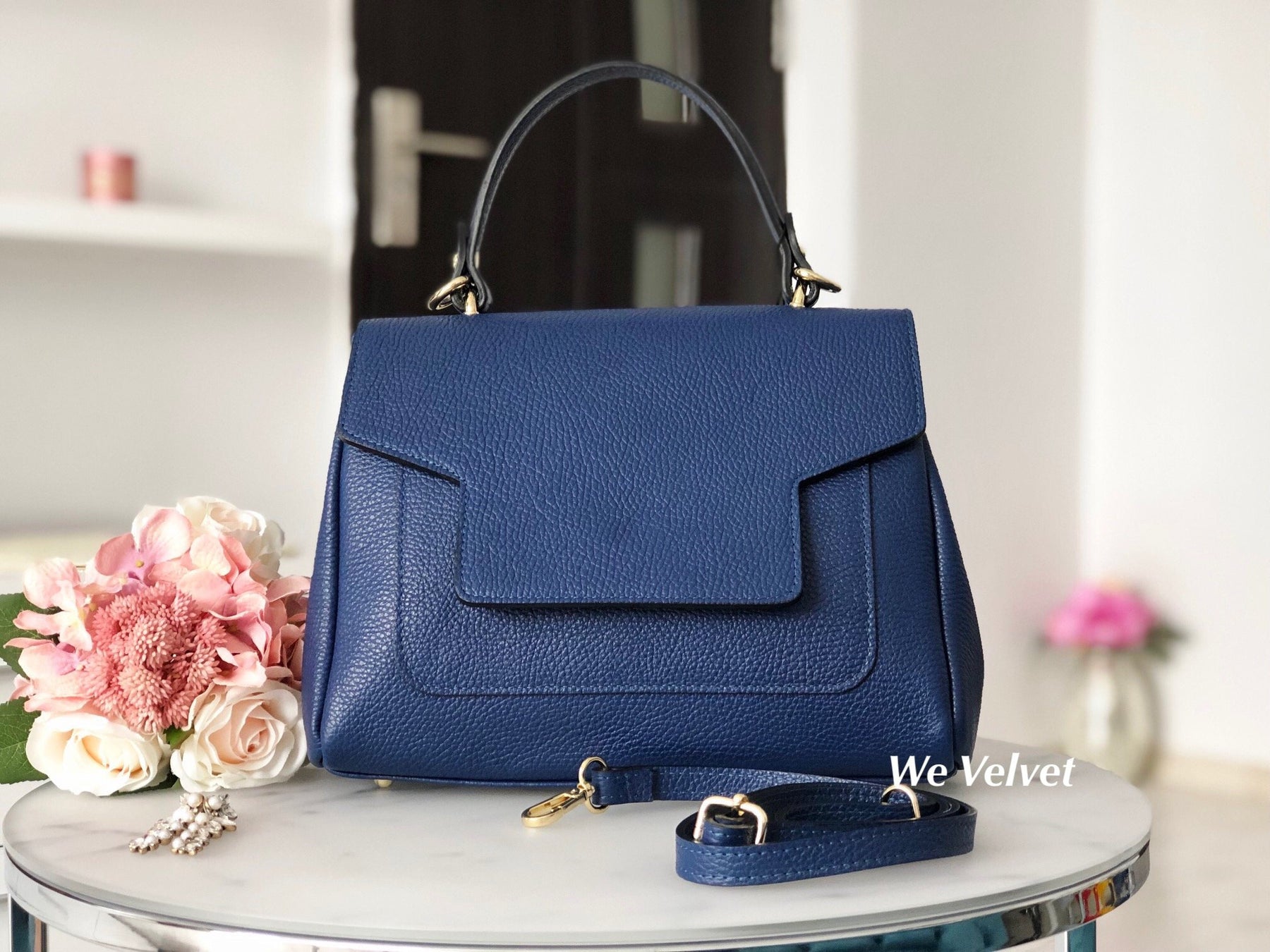 Geantă bleumarin piele naturală Hannah