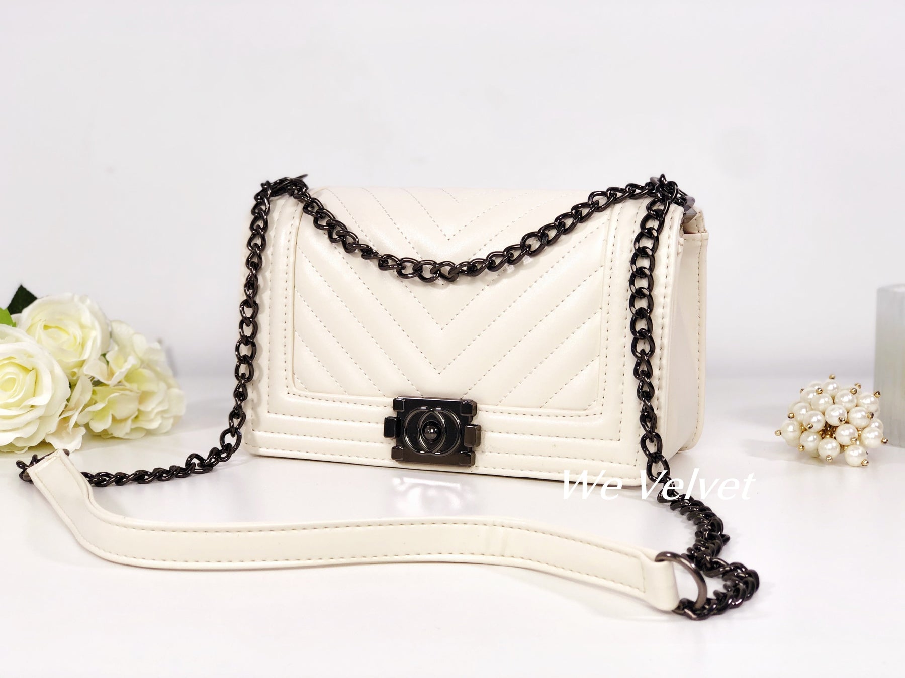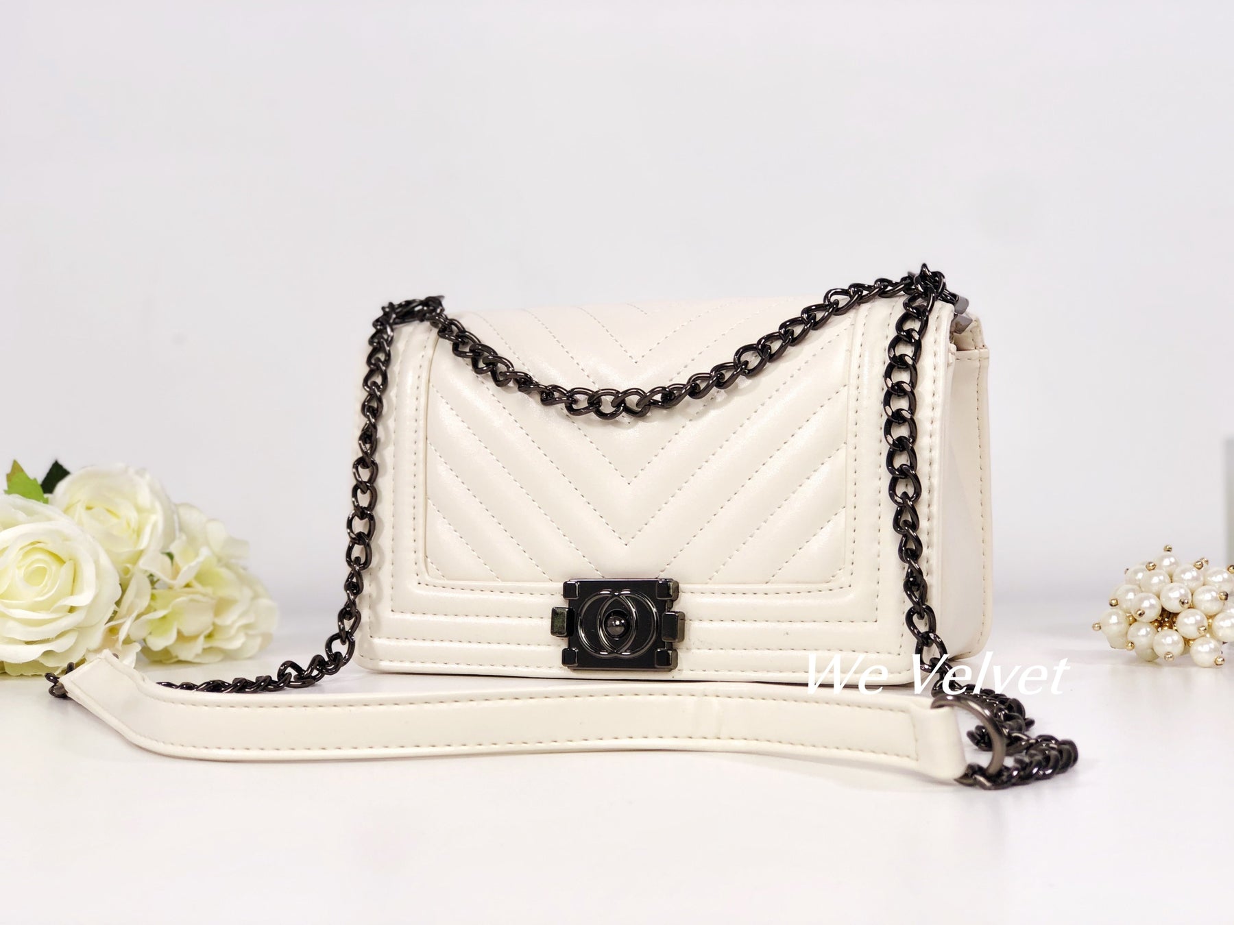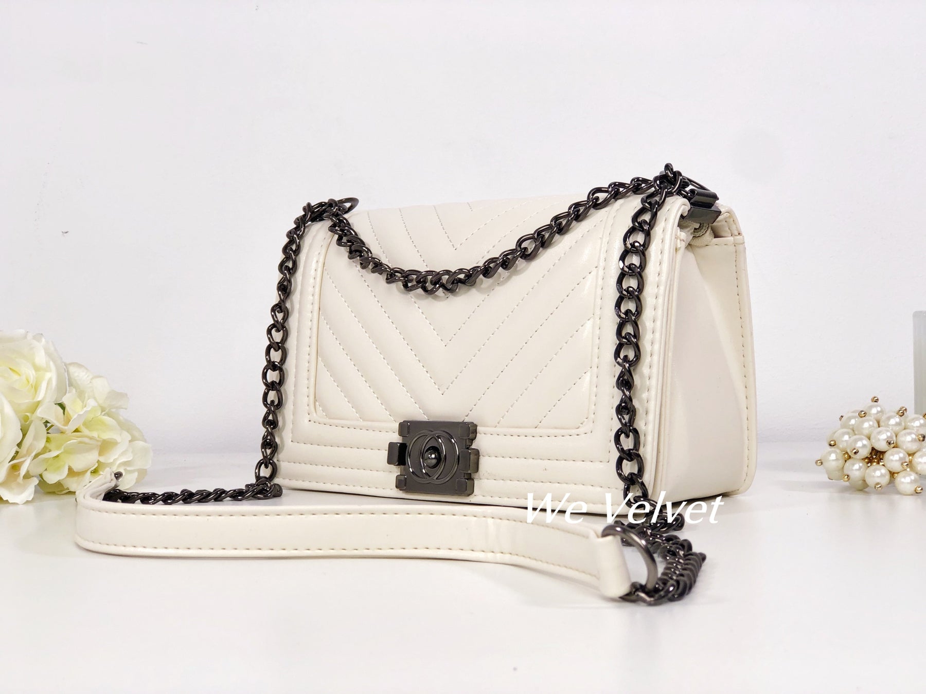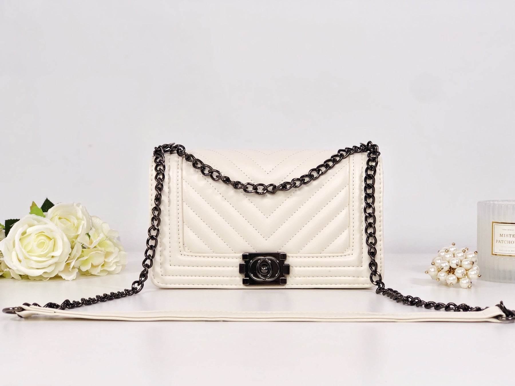• Se poate purta uşor pe umăr, datorită baretei din lanţ.