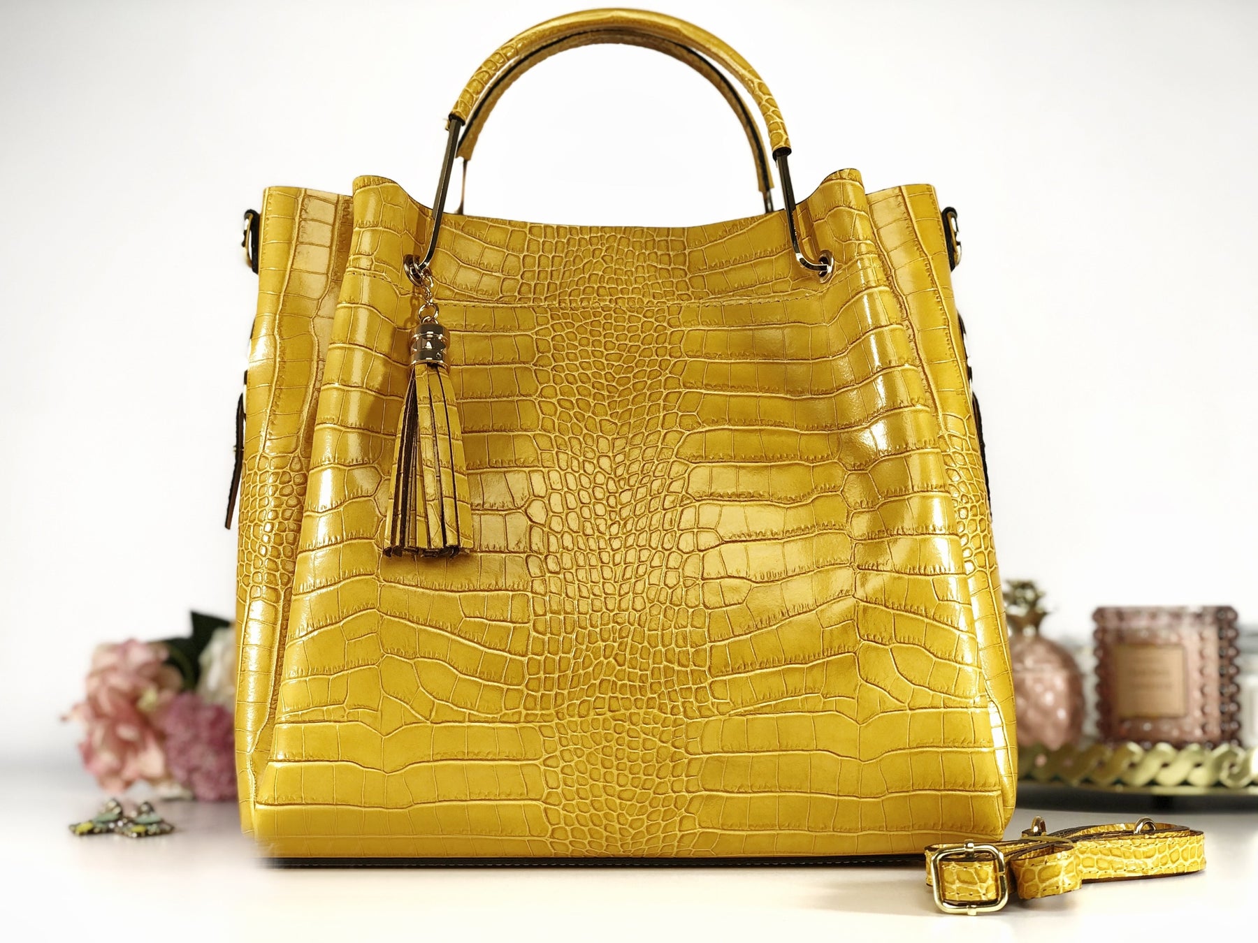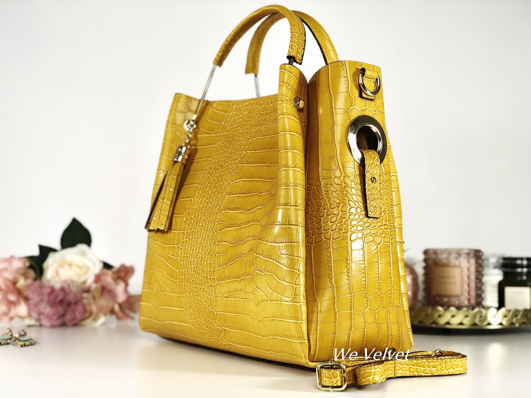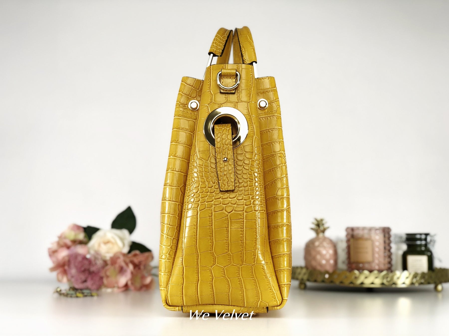 Geantă galbenă piele naturală cu imprimeu croco Allegria