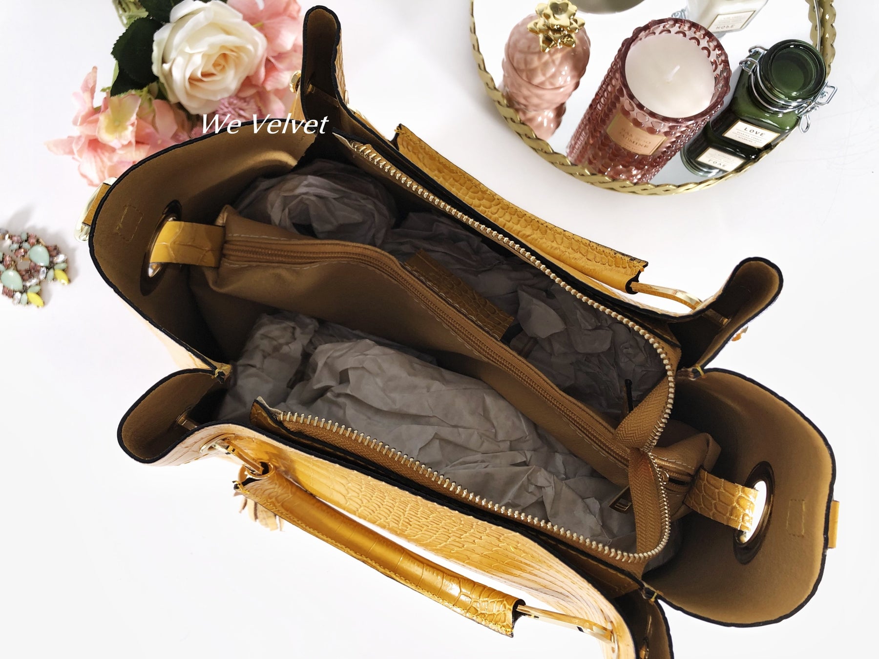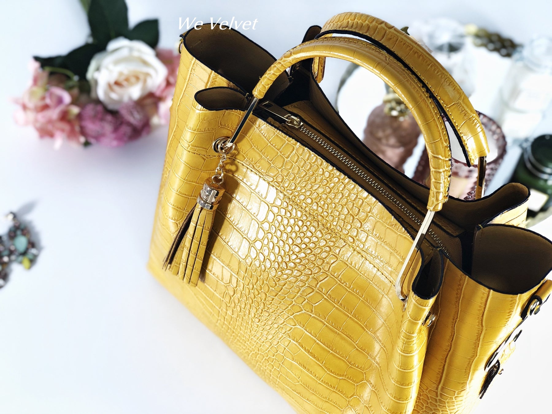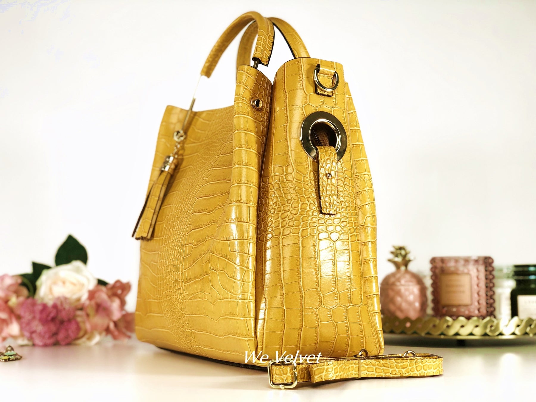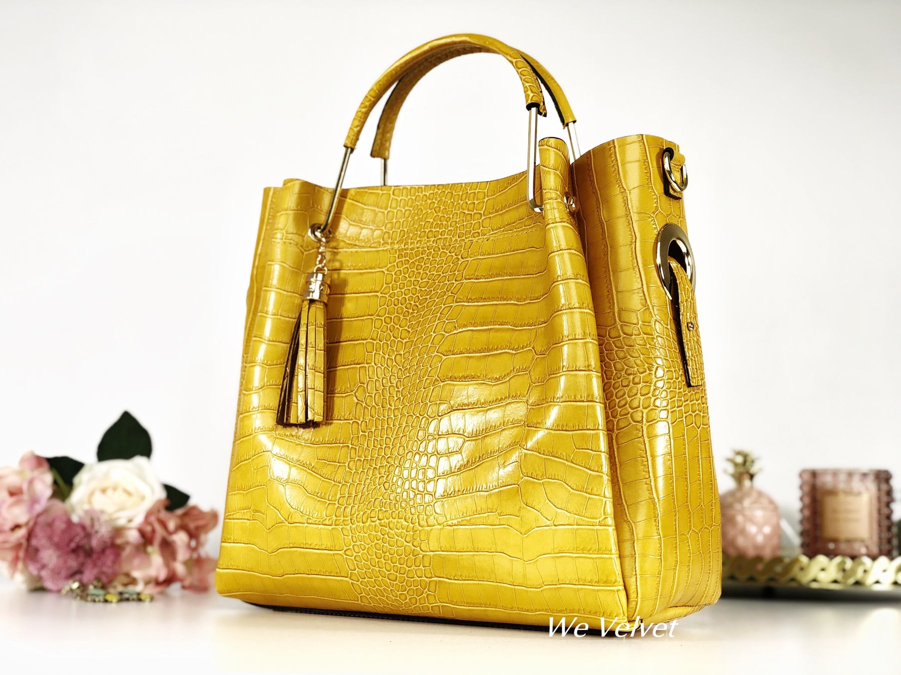 Geantă galbenă piele naturală cu imprimeu croco Allegria