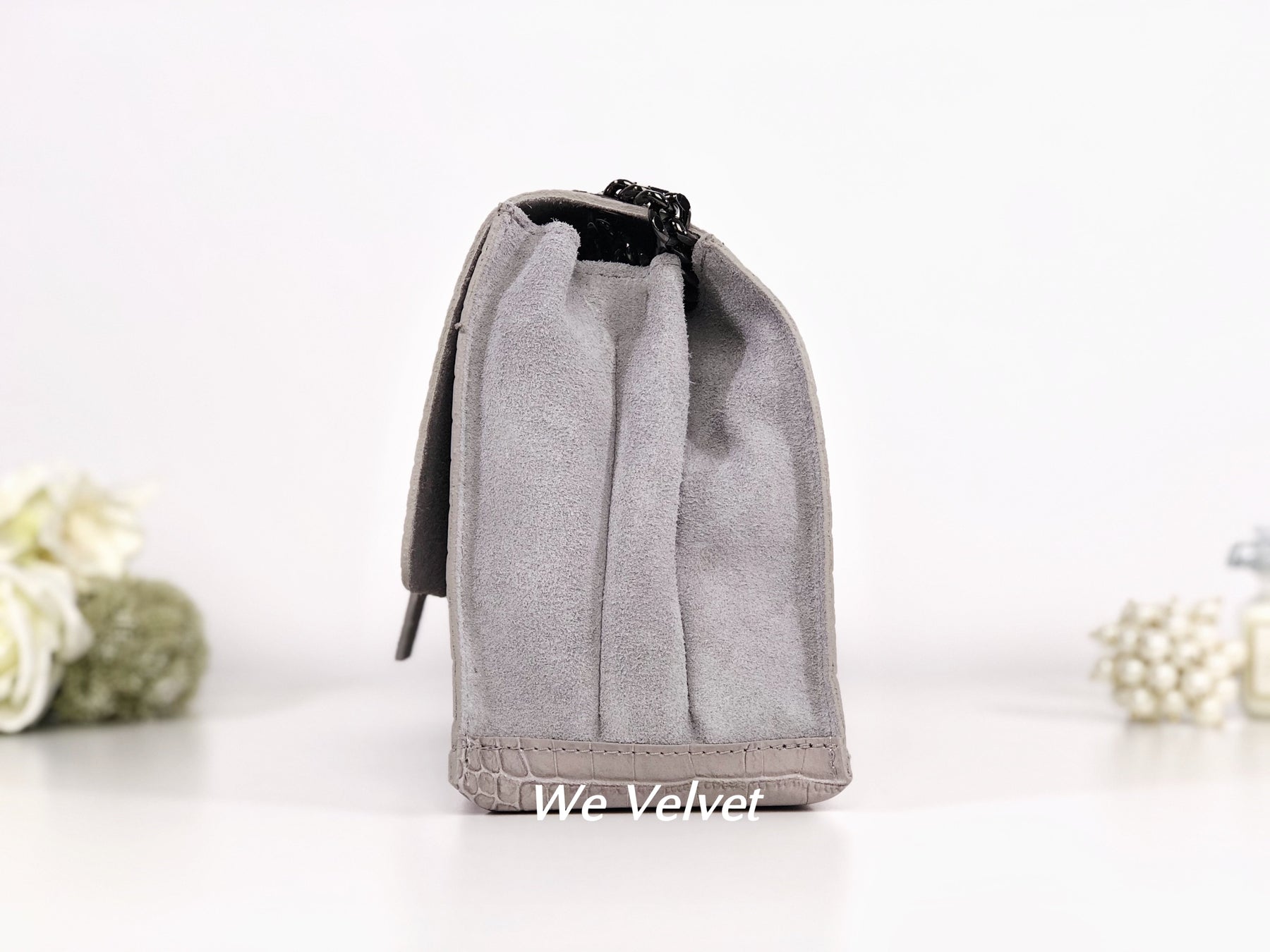 - Geanta prezintă o pată de culoare închisă din fabricație pe partea din față