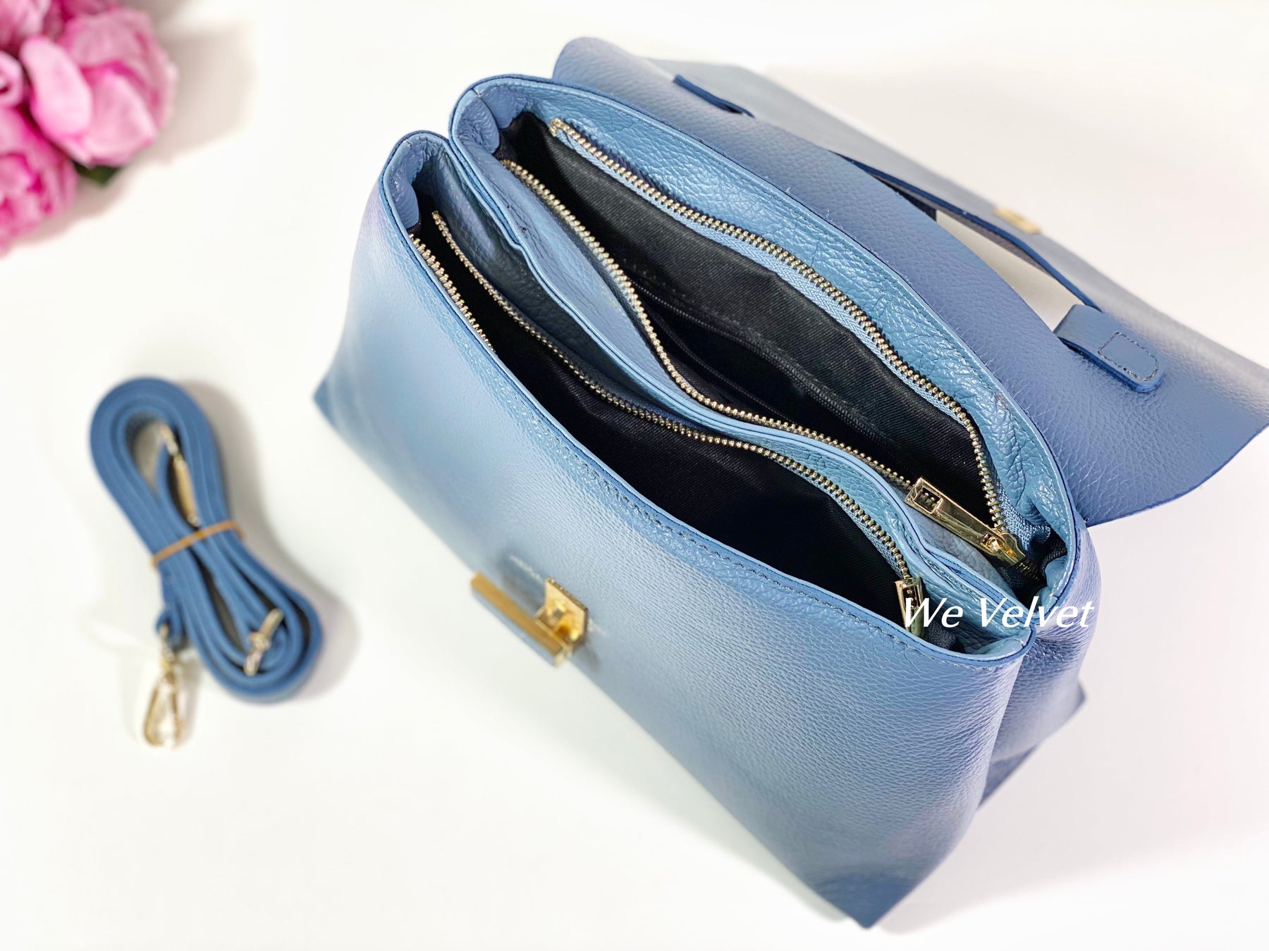 Din piele naturală moale și rezistentă, cu două compartimente separate și interior spațios, va deveni ușor gentuța ta preferată din garderobă!