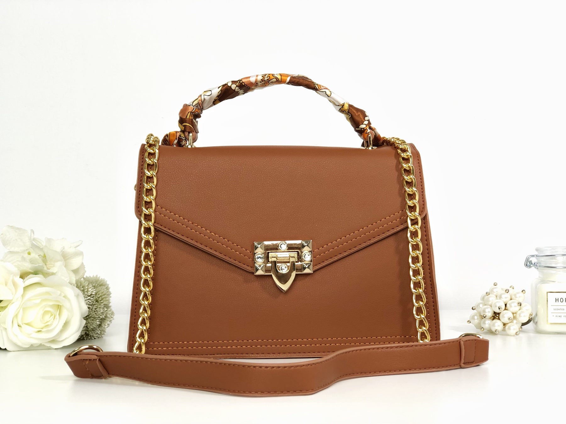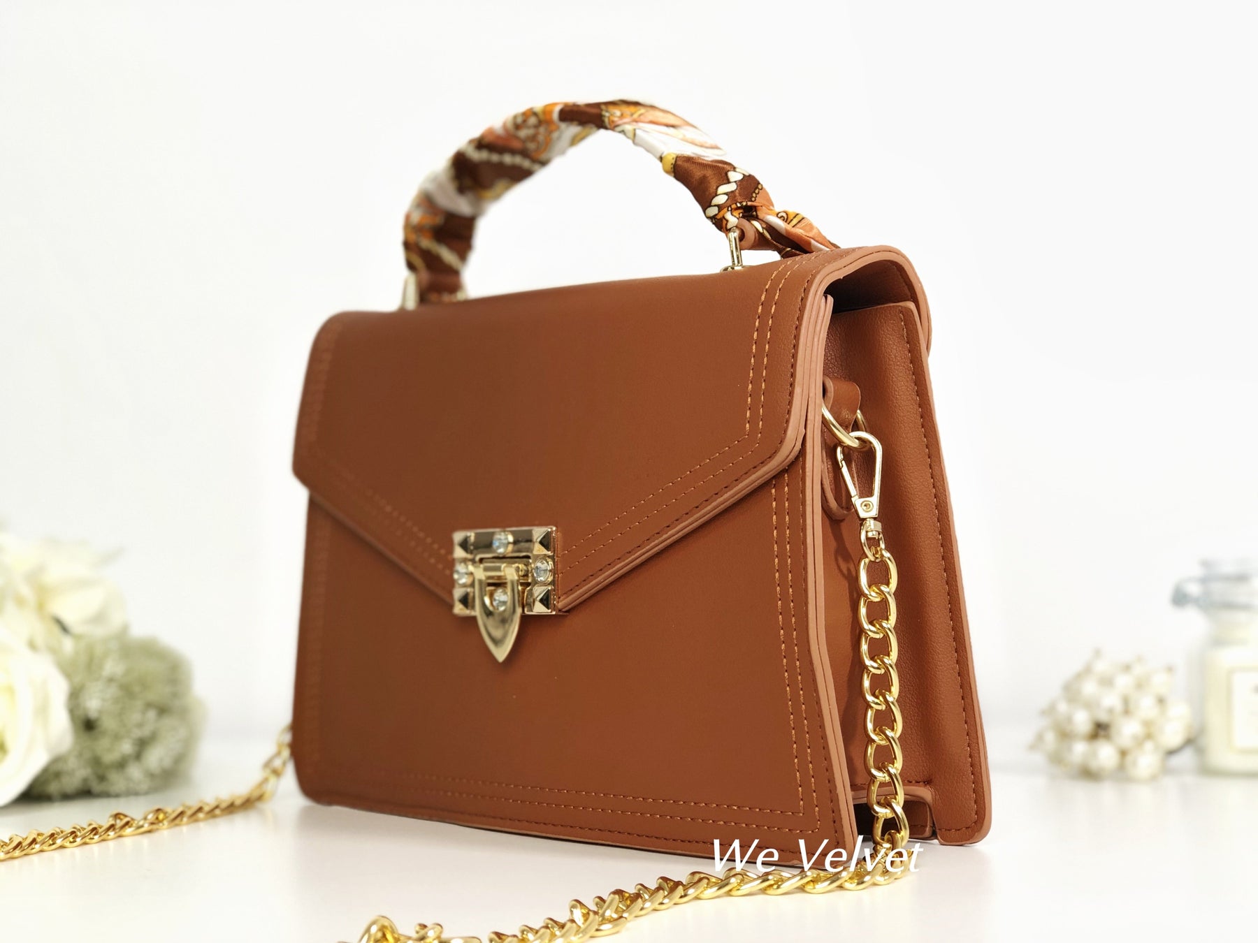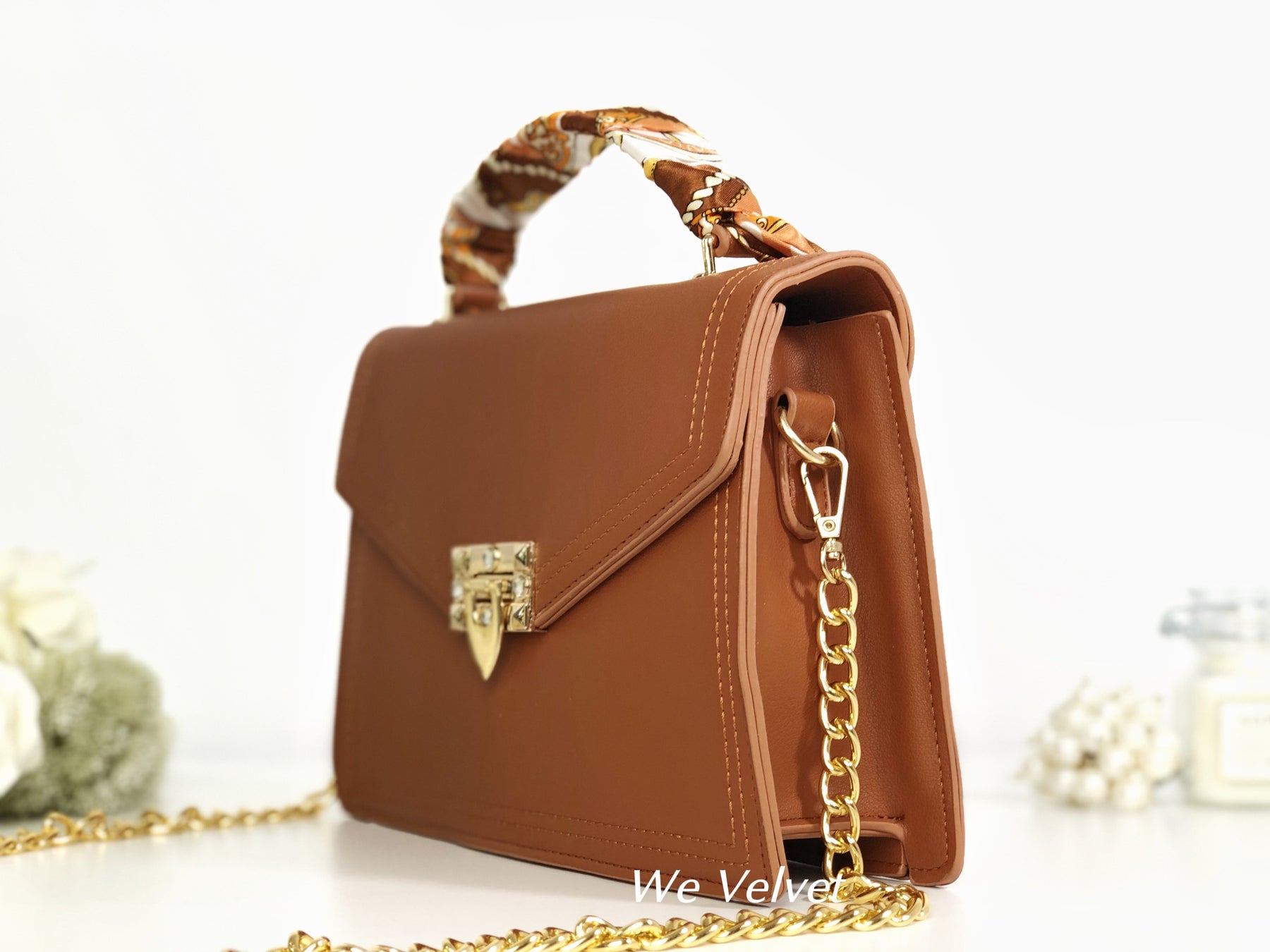 Este un model cochet, feminin și extrem de versatil. Îl poți purta atât cu ținute de tip casual cât și office, pentru un plus de stil și eleganță. Mânerul este decorat cu o superbă eșarfă ce îi oferă un look aparte, iar tu vei arăta demențial!