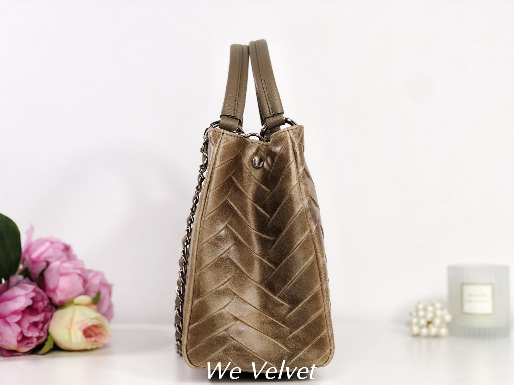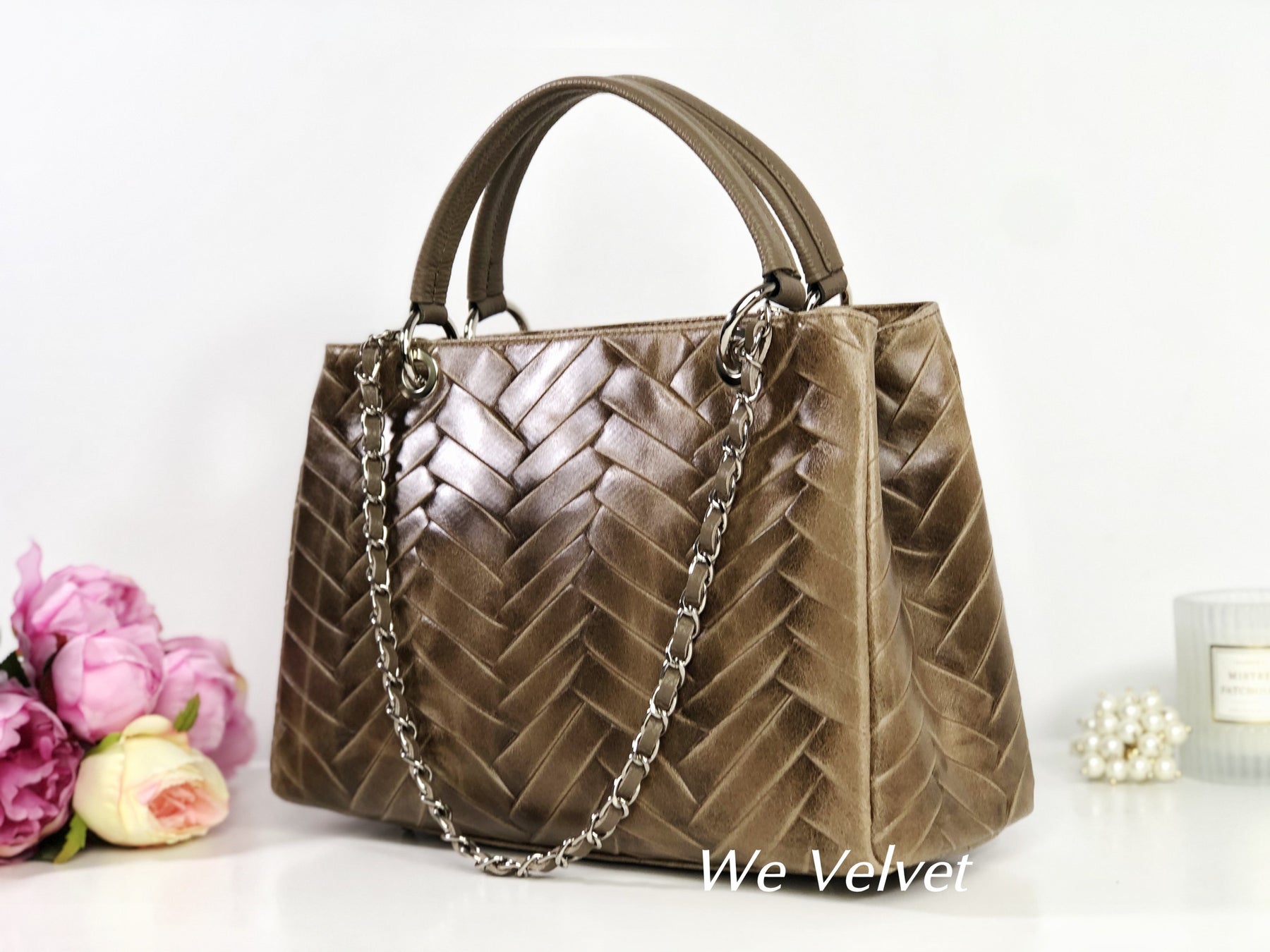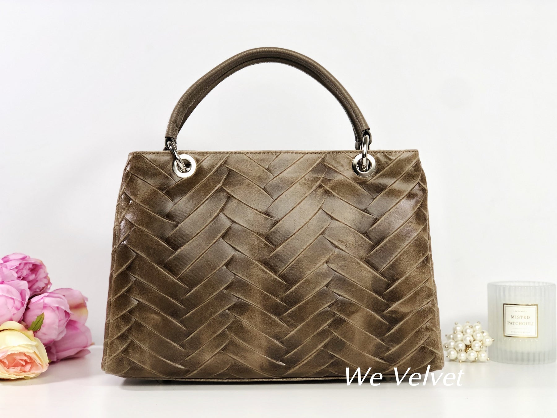 Confecționată dintr-o piele naturală de cea mai bună calitate, își va păstra strălucirea în timp, chiar și peste ani. Modelul ce se aseamănă cu o împletitură diafană va asigura o notă feminină oricărei ținute, iar mânerul de mână, foarte rezistent, va asigura o purtare confortabilă. Gentuța se închide cu un fermoar, iar la interior prezintă două buzunare cu fermoar și două compartimente libere.