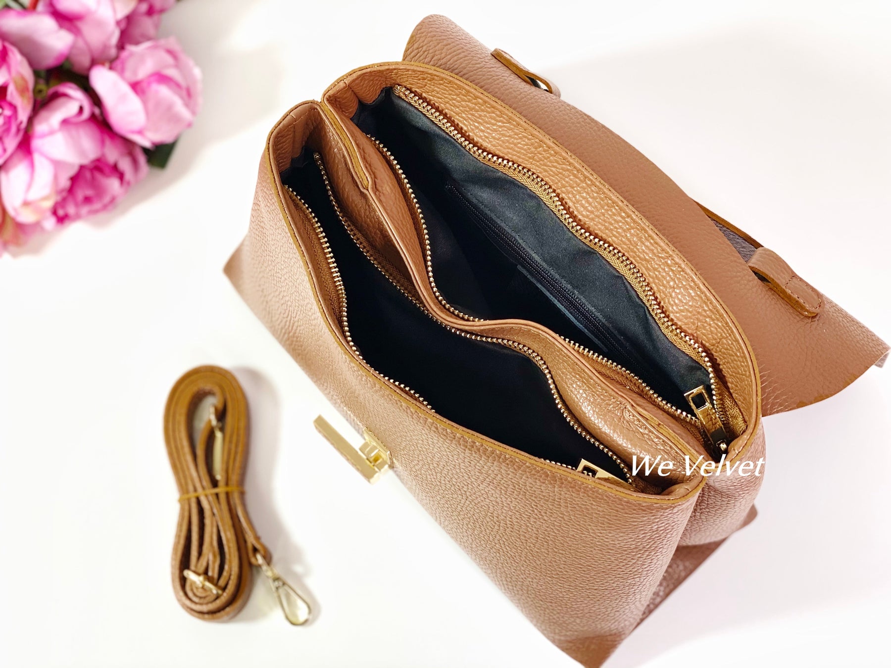 Din piele naturală moale și rezistentă, cu două compartimente separate și interior spațios, va deveni ușor gentuța ta preferată din garderobă!
