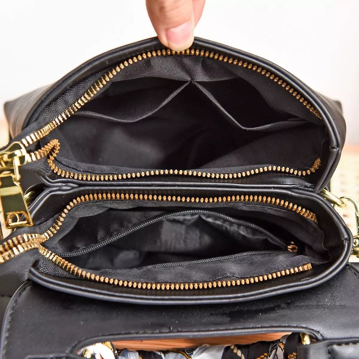 • La interior dispune de 2 compartimente, un buzunar cu fermoar și 2 buzunare fără fermoar