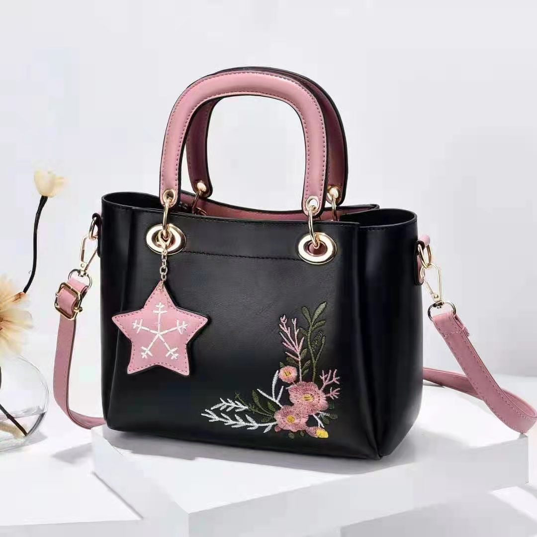 Broderie florală, feminină, și piele ecologică de cea mai bună calitate! Cu siguranță vei radia de romantism de fiecare dată când porți gentuța Freja.
