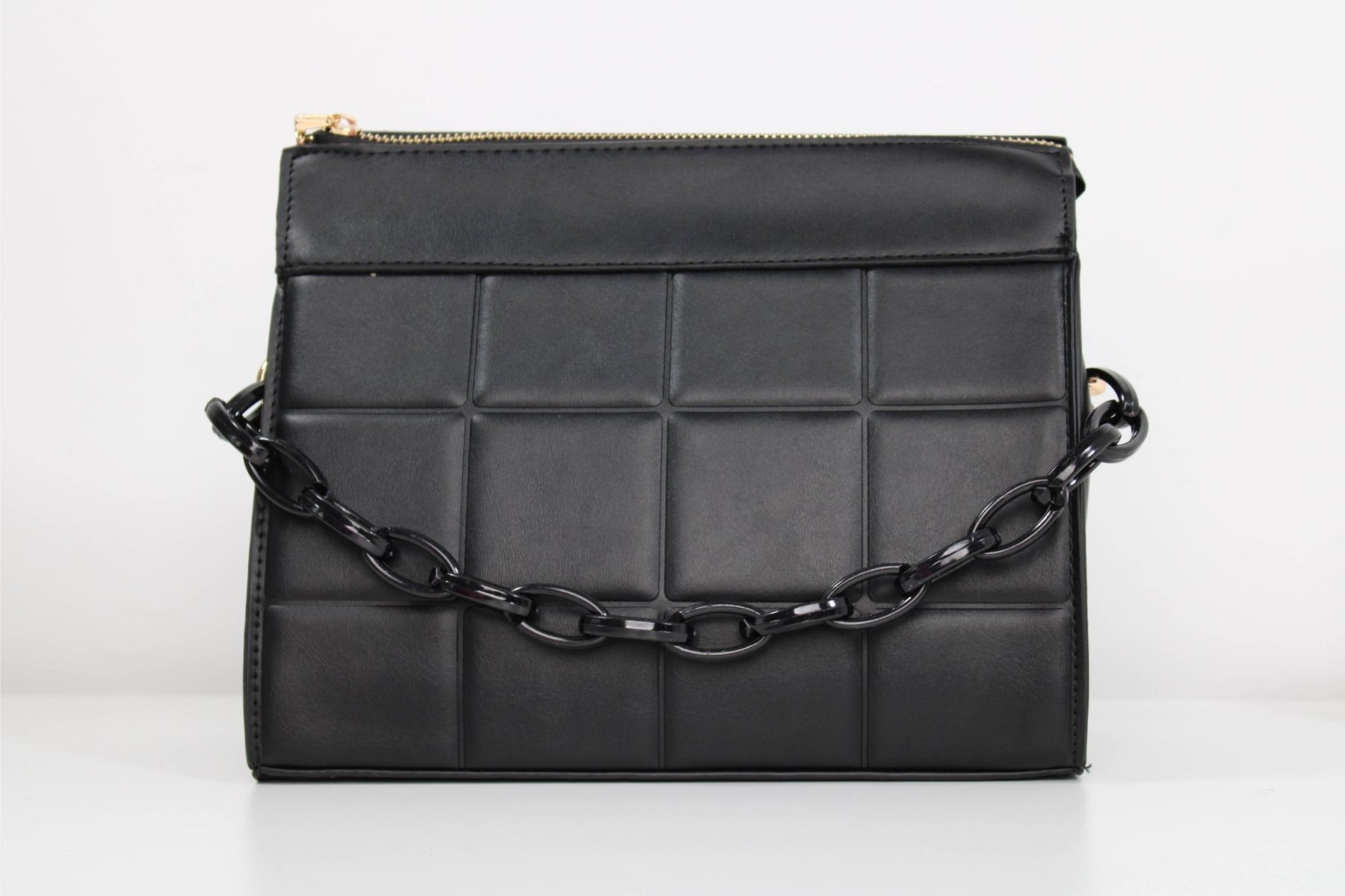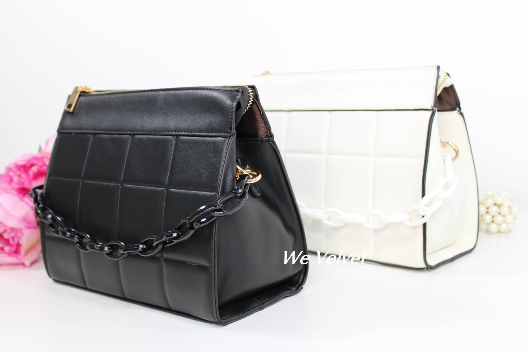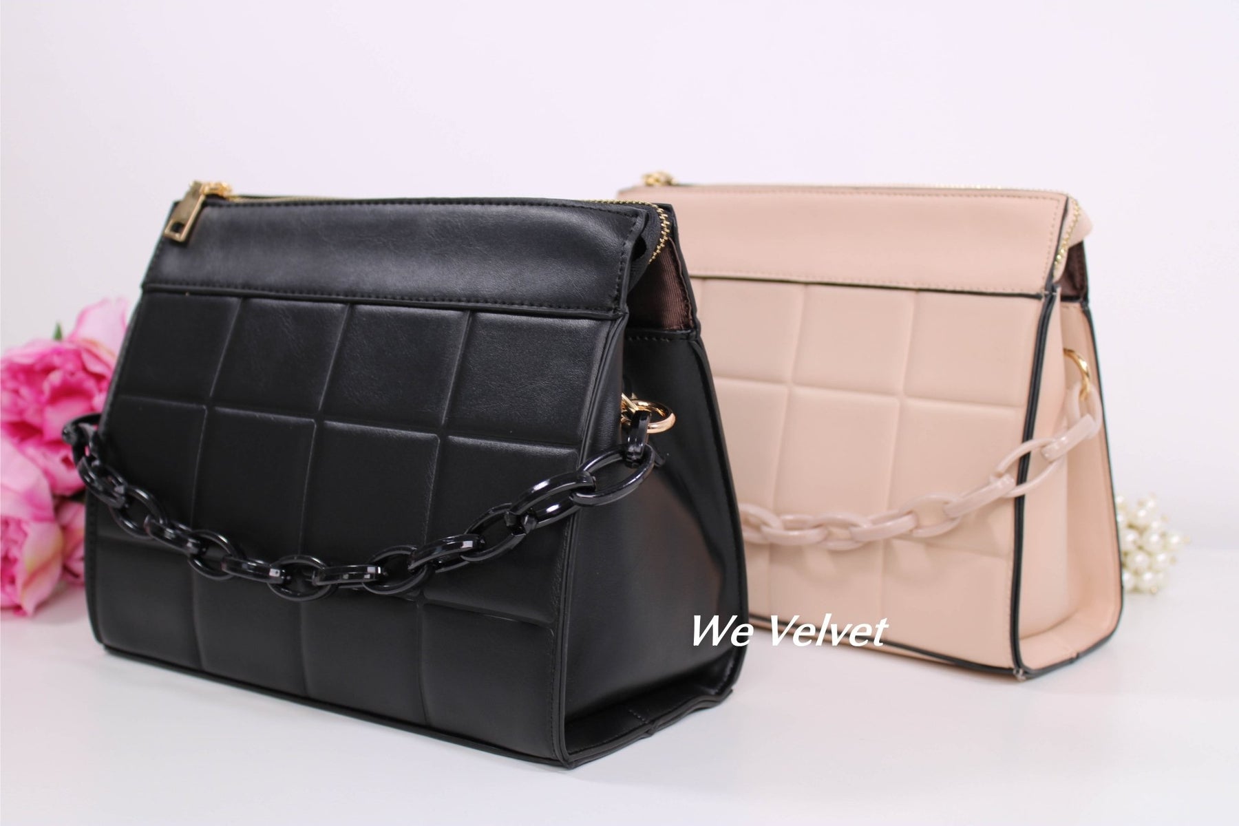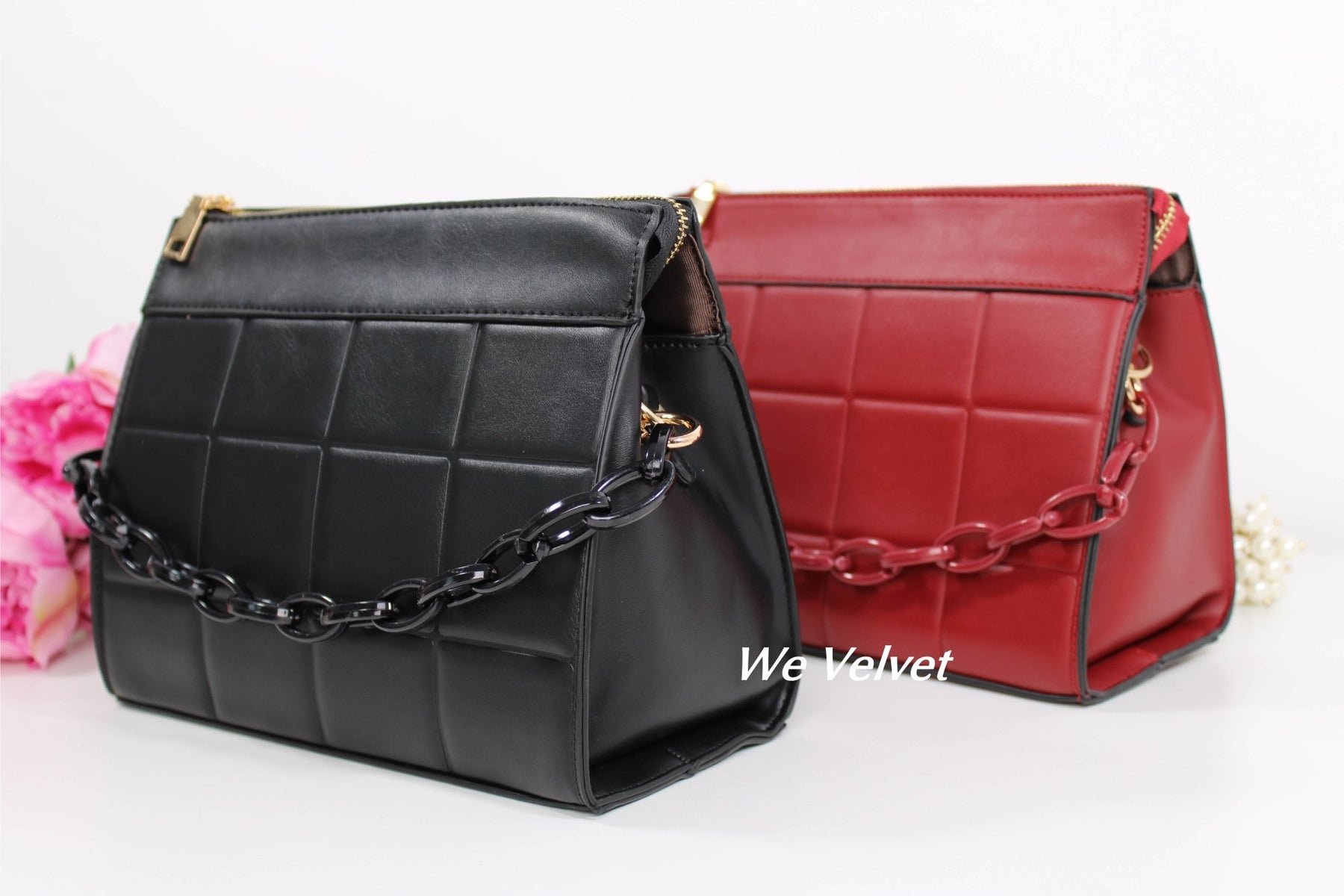 Colorează peisajul urban cu nuanțele vibrante ale gentuței Squaria! Interiorul spațios,  bareta tip lanț pentru mână și bareta reglabilă pentru umăr îți vor înfrumuseța fiecare zi!