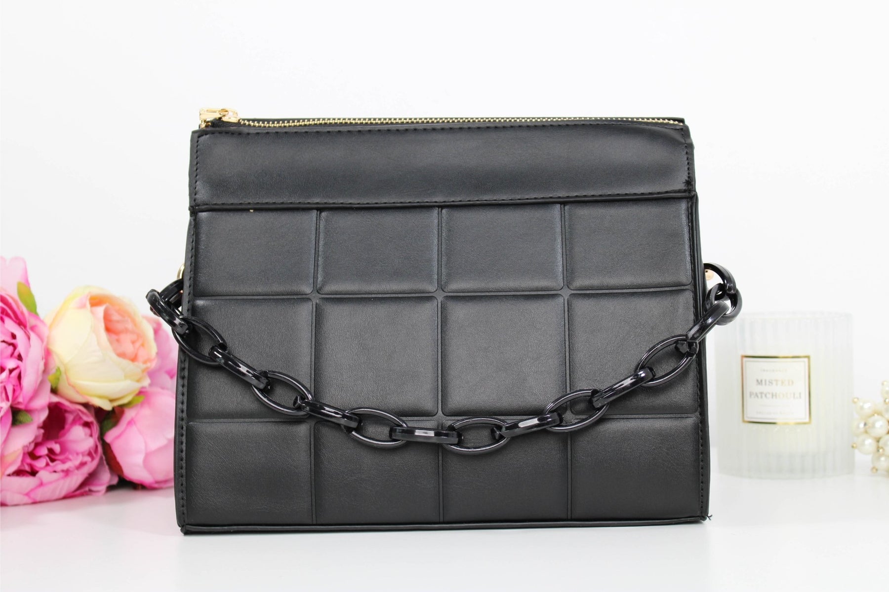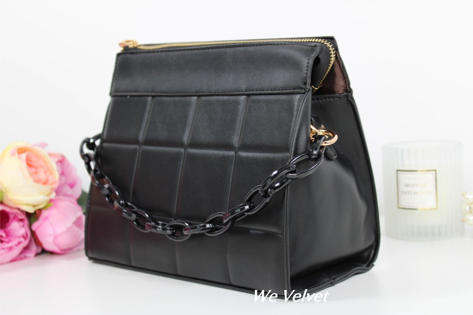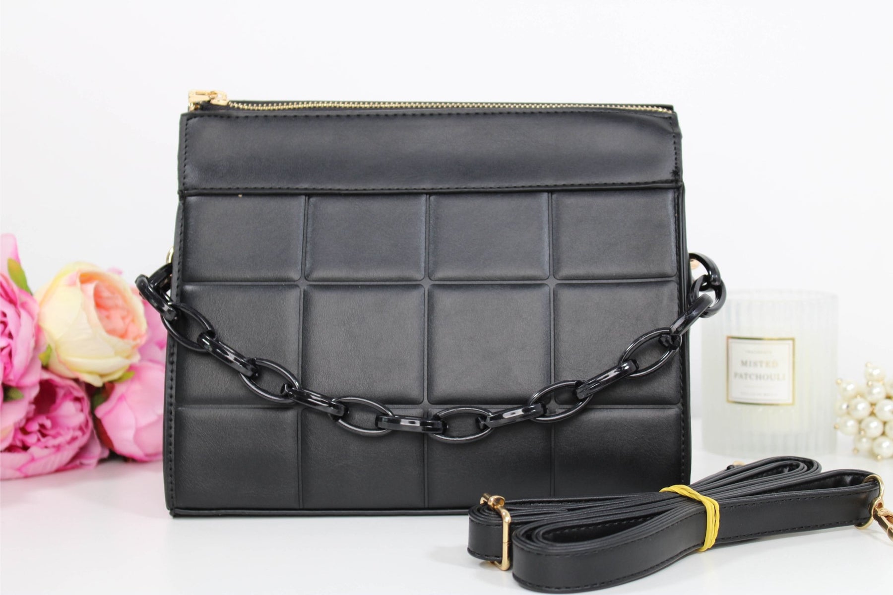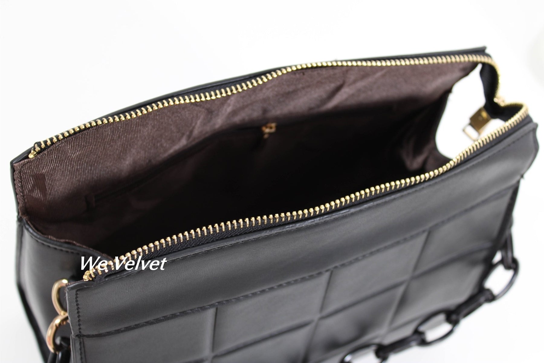Colorează peisajul urban cu nuanțele vibrante ale gentuței Squaria! Interiorul spațios,  bareta tip lanț pentru mână și bareta reglabilă pentru umăr îți vor înfrumuseța fiecare zi!