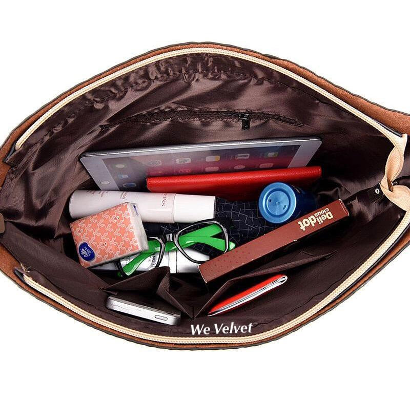 - La interior dispune de un buzunar cu fermoar și 2 mai mici fără fermoar