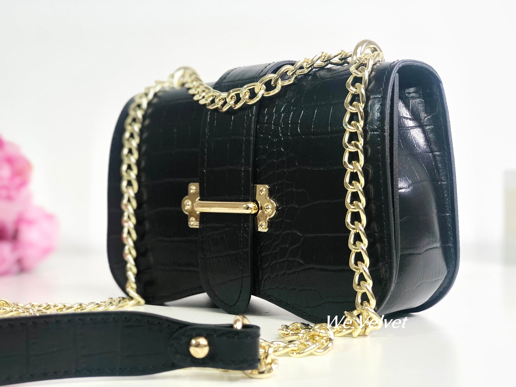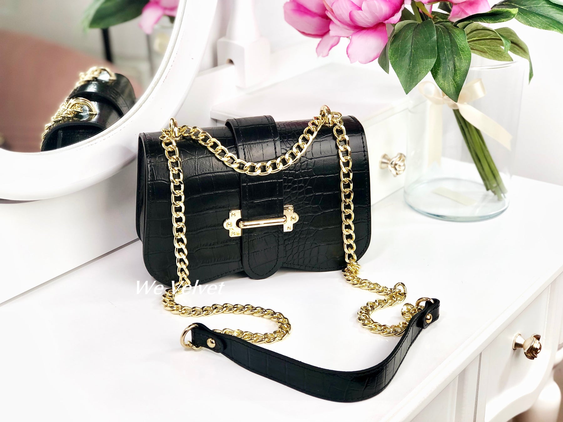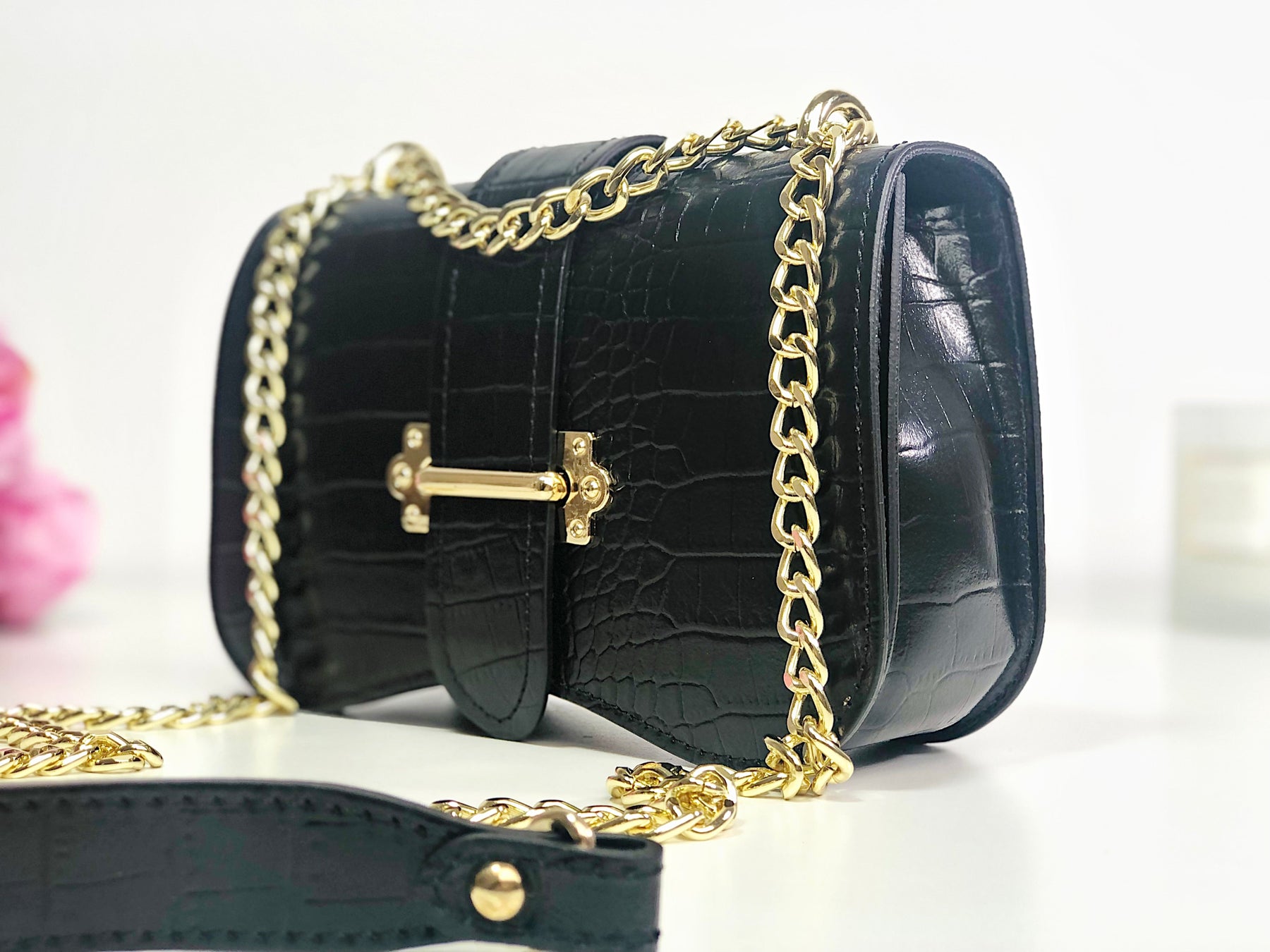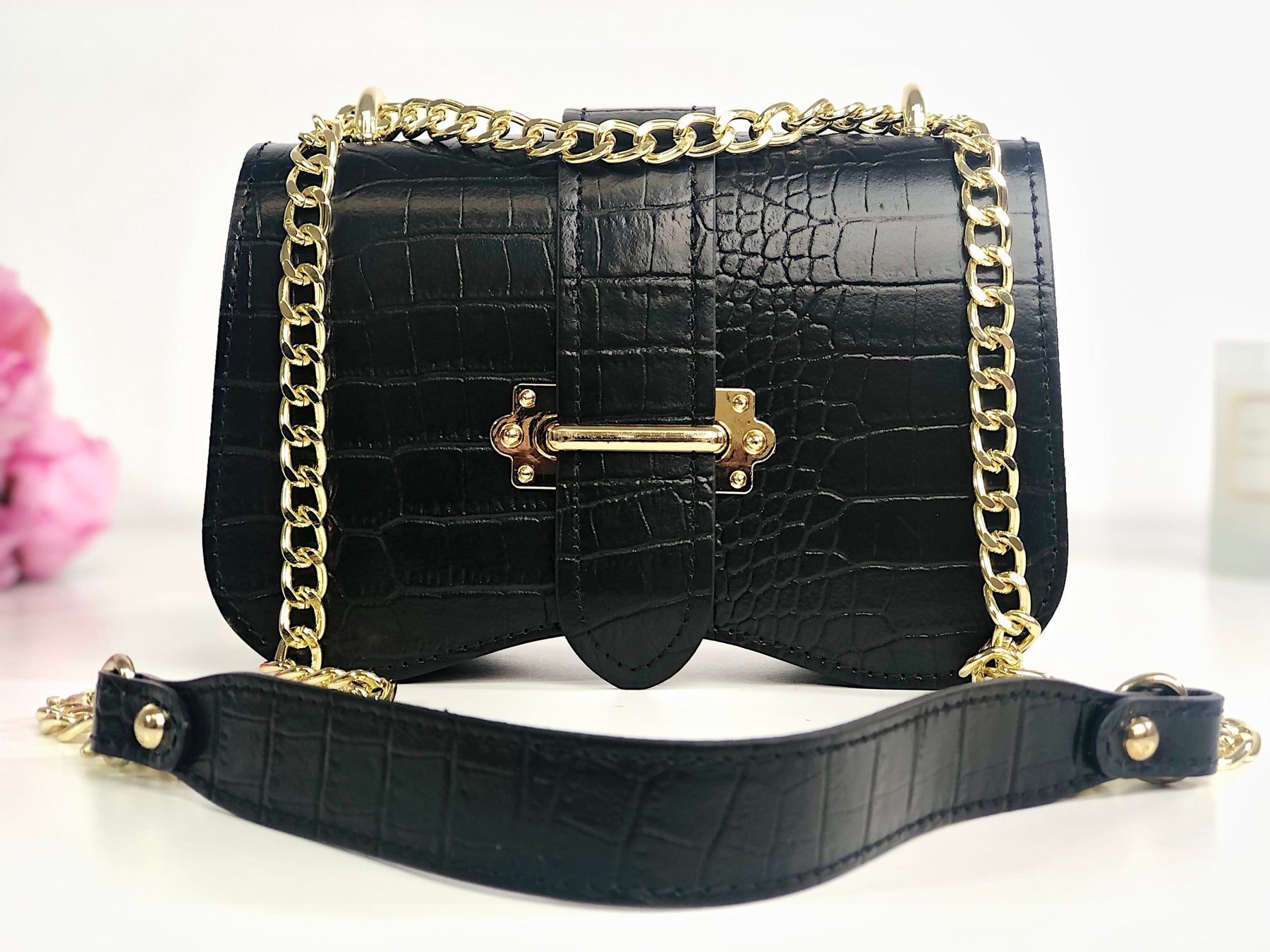 Gentuța Valentine din piele naturală este tot ce ai nevoie ca să te îndrăgostești! Imprimeul croco este super versatil iar accentele aurii, metalice sunt cele care atrag toate privirile!