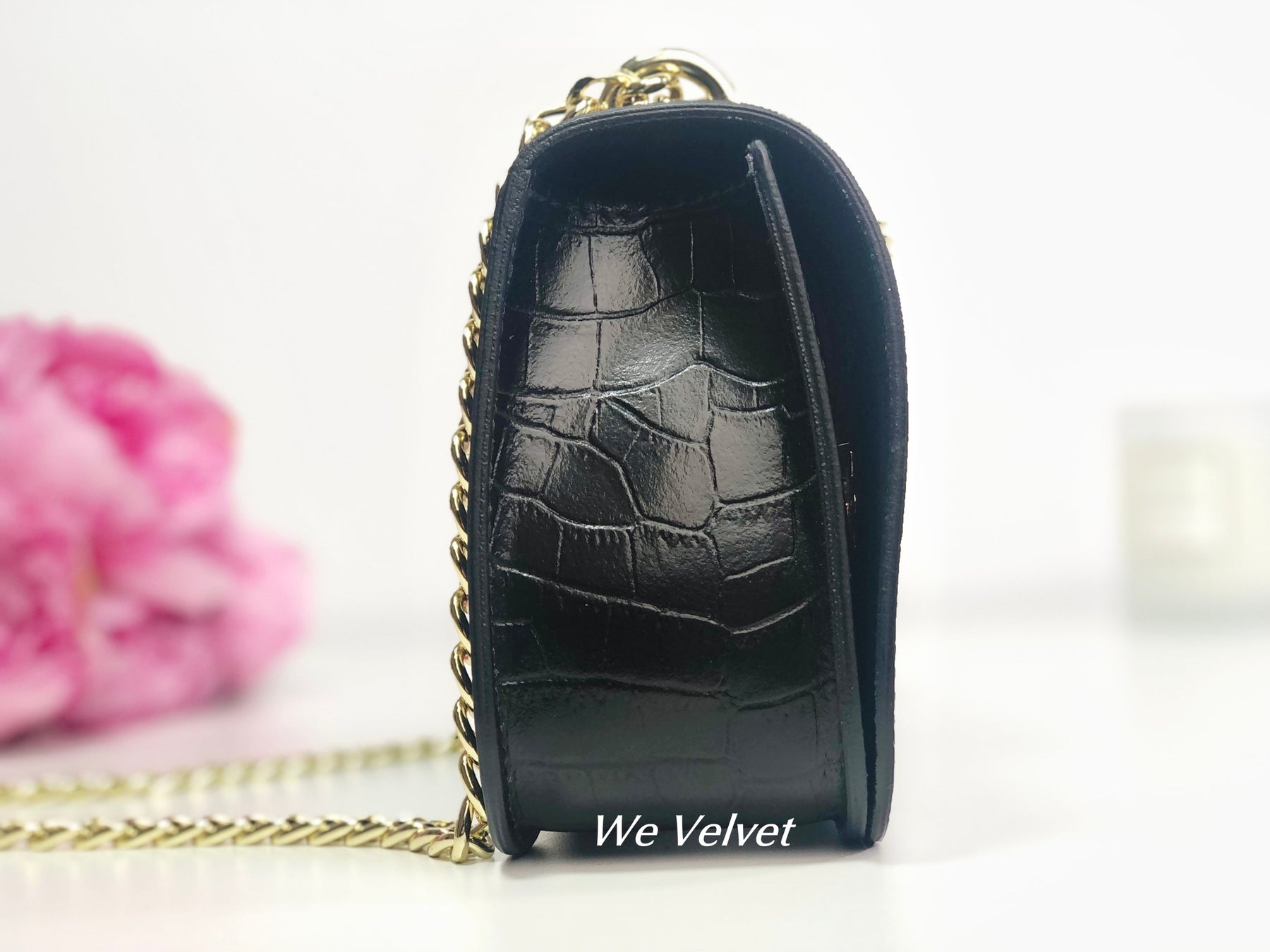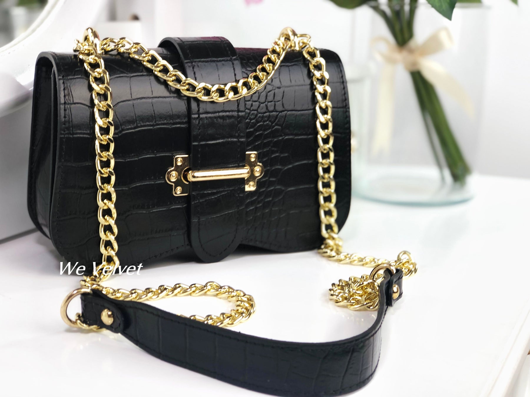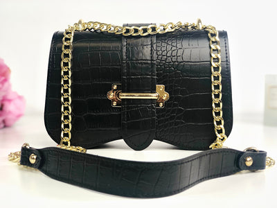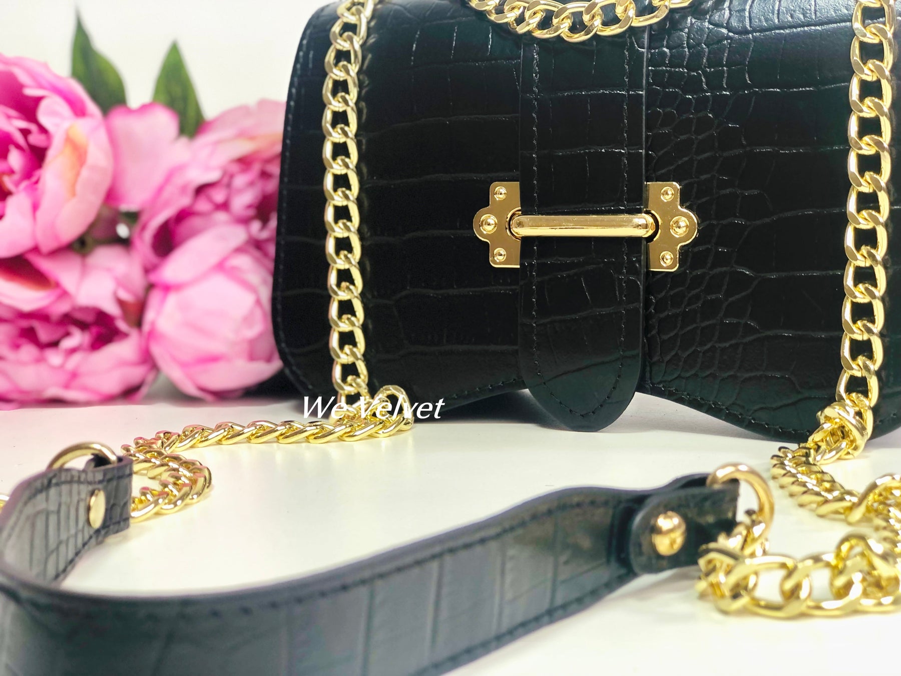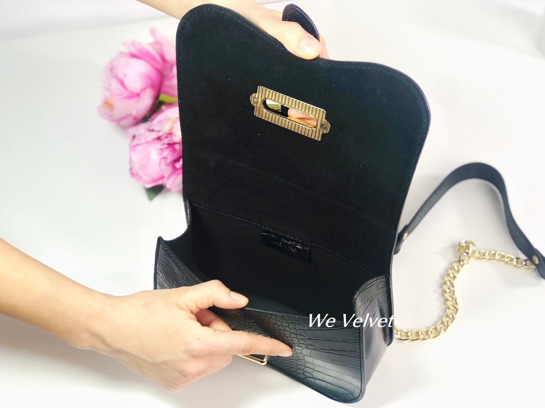 Gentuța Valentine din piele naturală este tot ce ai nevoie ca să te îndrăgostești! Imprimeul croco este super versatil iar accentele aurii, metalice sunt cele care atrag toate privirile!