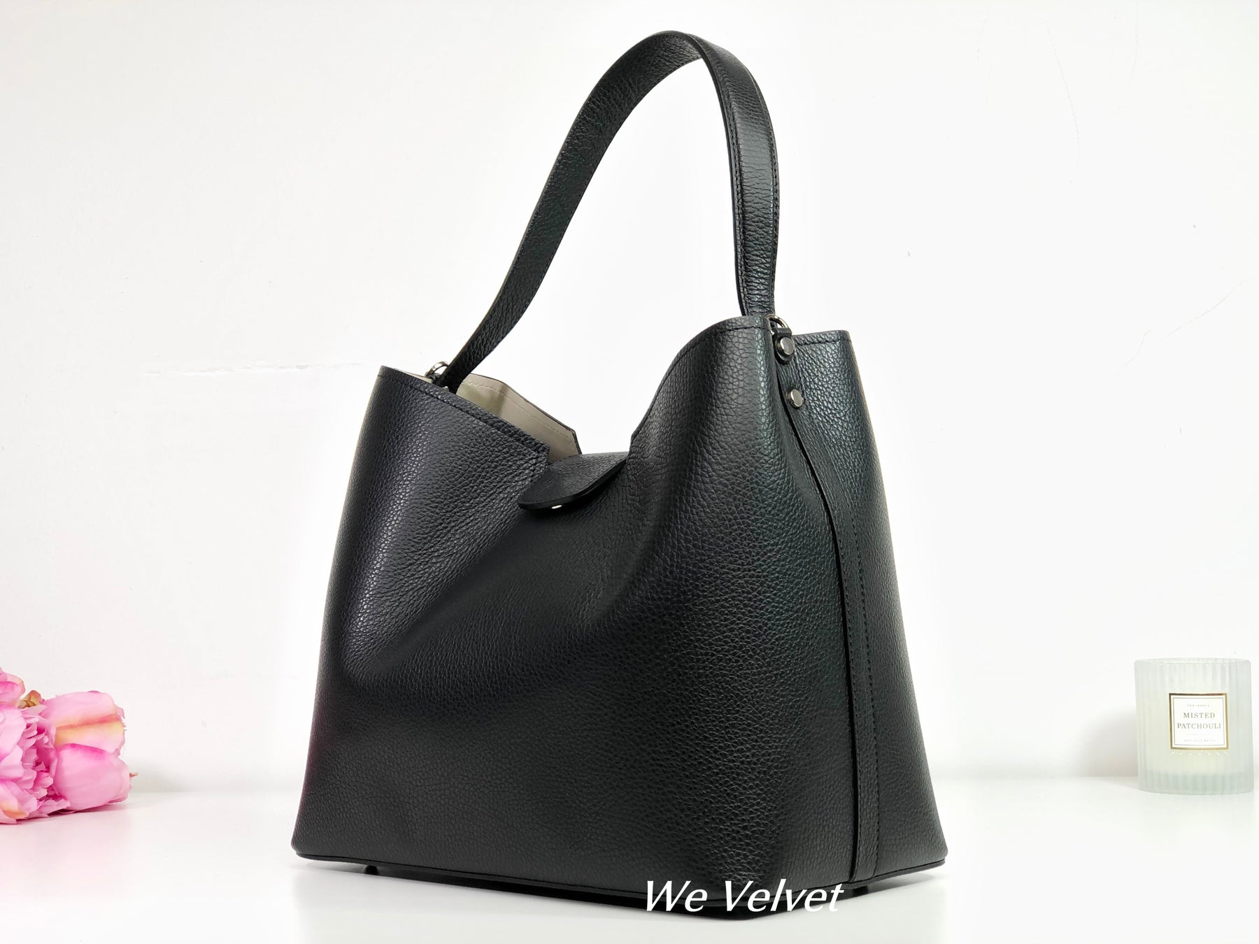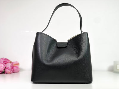Geanta din piele naturală Kuessa este acea piesă statement ce nu trebuie să lipsească din garderoba unei fashioniste. Este încăpătoare, versatilă și extrem de practică datorită dimensiunilor sale.