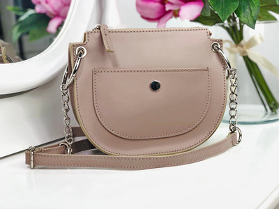 O gentuță din piele naturală clasică, feminină, decorată cu accesorii metalice argintii și cu o formă de indiviat! O poți purta oricum, oriunde! Are dimensiunile perfecte și se potrivește cu absolut orice!