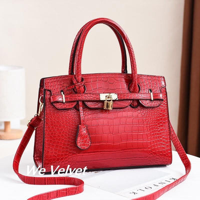 Geantă roșie piele eco cu imprimeu croco Mabel