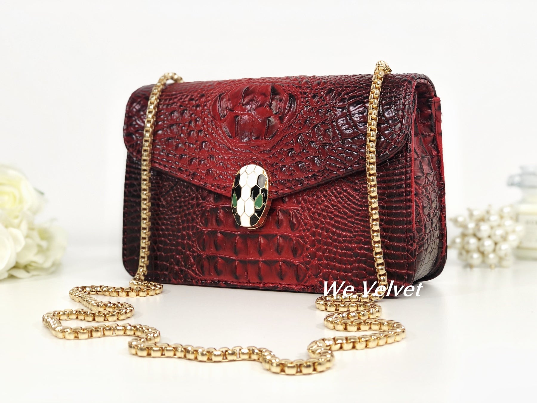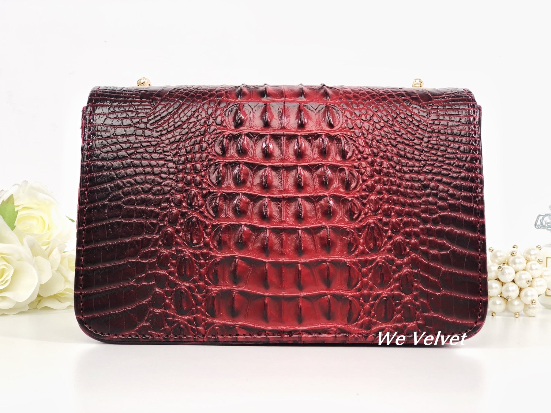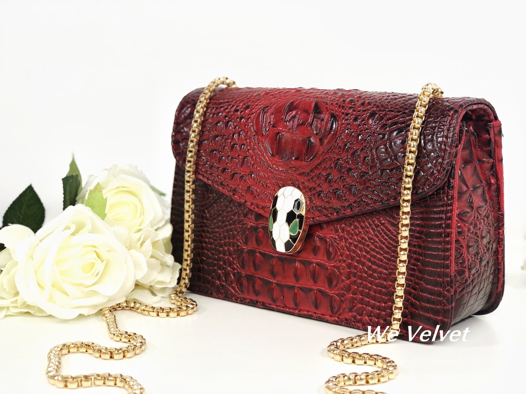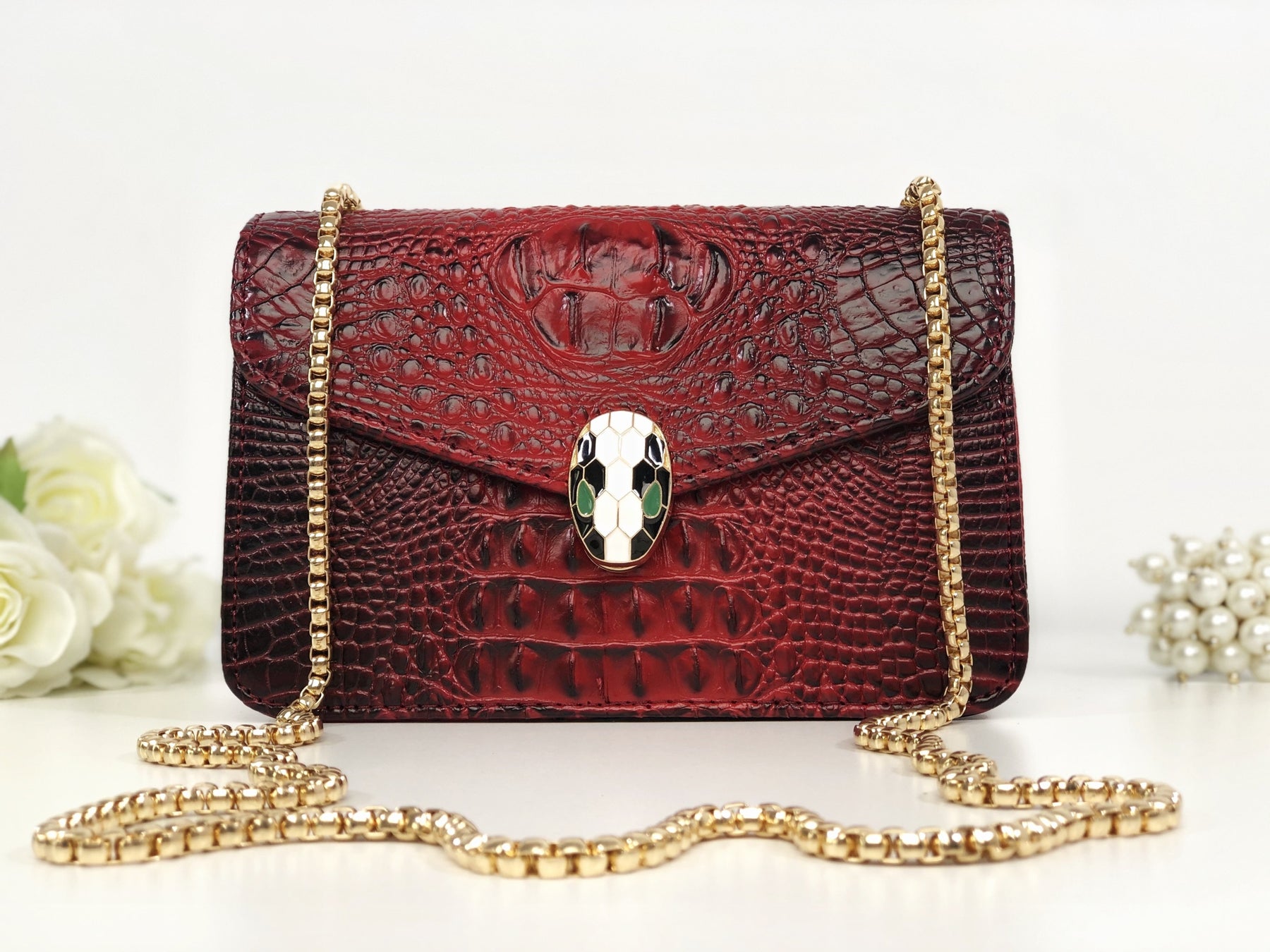 Geantă roșie piele eco cu imprimeu croco Soraya