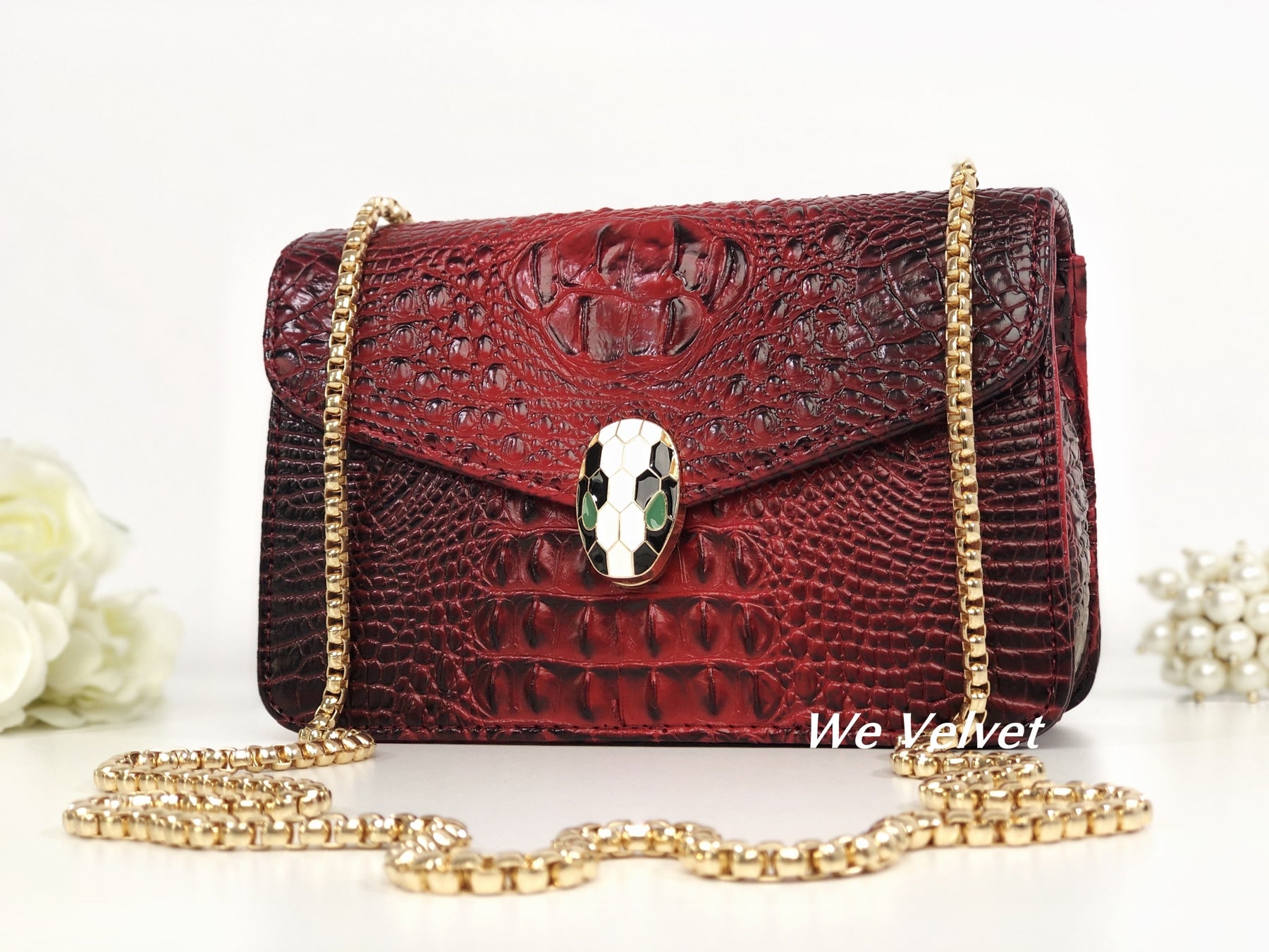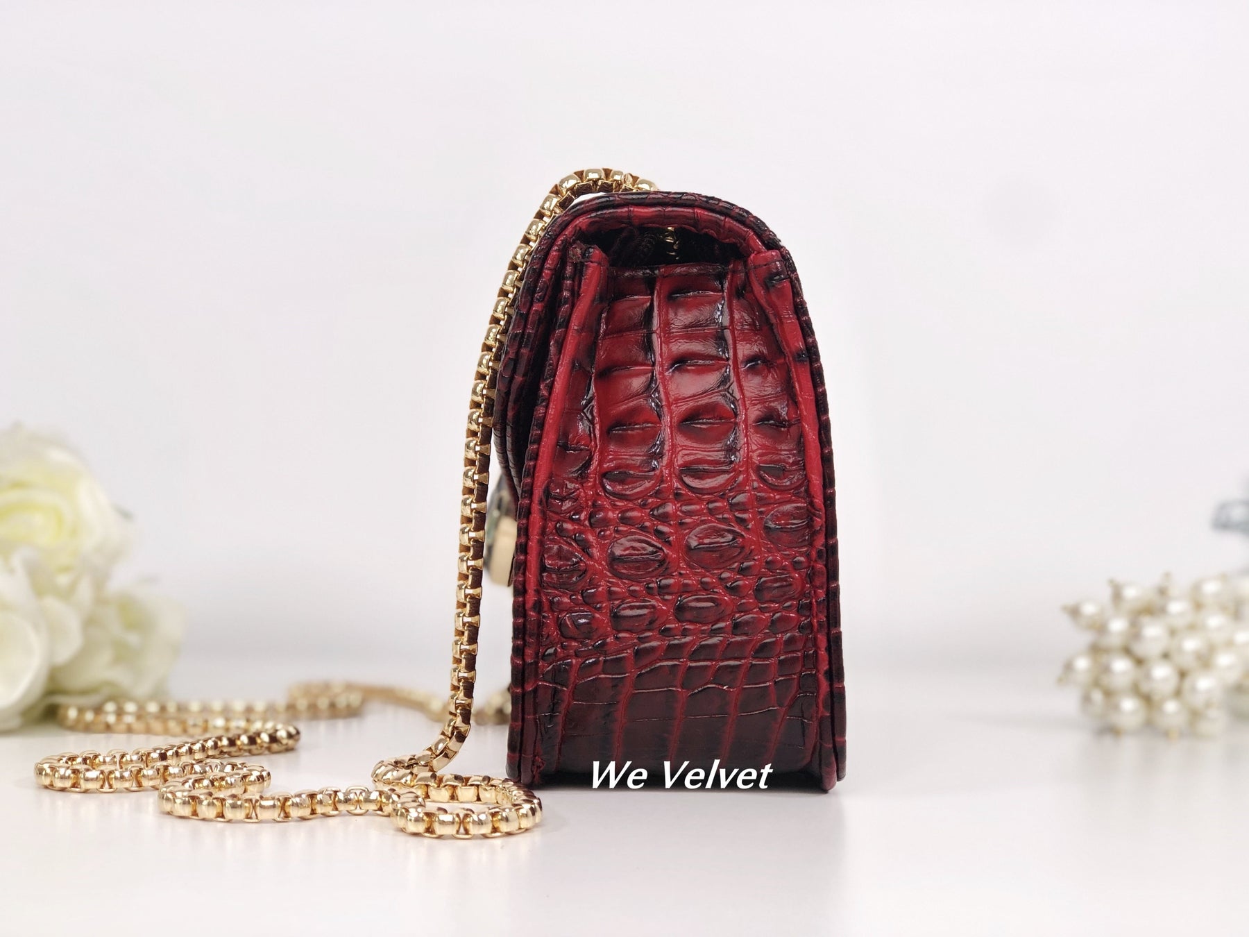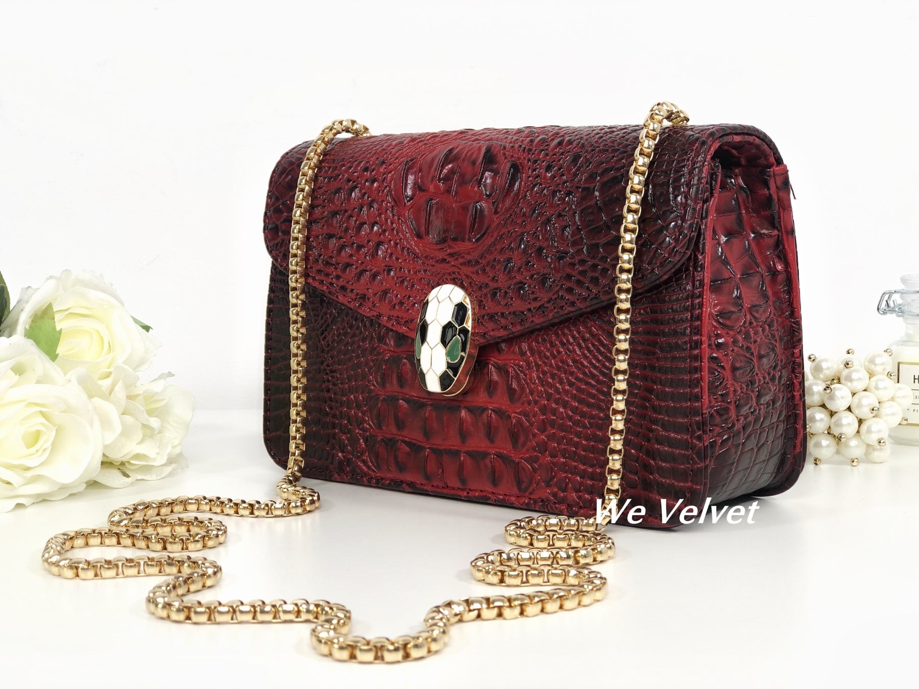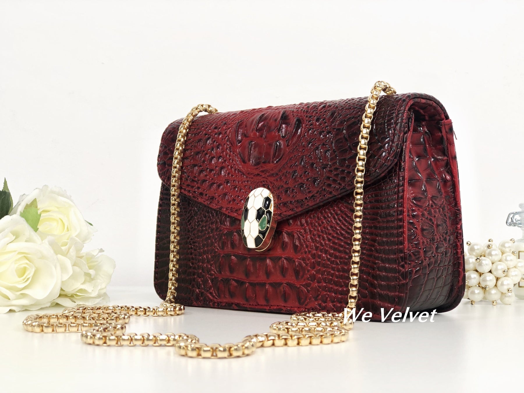 Geantă roșie piele eco cu imprimeu croco Soraya