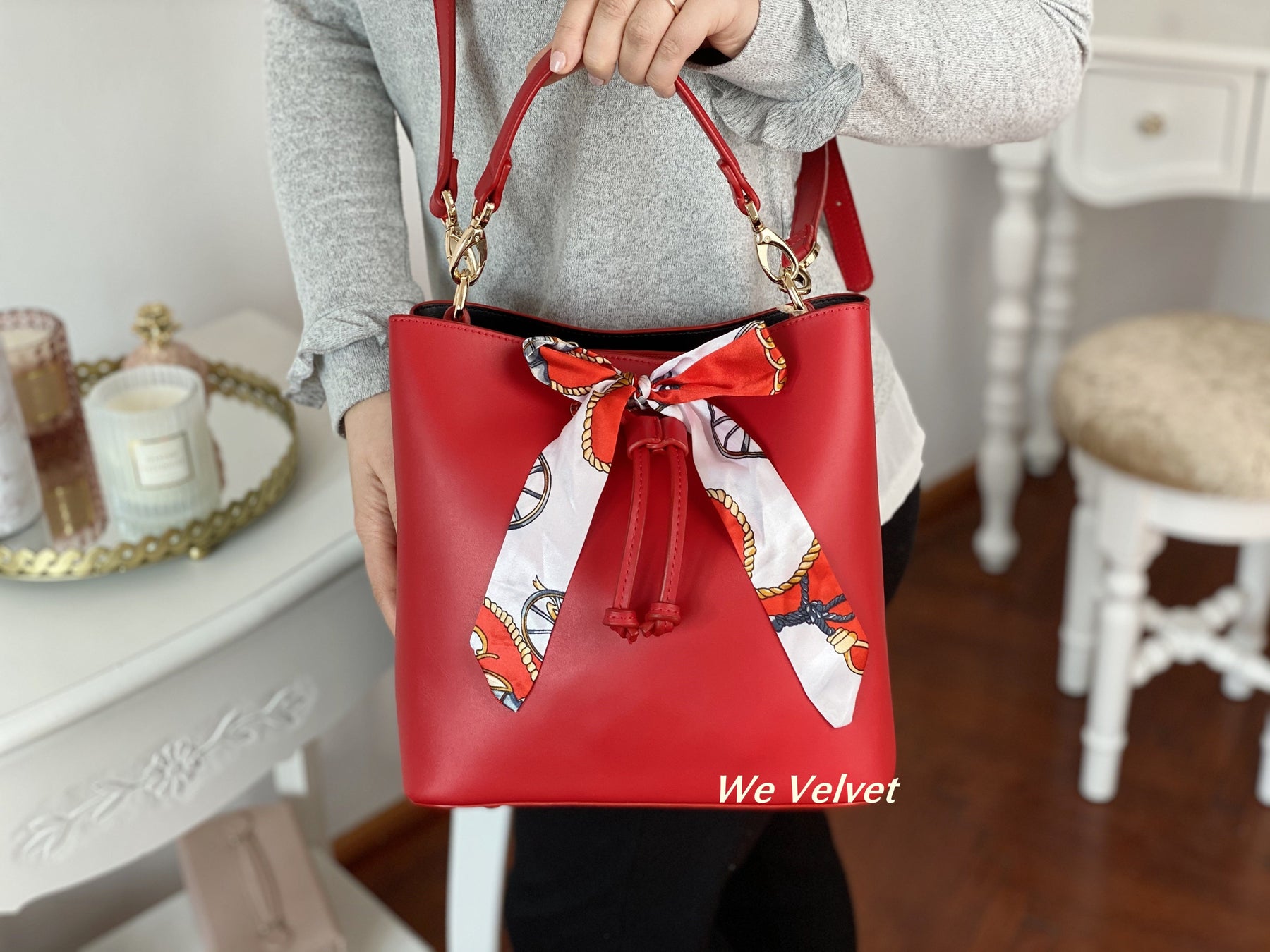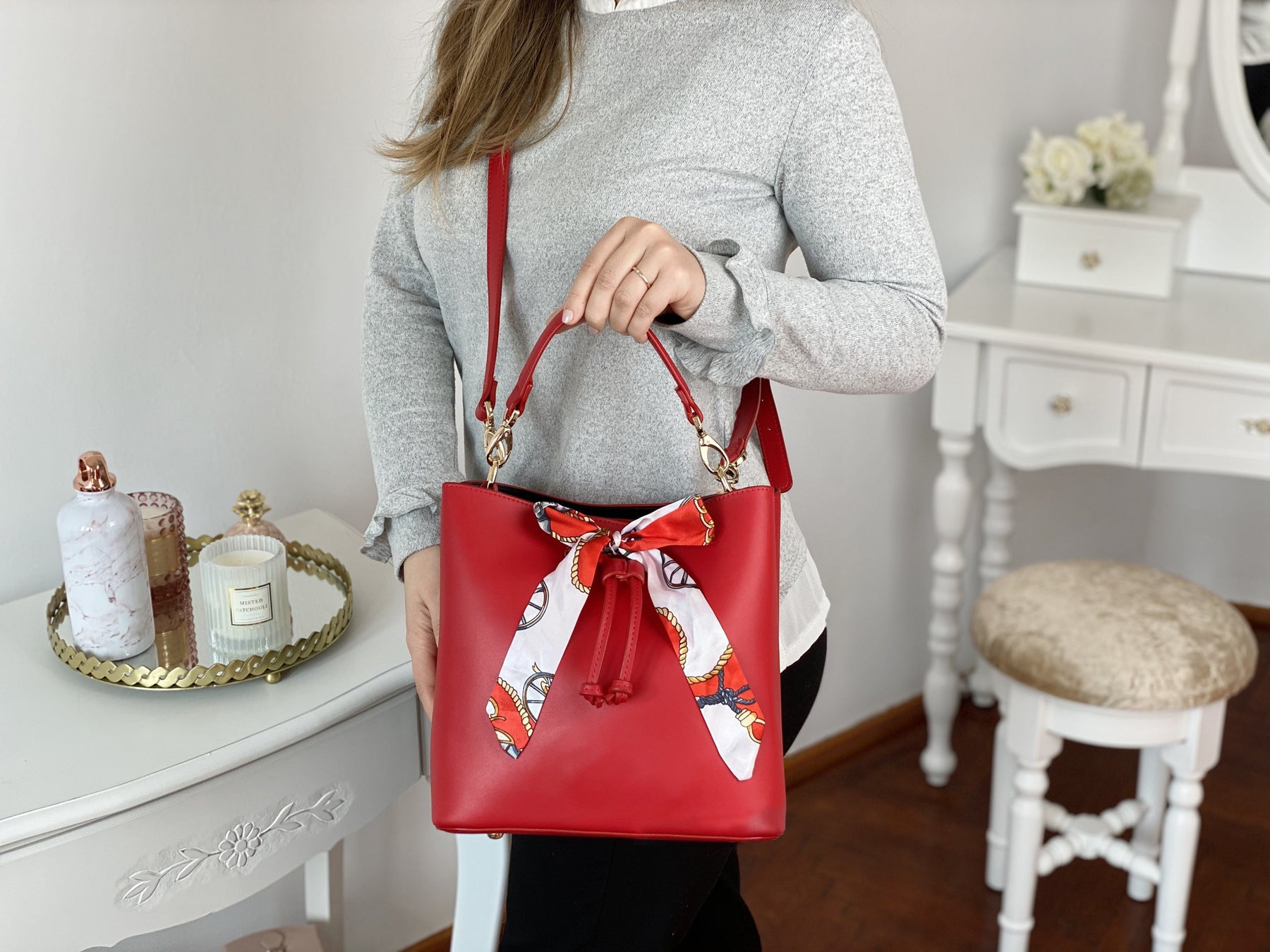 Giselle este o geantă superbă, special concepută pentru ca tu să te bucuri de toată libertarea de mișcare de care vei avea nevoie pe parcursul unei zile, și să arăti excepțional de fiecare dată. Este un model deosebit, extrem de chic și feminin, perfect atât pentru ținutele casual cât și pentru cele office. Pe partea din față dispune de o drăgălașă eșarfă pentru un plus de stil și eleganță. ♥