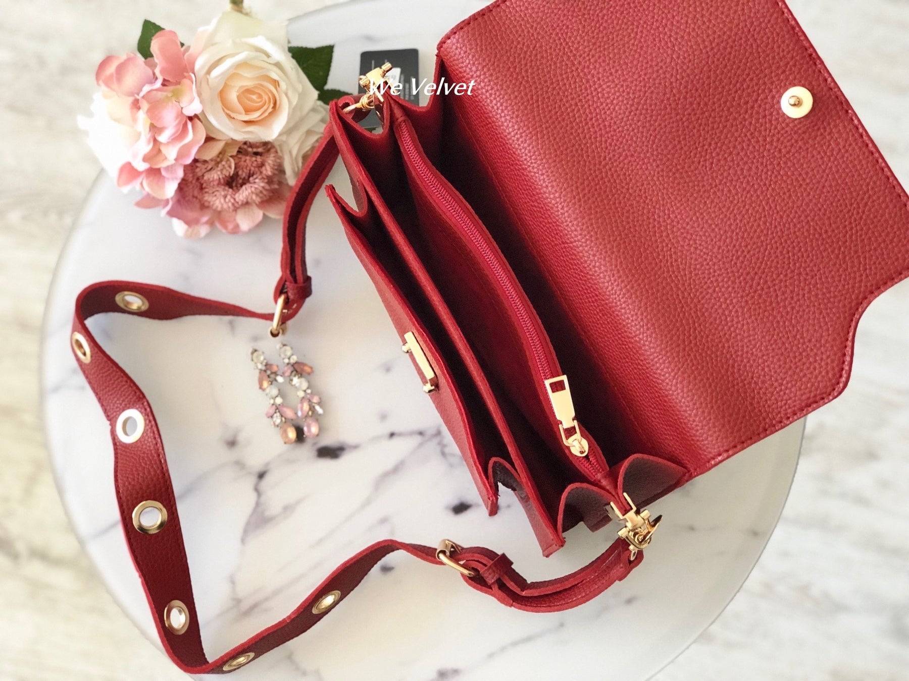 Designul său unic îmbină stilul clasic și cel contemporan pentru a crea o adevărată bijuterie. Silueta sa suplă este doar o fațadă, gentuța este foarte încăpătoare, dispunând de două compartimente spațioase și un buzunar exterior foarte mare.