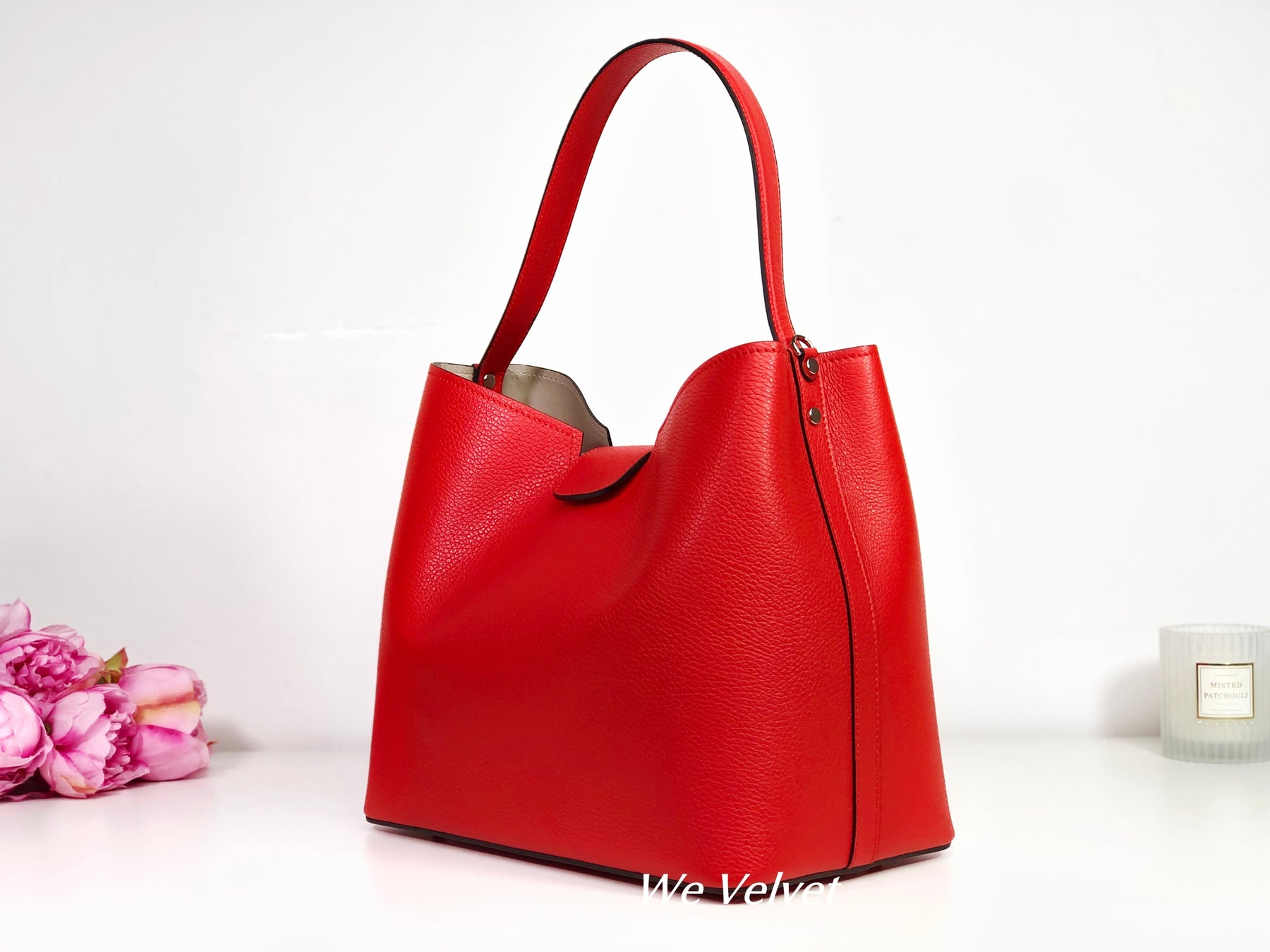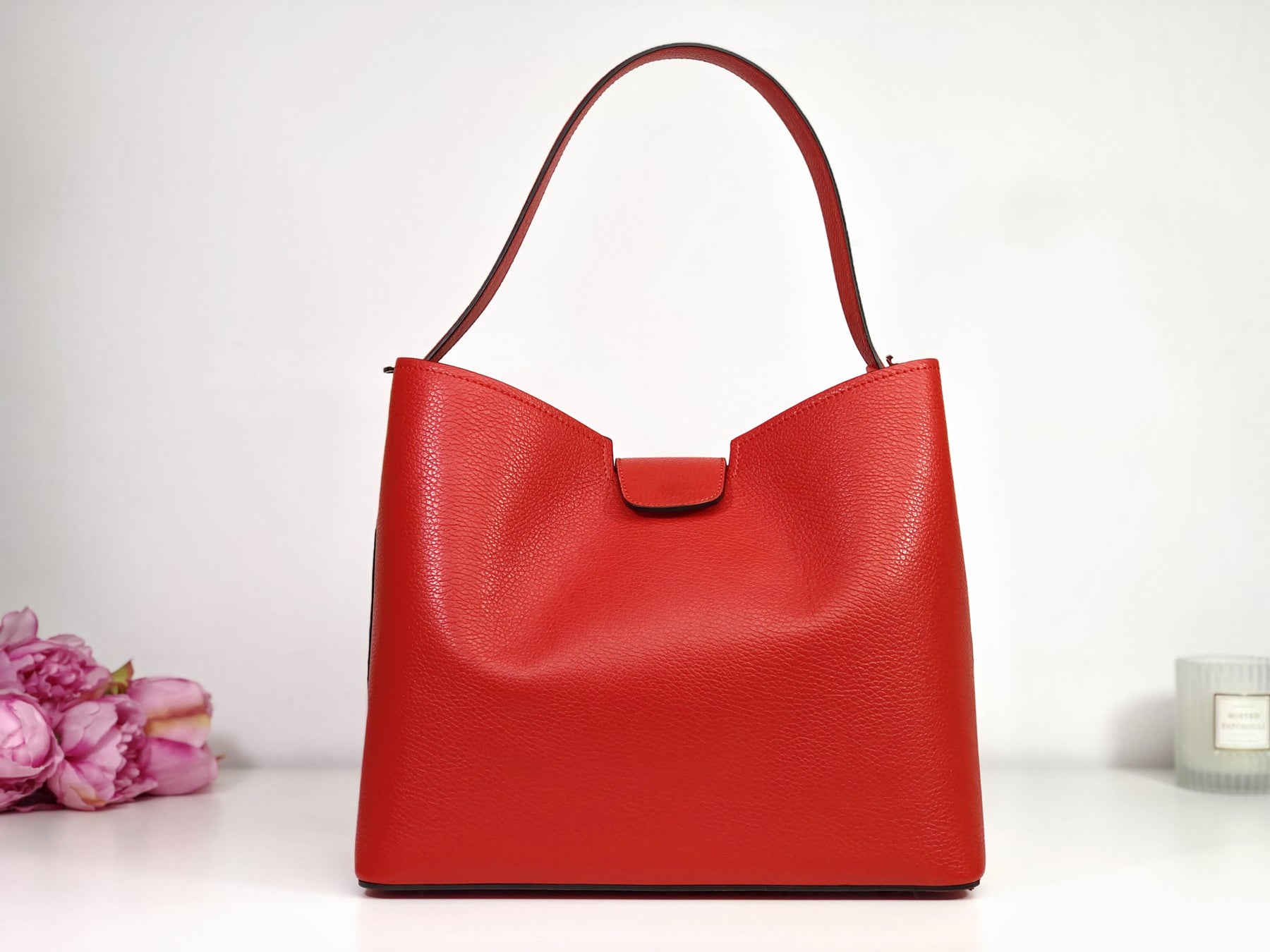 Geanta din piele naturală Kuessa este acea piesă statement ce nu trebuie să lipsească din garderoba unei fashioniste. Este încăpătoare, versatilă și extrem de practică datorită dimensiunilor sale.
