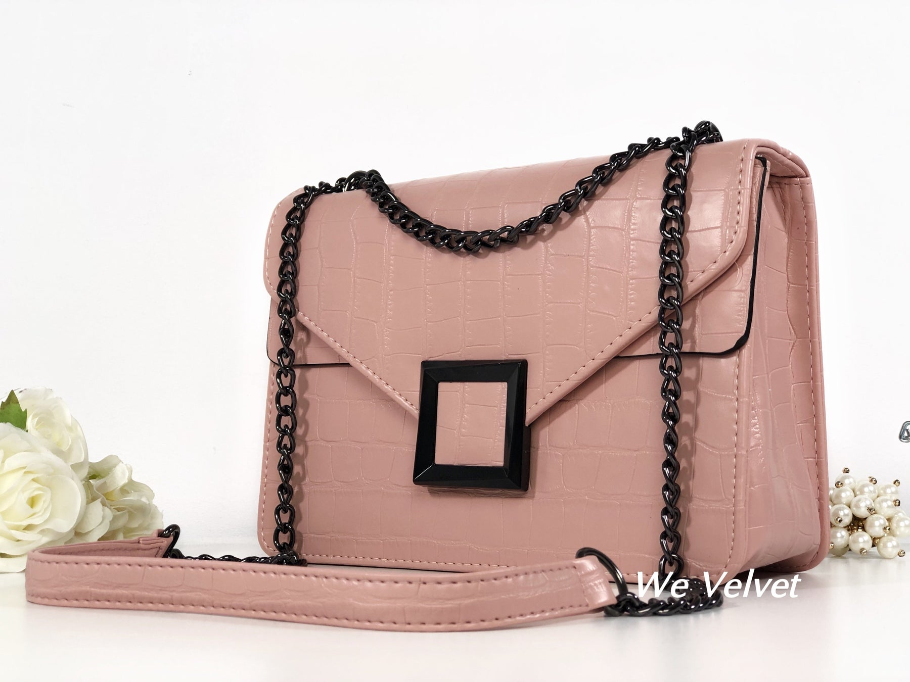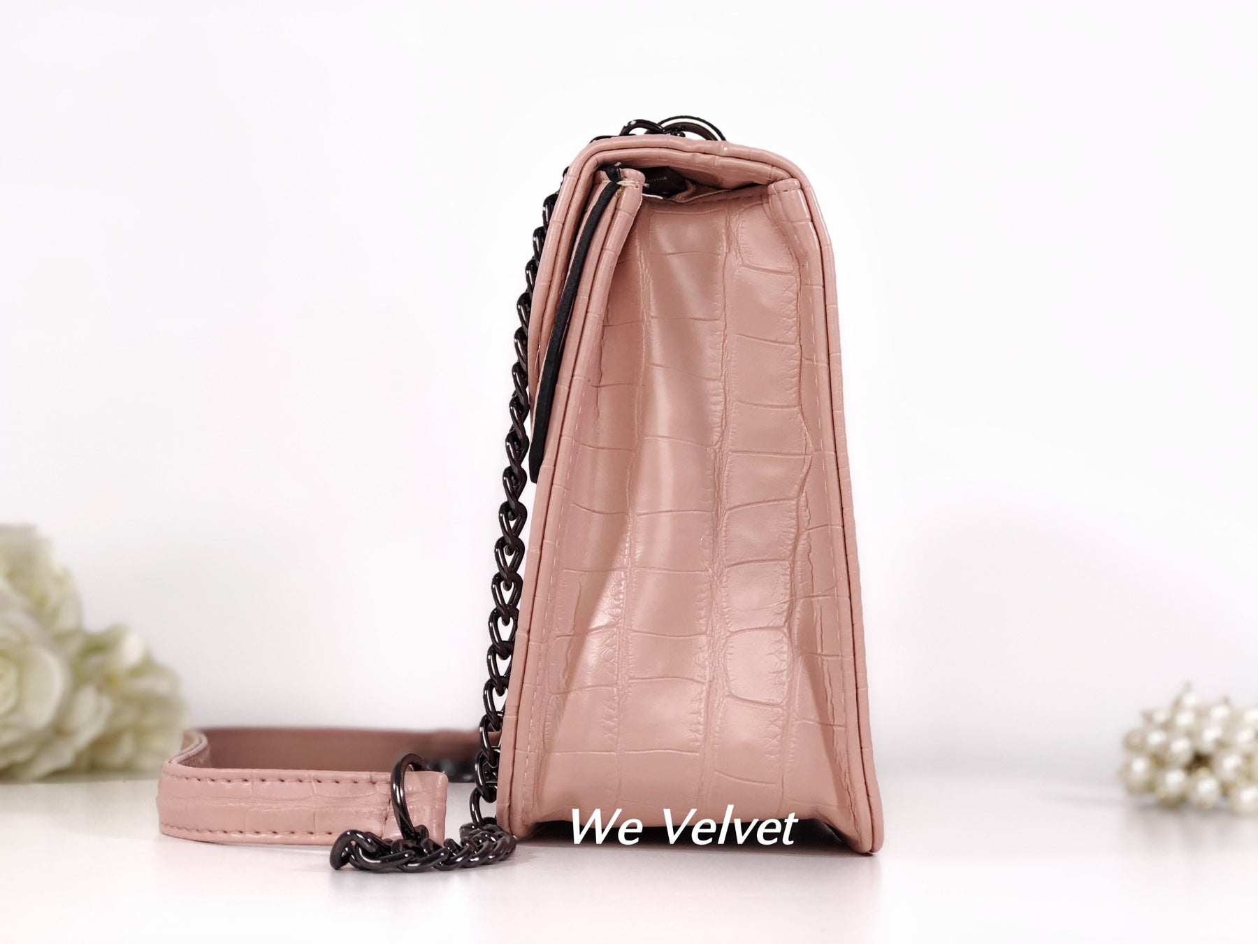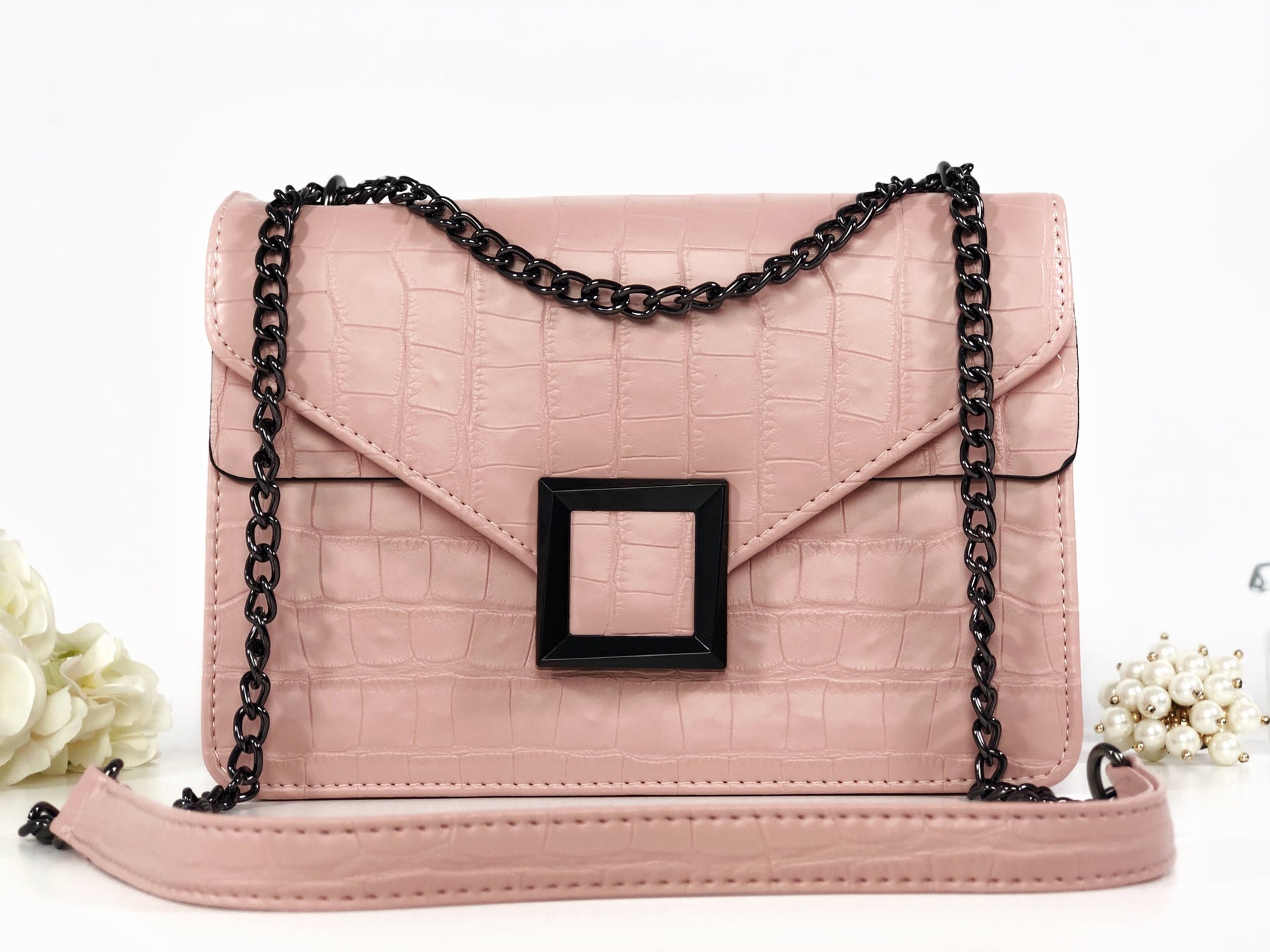 Geantă rose nude piele eco cu imprimeu croco Lina