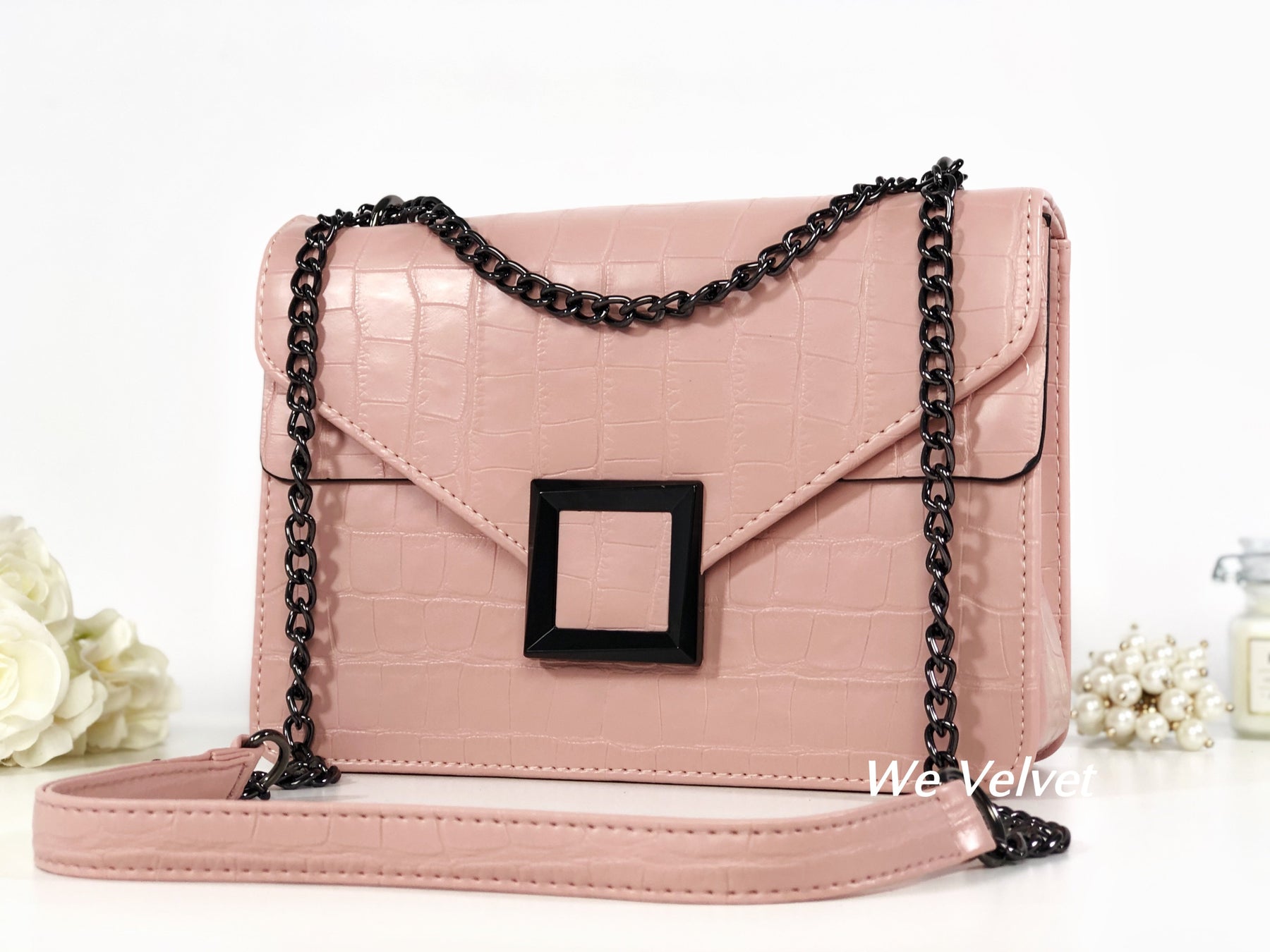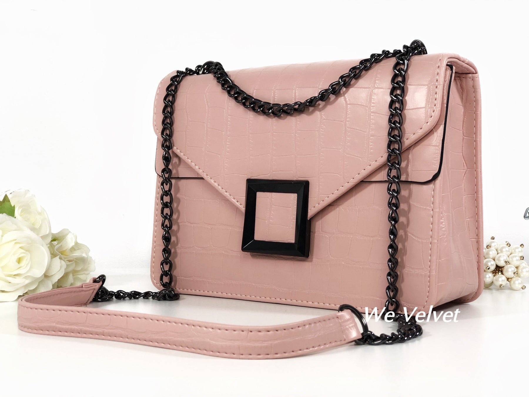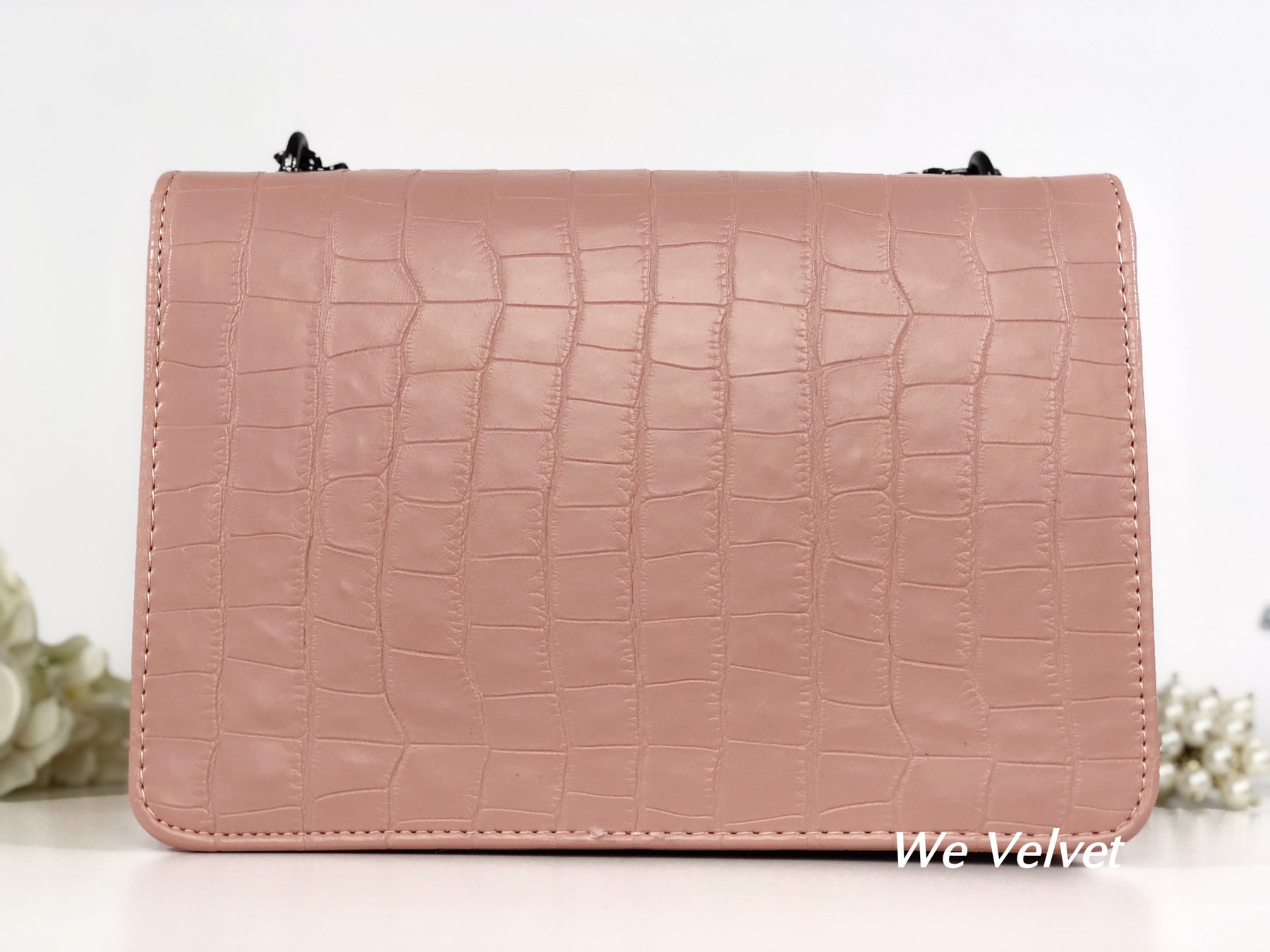 Geantă rose nude piele eco cu imprimeu croco Lina