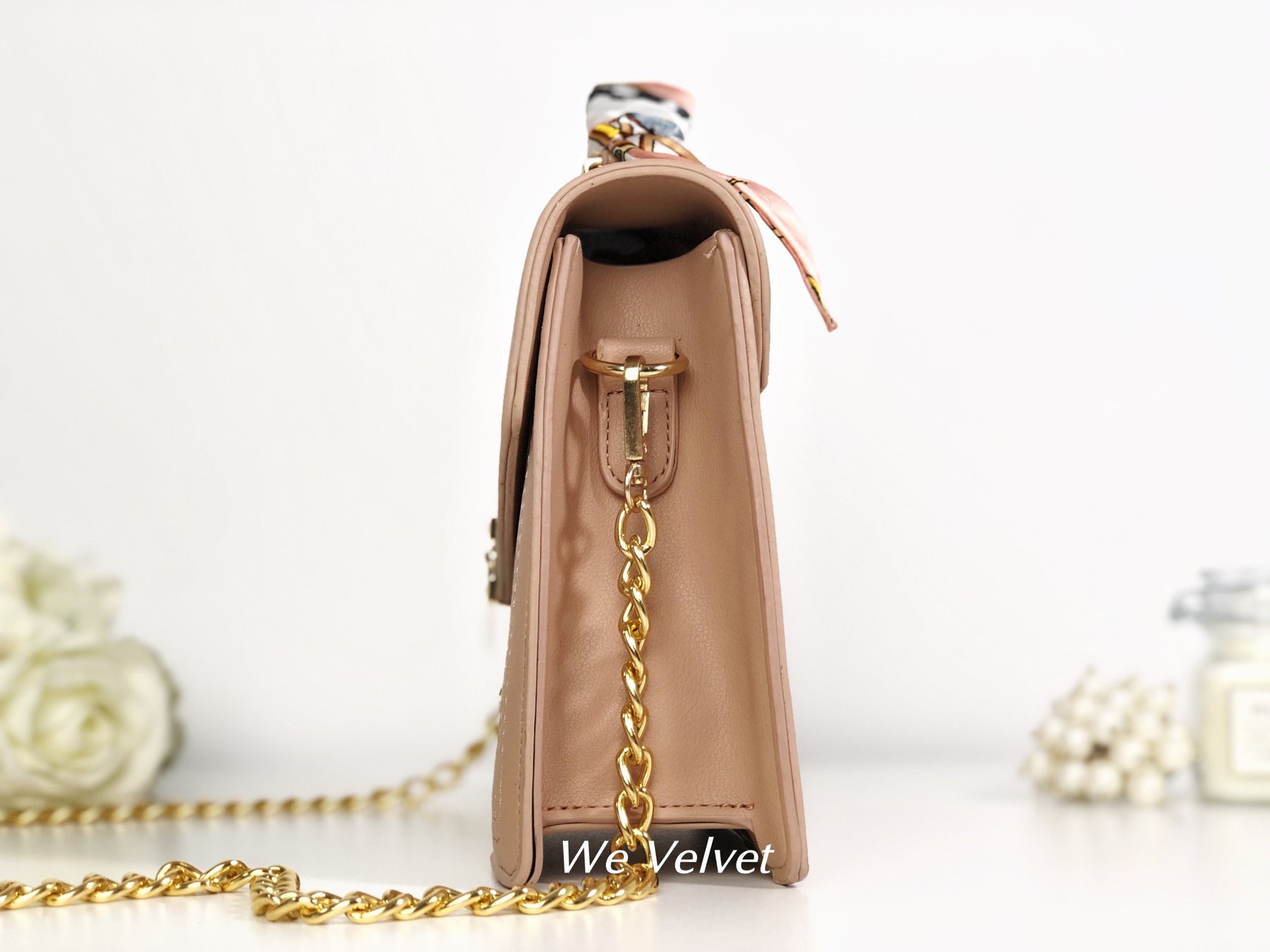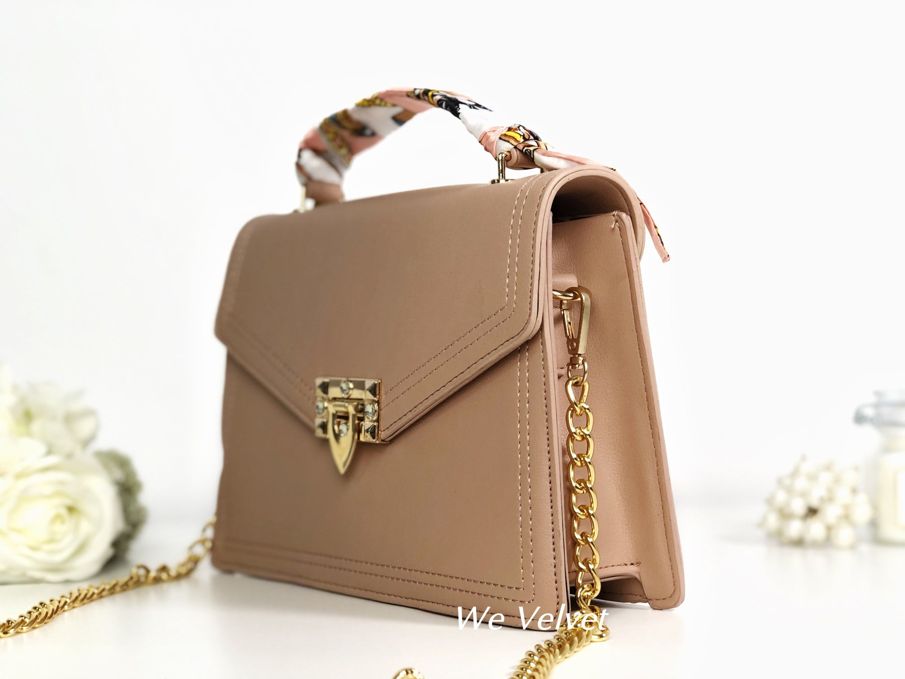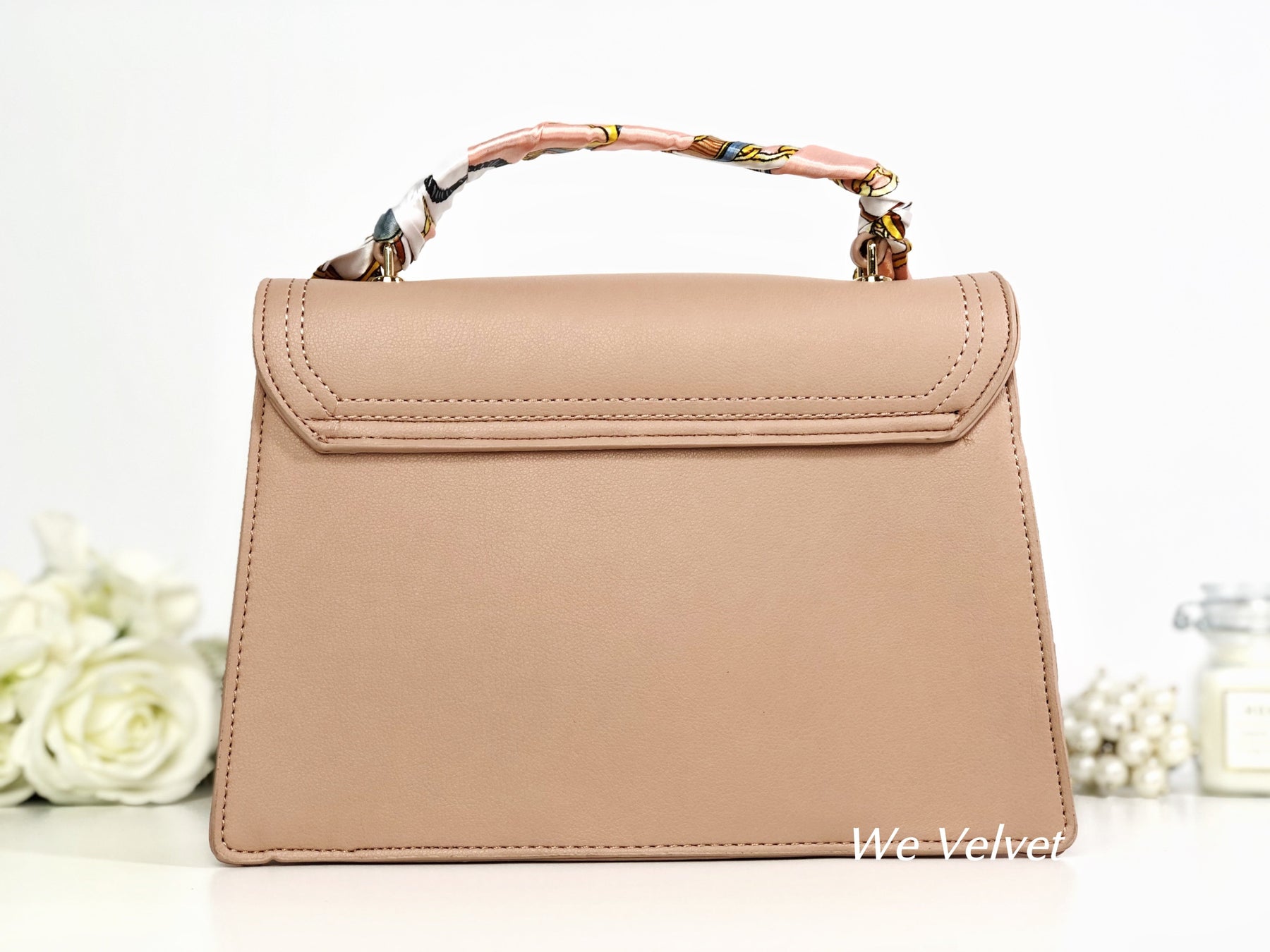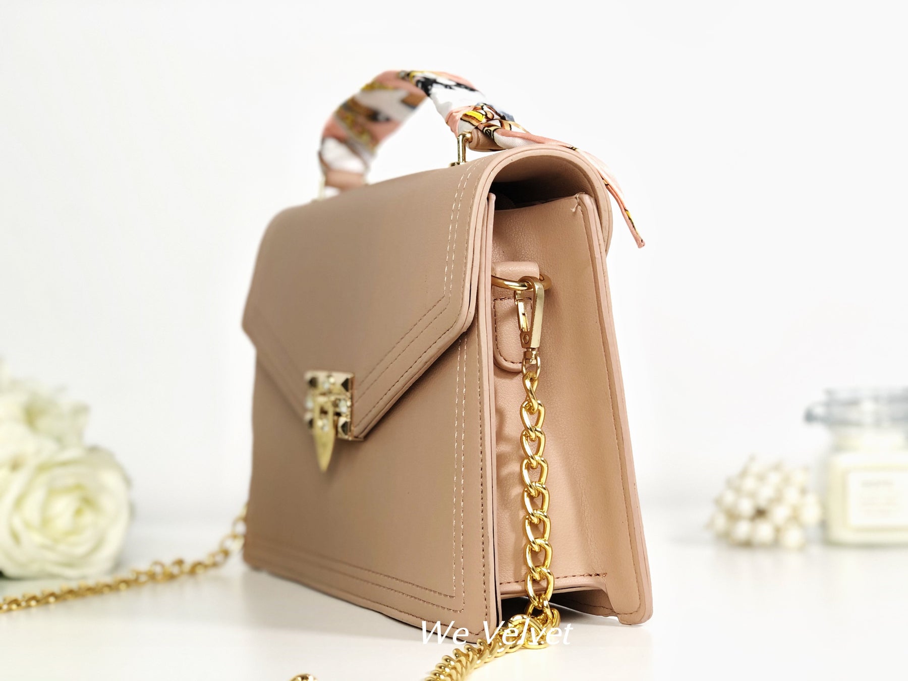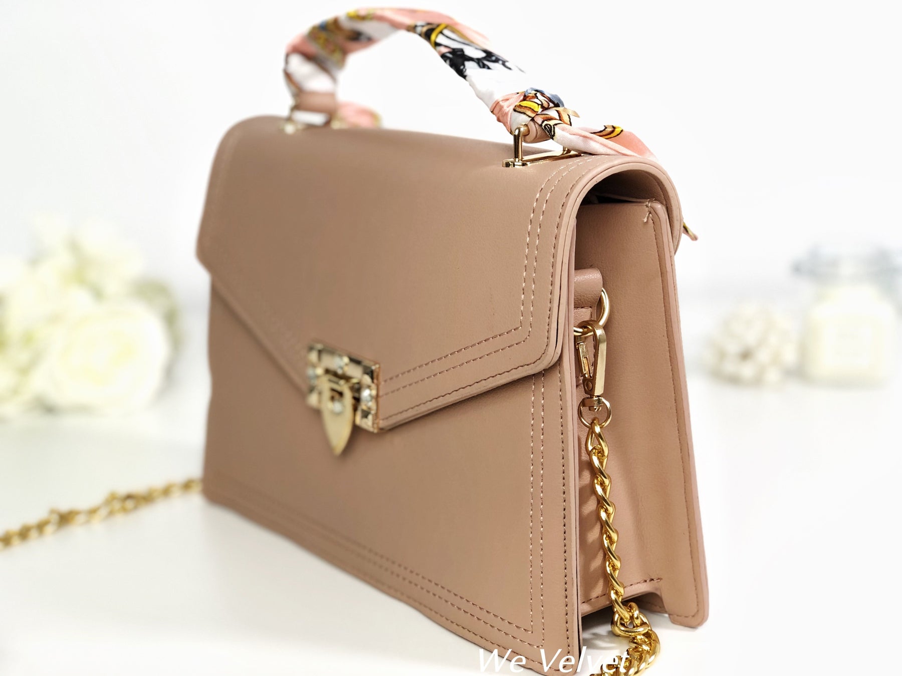 Este un model cochet, feminin și extrem de versatil. Îl poți purta atât cu ținute de tip casual cât și office, pentru un plus de stil și eleganță. Mânerul este decorat cu o superbă eșarfă ce îi oferă un look aparte, iar tu vei arăta demențial!