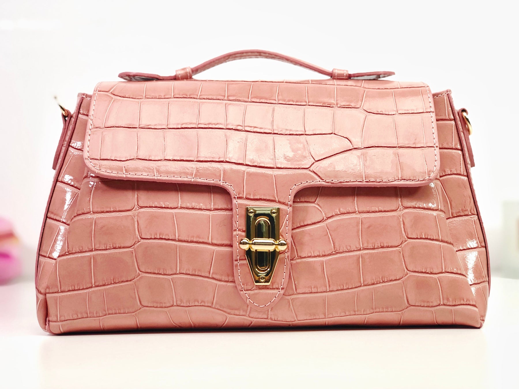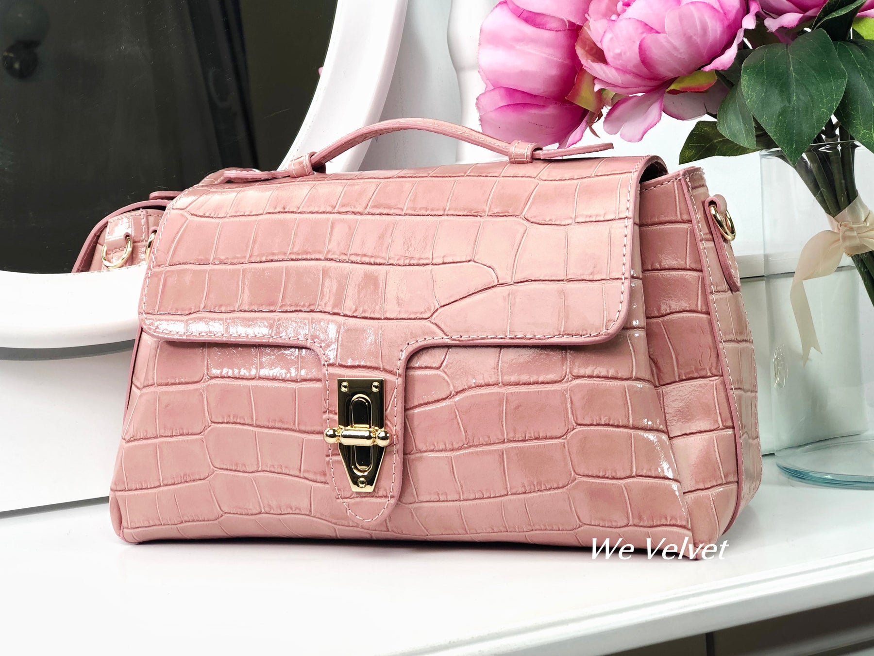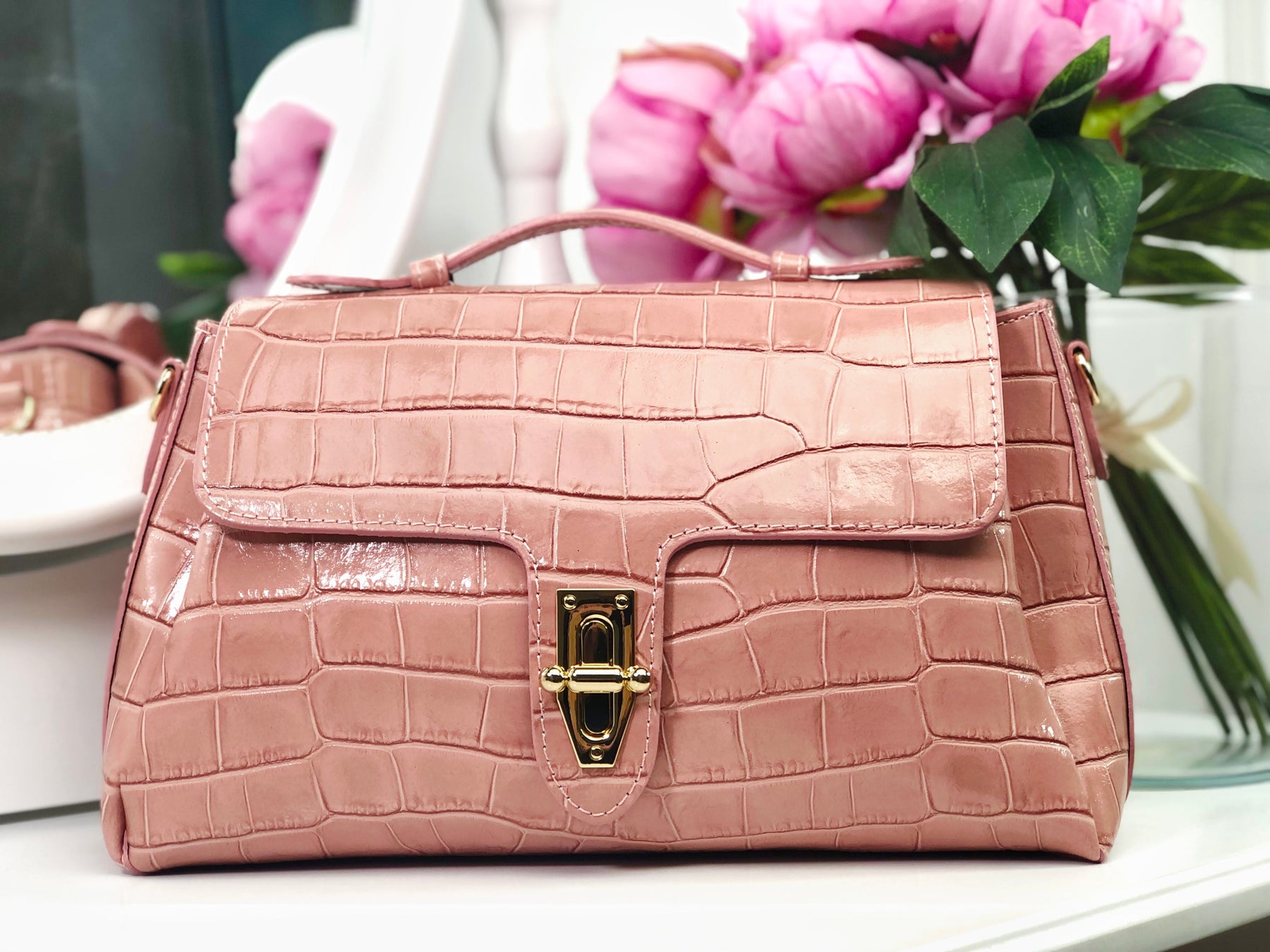 Geantă rose piele naturală cu imprimeu croco Enigma