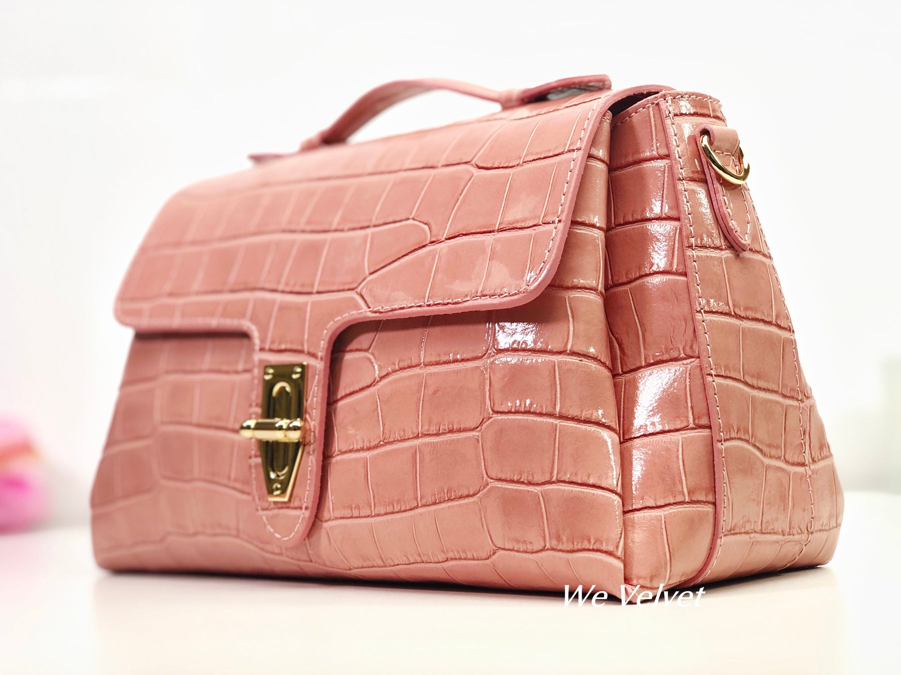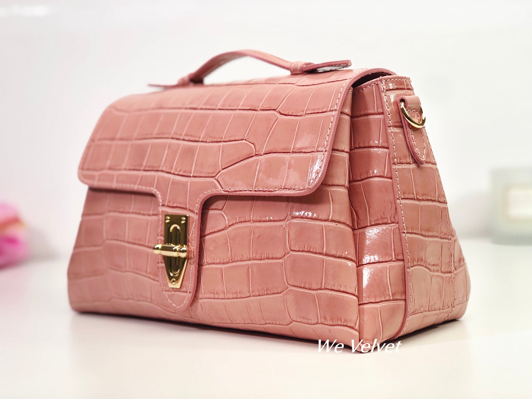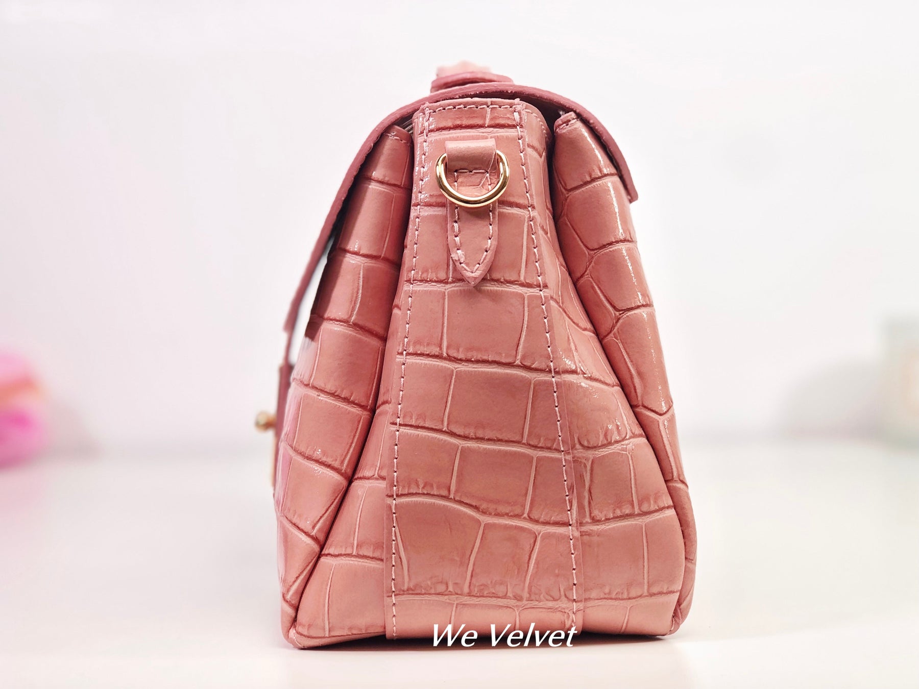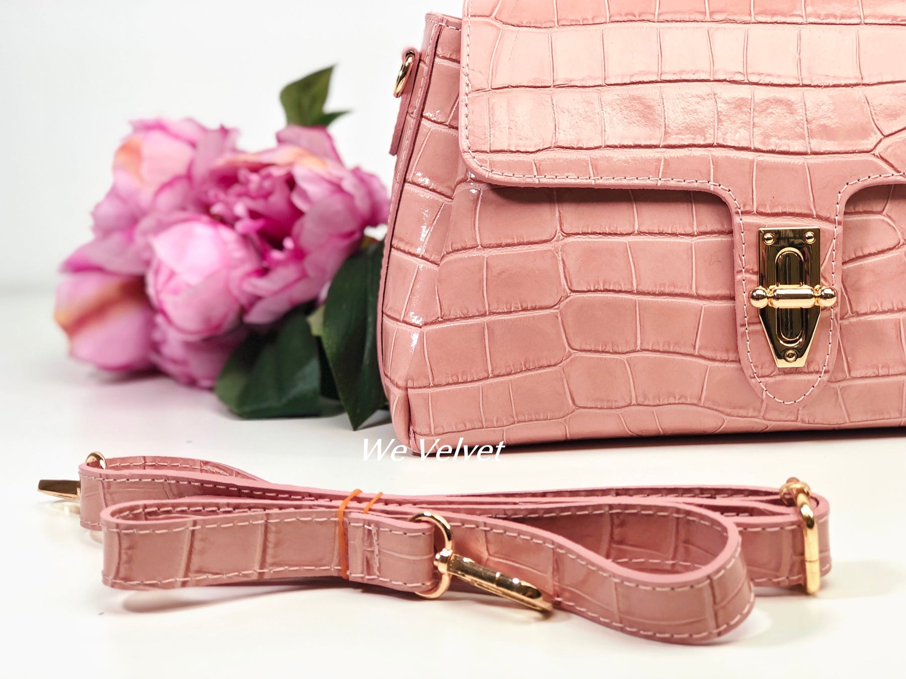 Geantă rose piele naturală cu imprimeu croco Enigma