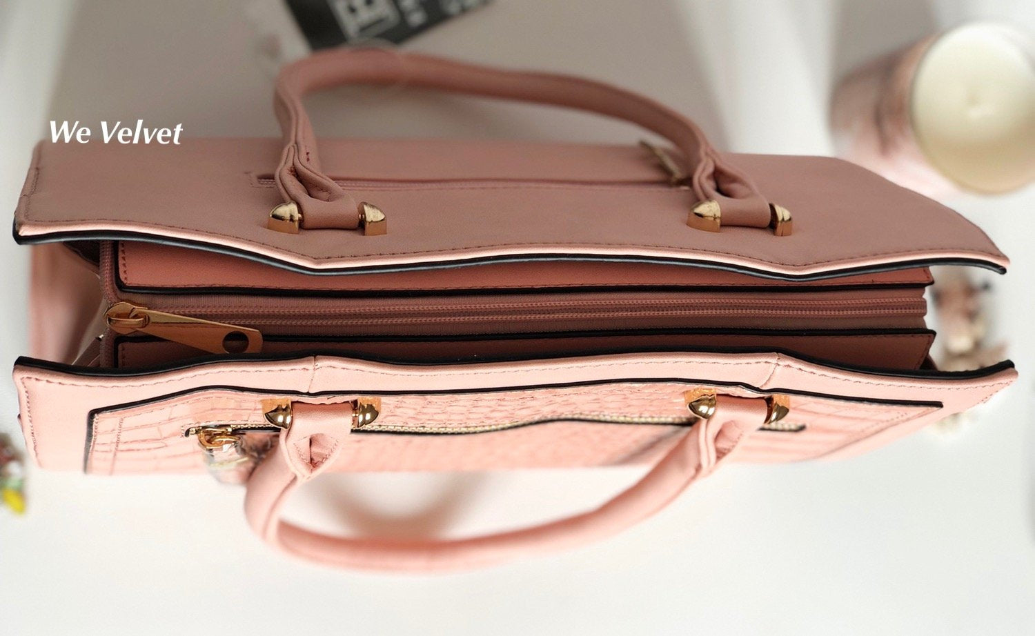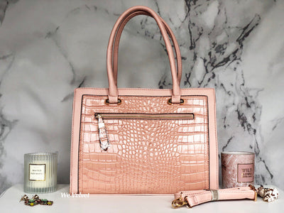 Cine a spus că ținutele office trebuie să fie monotone? Adu-ți lookul la un alt nivel cu superba geantă Camille! Un design clasic, dar care reușește să uimească prin eleganța și versatilitatea sa. Pentru a adăuga un plus de extravaganță, aceasta dispune de un înveliș lăcuit pe partea din față, care va atrage cu siguranță toate privirile!