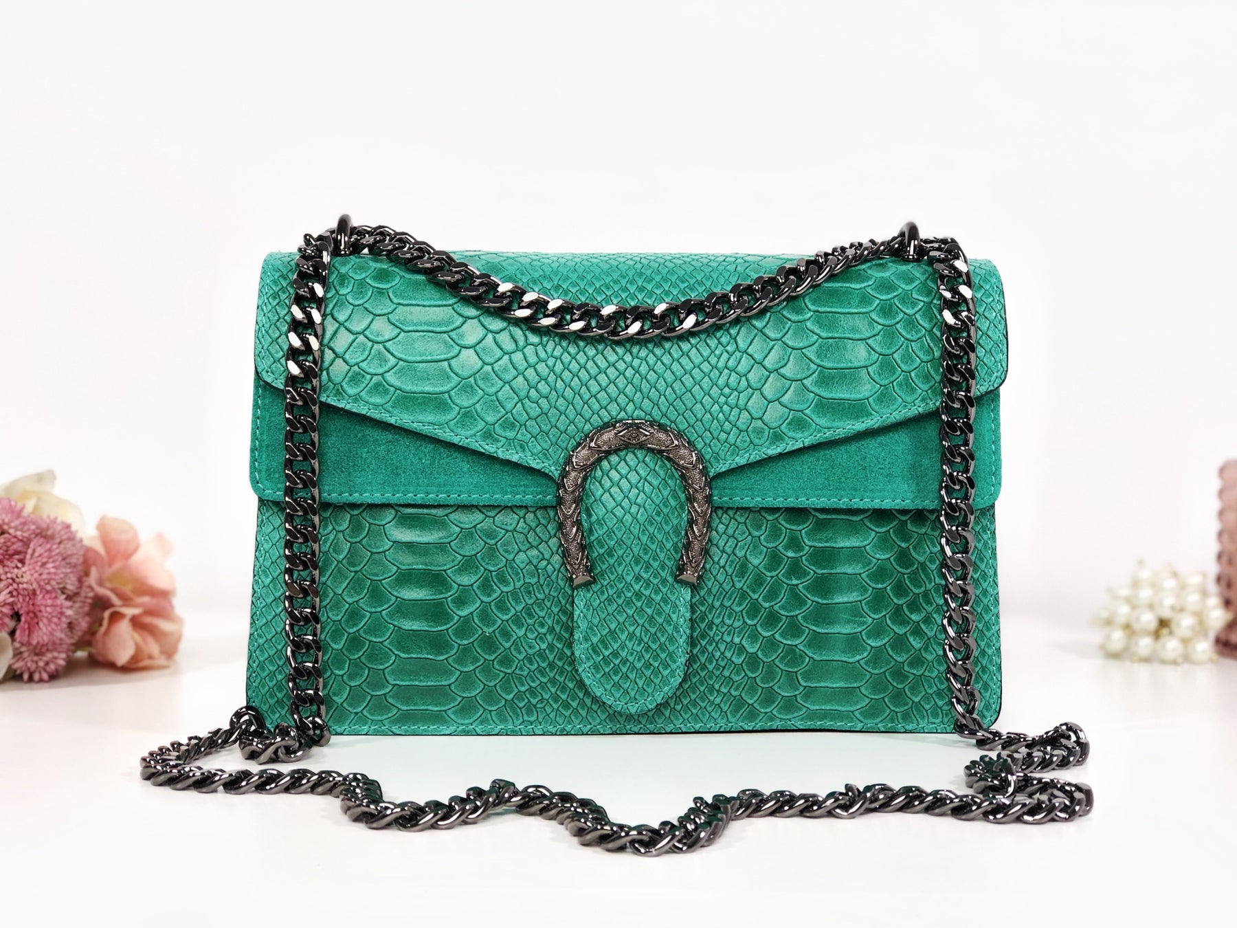 Tu ţi-ai ales deja geanta perfectă pentru vară? Dacă nu, noi venim cu cea mai bună sugestie: geanta Antheia din piele naturală tip piton și piele întoarsă. Acesta este un accesoriu de care orice femeie are nevoie în garderoba sa, deoarece te va ajuta să îţi redefineşti stilul! Antheia este o geantă inedită, cu un design cochet și feminin, perfectă pentru orice tip de ținută. Nu faci rabat de la calitate, şi nici de la bun gust!