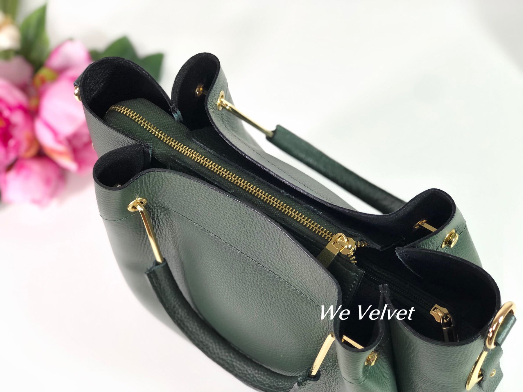 • Geanta se închide cu ajutorul unui fermoar, poziţionat în partea de sus.
