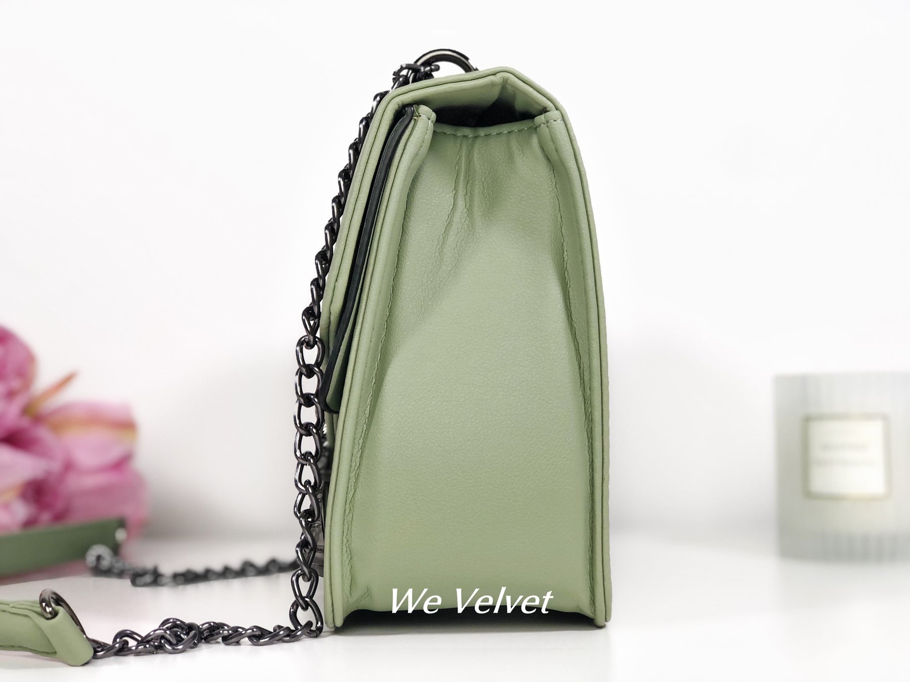 Geanta este confecționată din piele eco foarte plăcută la atingere, iar pe partea din fată dispune de un accesoriu auriu inedit.