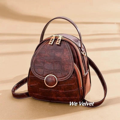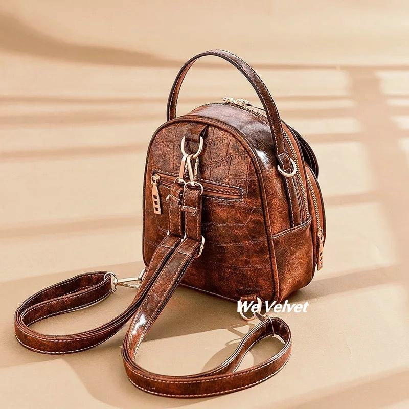 Mini rucsac maro închis piele eco cu imprimeu croco Betty
