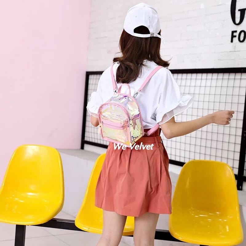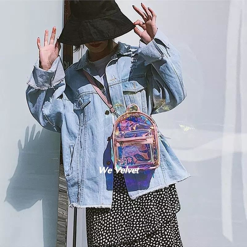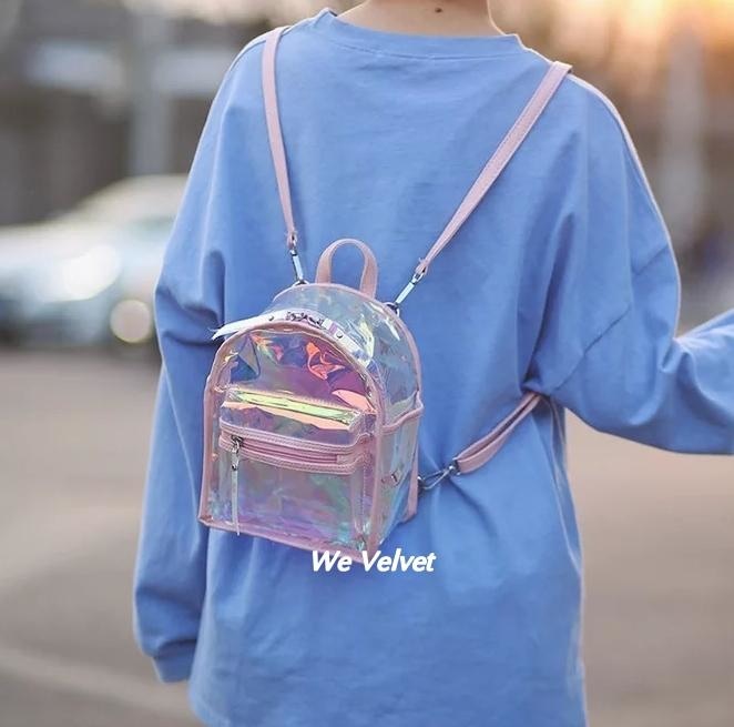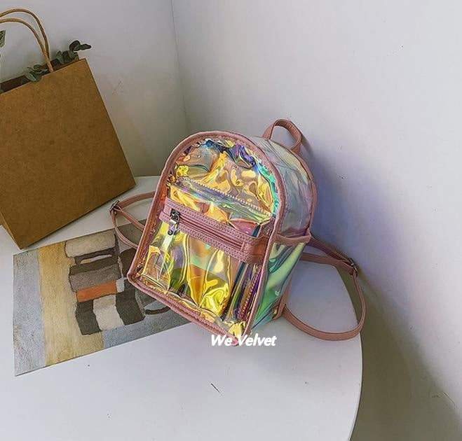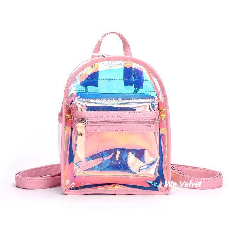 Mini rucsac roz piele eco semi-transparentă cu efect holografic Supernova
