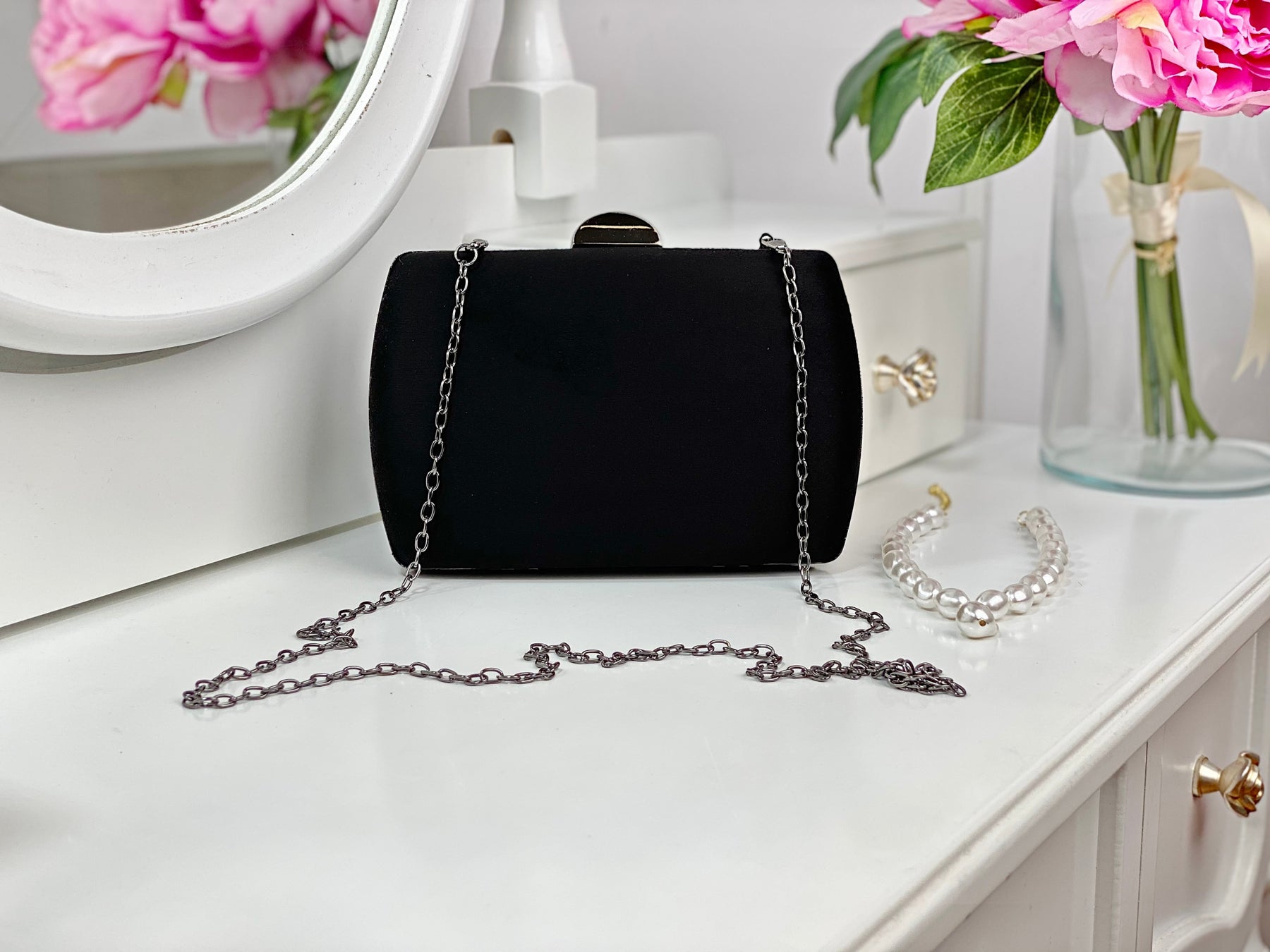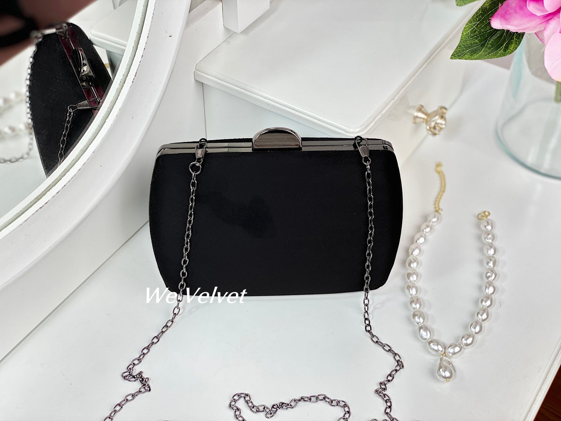 Geanta tip clutch Velvetina este cel mai stylish accesoriu pentru orice evenimet special. Învelită într-un strat catifelat de velur și acompaniată de accesorii metalice argintii, va scoate în evidență chiar și cele mai simple ținute.