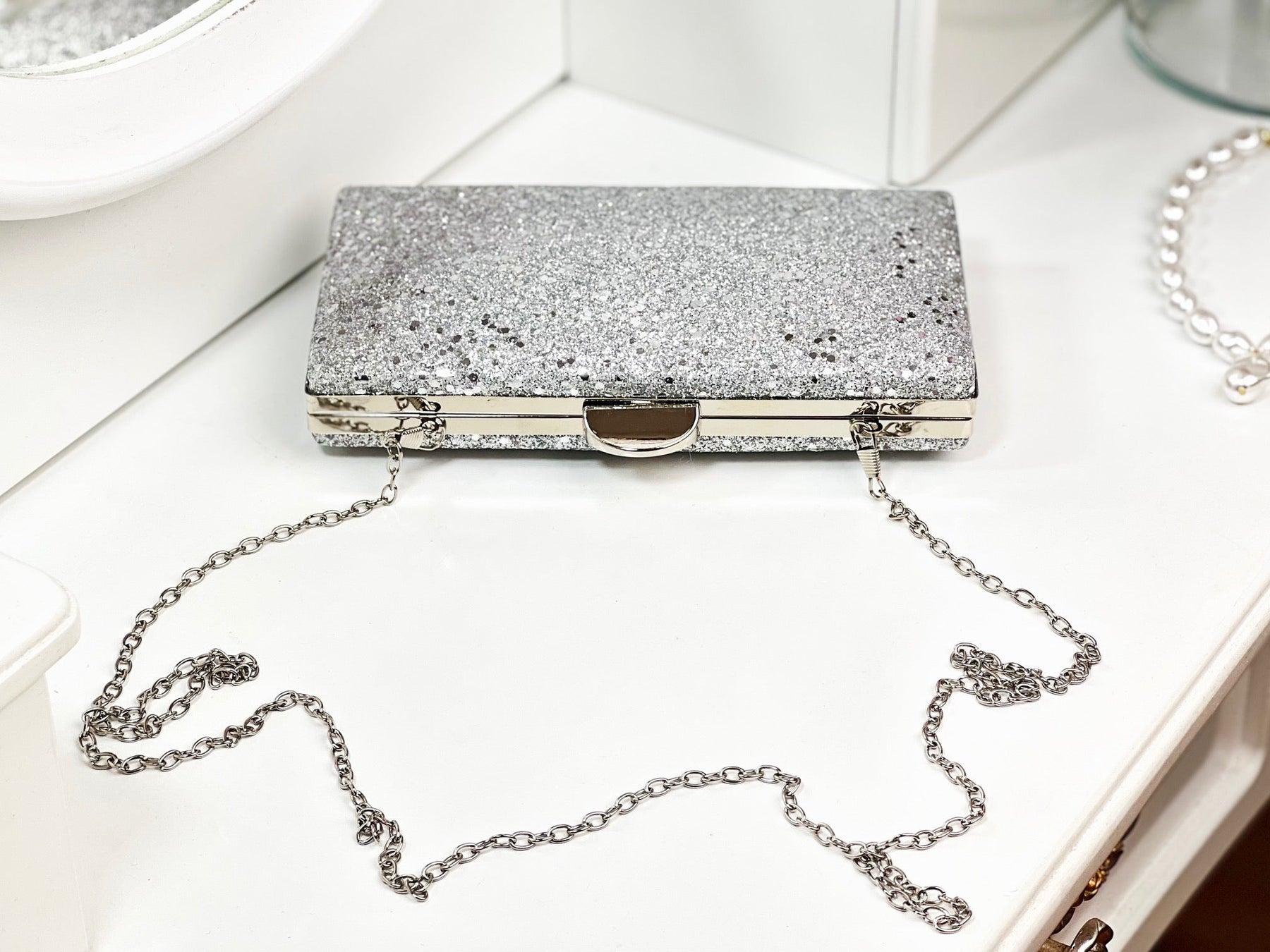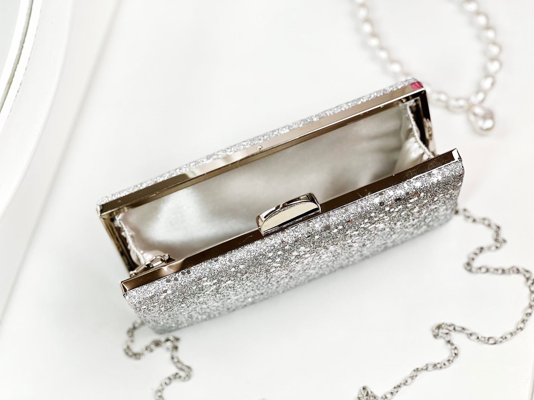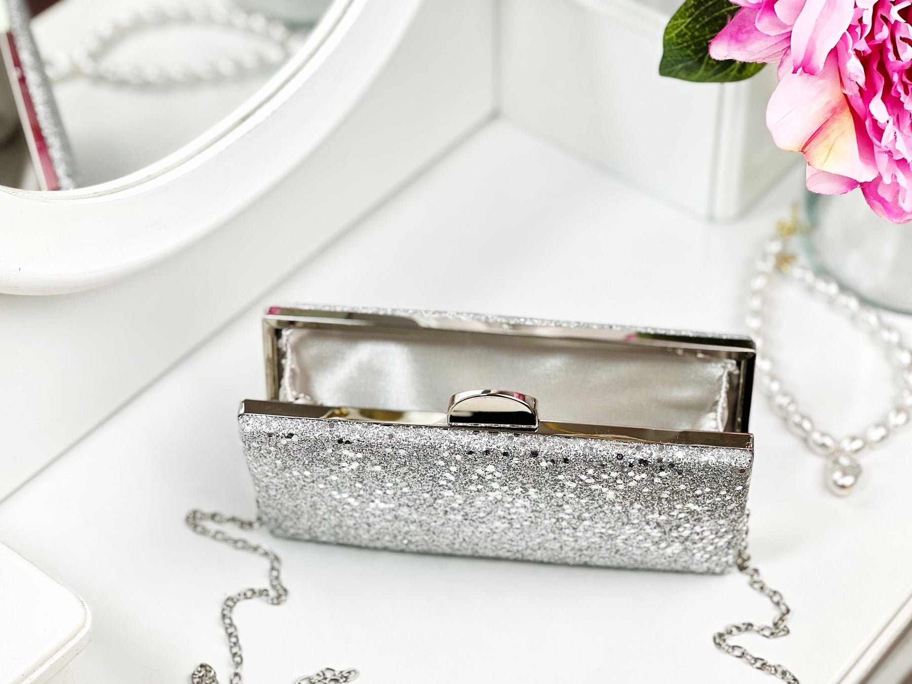 Evenimente de neuitat cu ajutorul super gentuțelor tip clutch! Îl poți purta în mână sau pe umăr cu ajutorul lănțișorului argintiu, oferind întregii ținute un aer classy, super elegant!