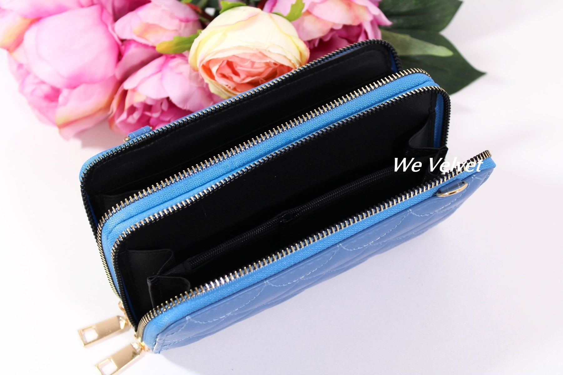 • Dispune de 4 compartimente mari pentru bancnote, 2 compartimente pentru documente, 8 compartimente pentru carduri și un buzunar cu fermoar pentru monede