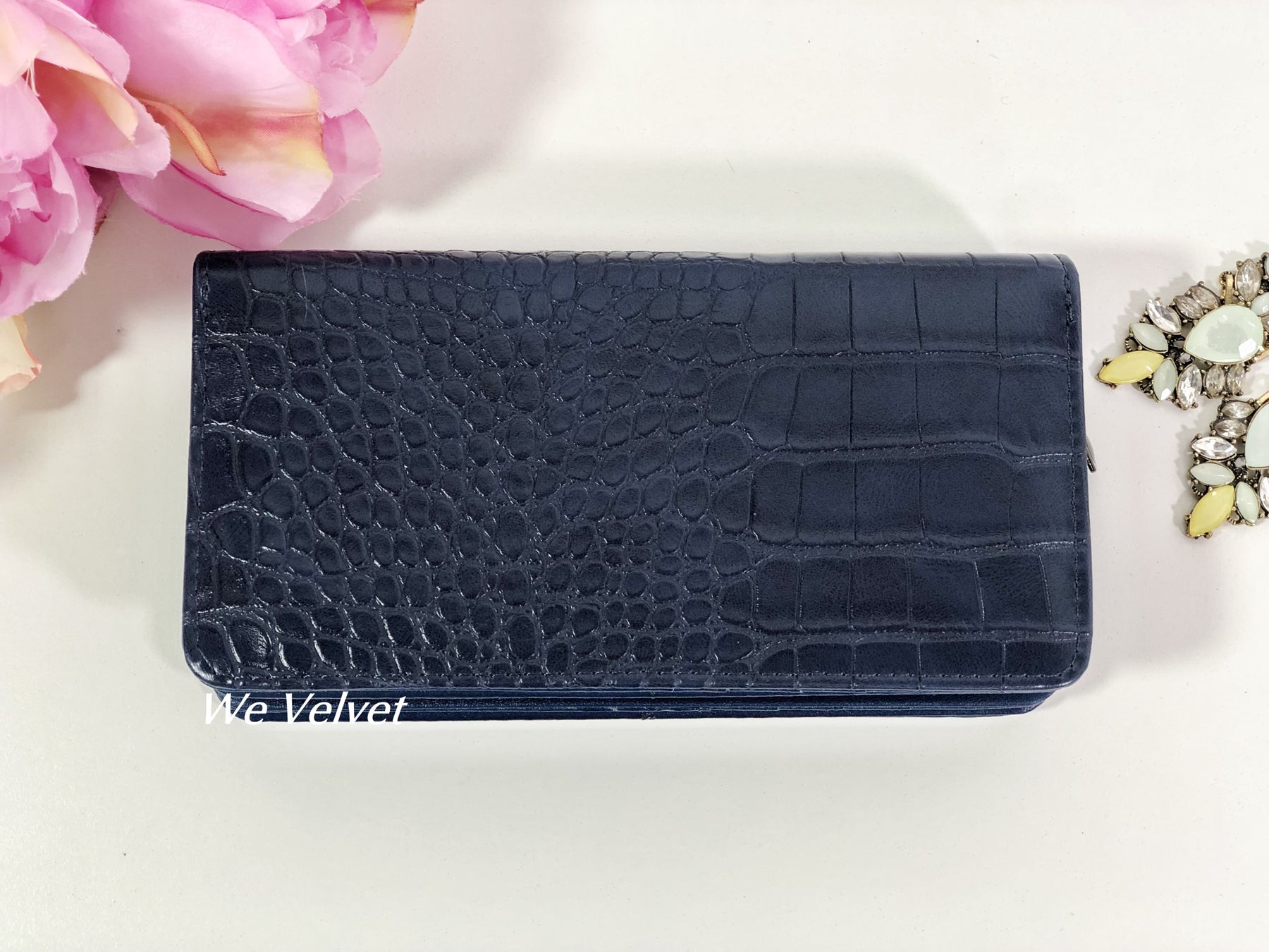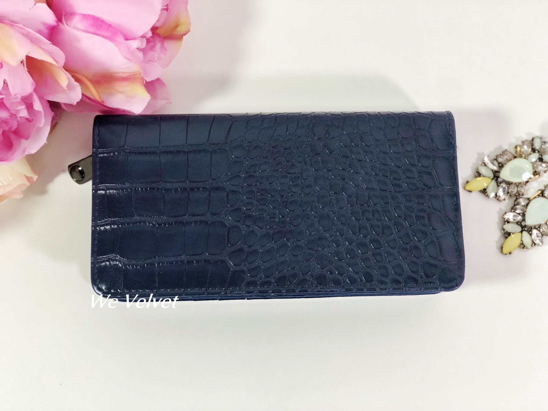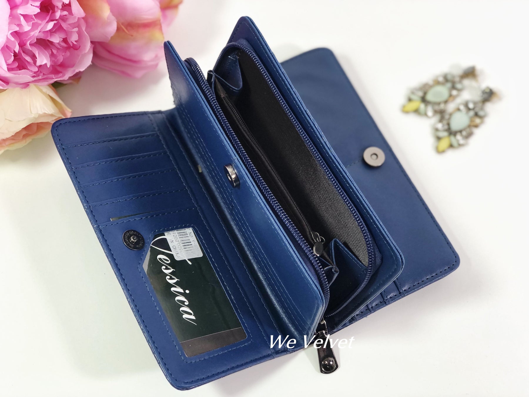 • La interior dispune de 22 de compartimente pentru carduri, 6 compartimente pentru documente, 2 compartimente pentru bancnote și un buzunar cu fermoar pentru monede