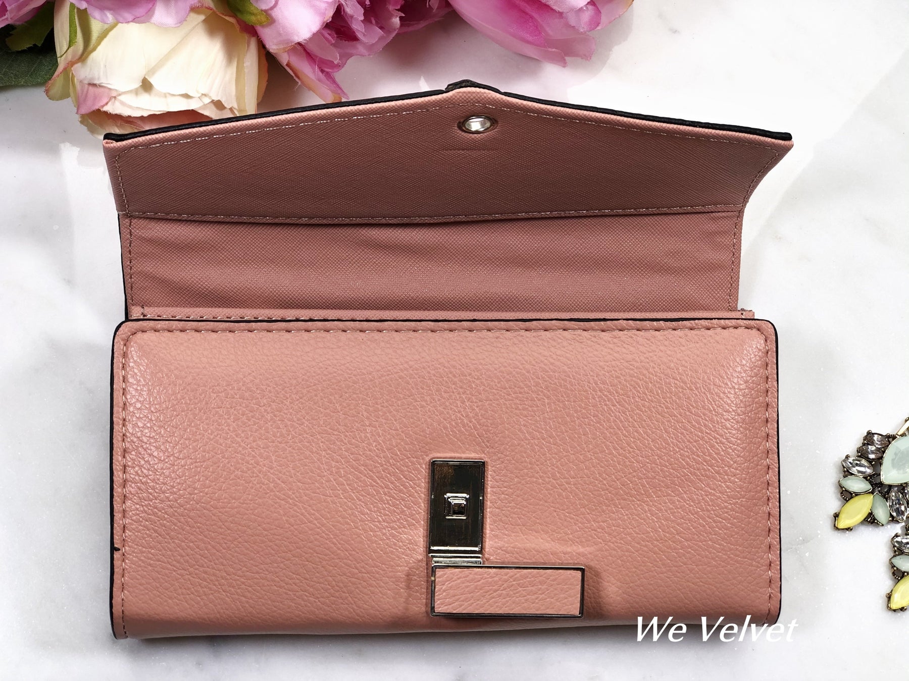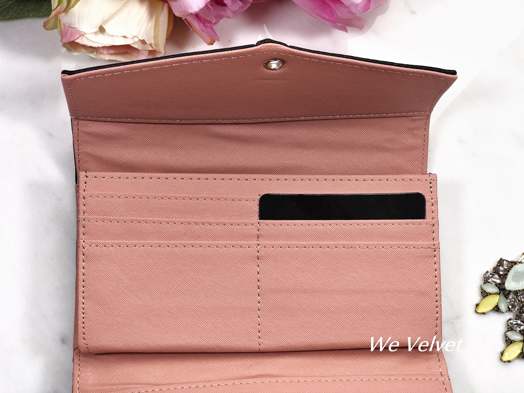 - Dispune de 10 compartimente pentru carduri, 3 compartimente pentru bancnote și documente și 1 buzunar cu fermoar pentru monede